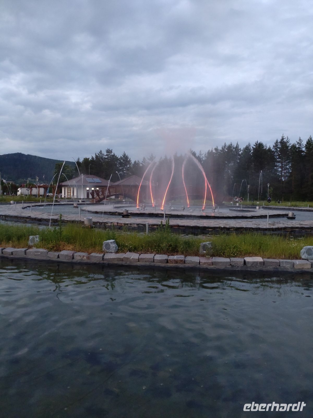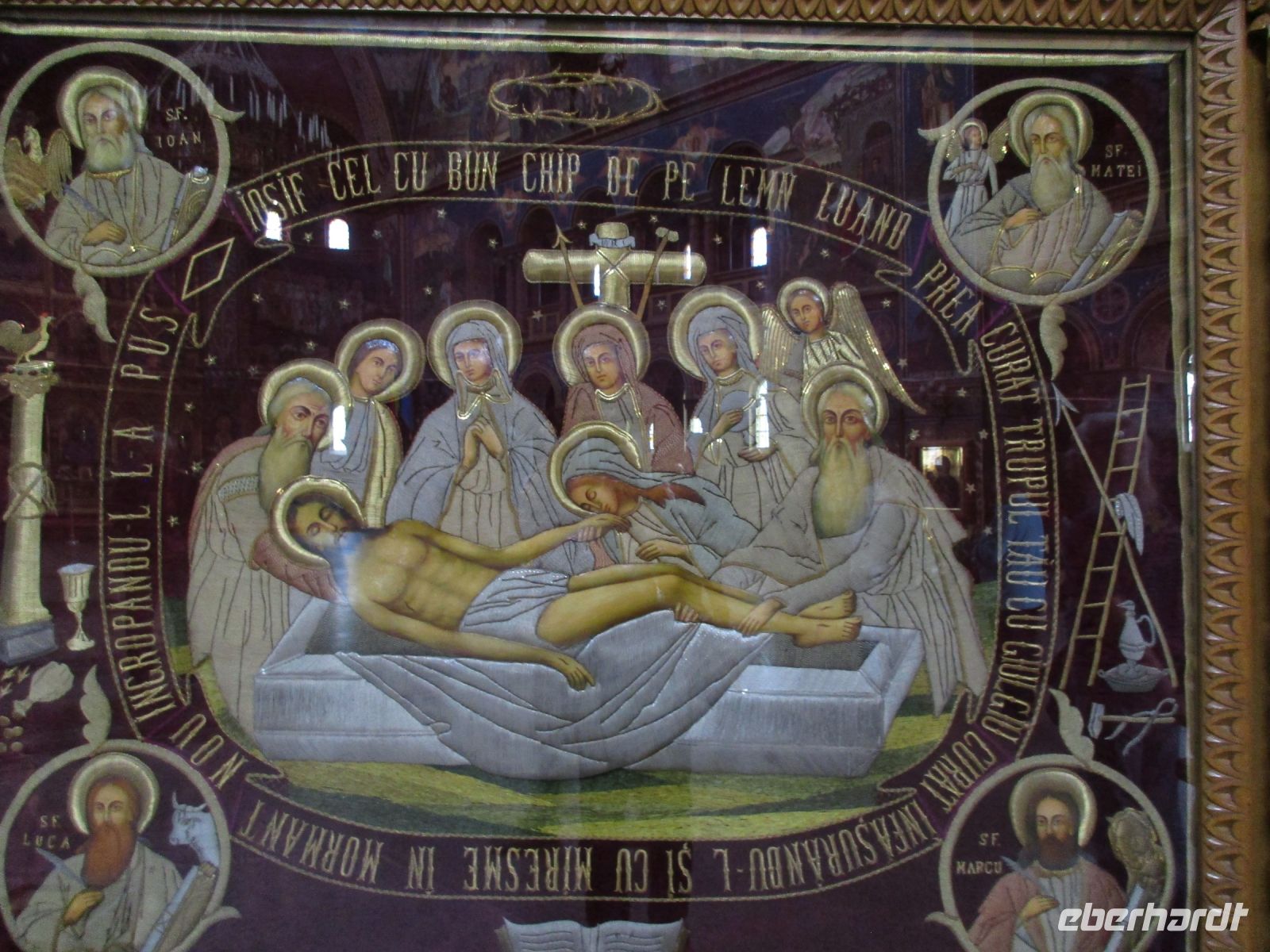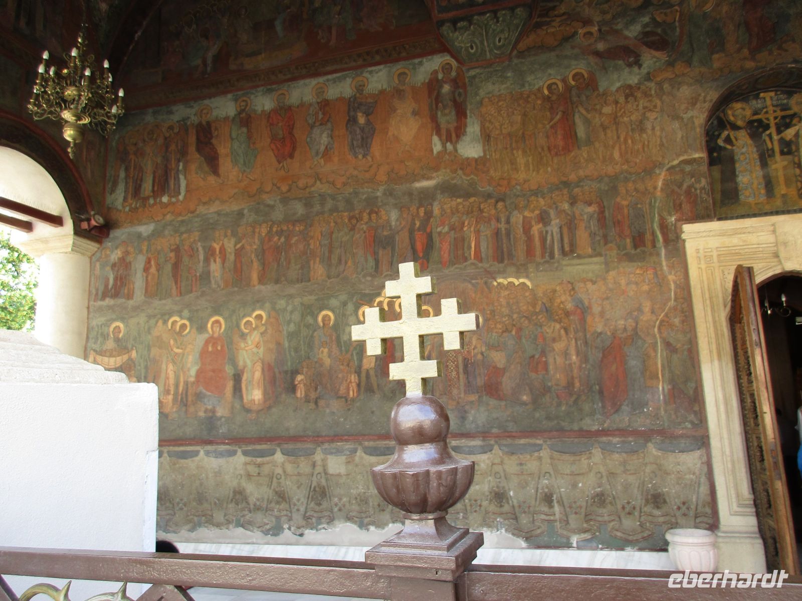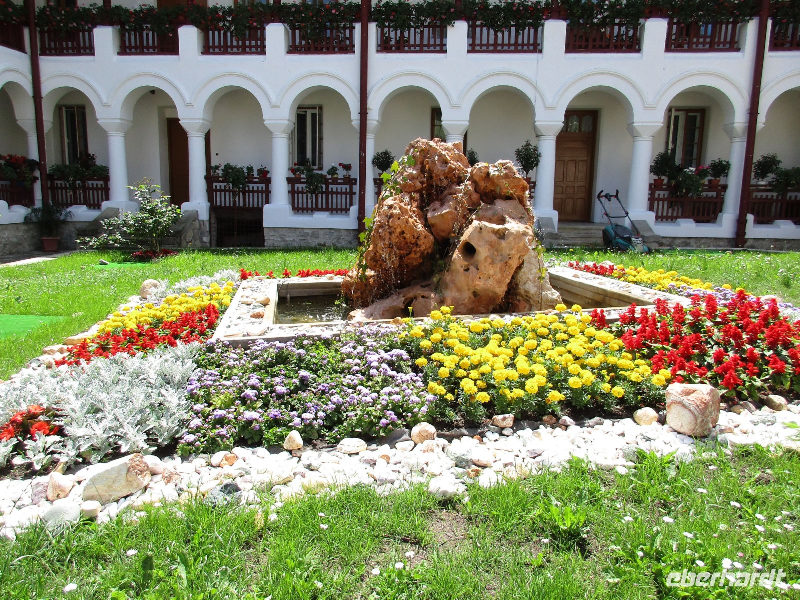 Nach dem Frühstück heißt es wieder Koffer laden, denn heute geht es weiter nach Moldawien. Wir besuchen das rumänisch-orthodoxe Kloster Moldovita im Kreis Suceava, das von dem unehelichen Sohn des Herrschers Stefan der Große, Petru Raresch, 1532 gestiftet wurde. Fünf Jahre später wurde es mit prächtigen Wandmalereien „Mariä Verkündigung“, dem Jüngsten Gericht und der Belagerung von Konstantinopel versehen. Das Kloster im byzantinischen und gotischen Stil ist ebenfalls mit einer Mauer und Wehrtürmen umgeben. Seit 1993 gehört es zu Recht mit 6 anderen Klöstern zum UNESCU-Weltkulturerbe. Wir bewundern die Kunstfertigkeit der Baumeister und Künstler, die hier gewirkt haben. Zu unserer großen Freude hat Maica Tatiana einen Augenblick Zeit für uns, denn wir möchten ihr Grüße aus Deutschland ausrichten, über die sie sich sehr freut! Wir schwatzen ein wenig und zum Abschied gibt es sogar noch eine herzliche Umarmung mit viel Energie von dieser bemerkenswerten Frau. Ich werde mich heute nicht waschen. Zoltan hat wieder zwischendurch eine warme Mahlzeit für uns organisiert, bevor es weiter zum Ei-Museum nach Vama geht. Hier erwartet uns das größte Museum Europas mit bemalten und künstlerisch bearbeiteten Eiern. Die Sammlung wird ständig erweitert. Frau Orsischi hat zwischenzeitlich etwa 11.000 Eier erworben und gesammelt und ihr Museum wird immer mehr erweitert und ausgebaut. Man kommt aus dem Staunen nicht mehr heraus. Und eine hübsche Geschenkidee! Wir fahren nun weiter nach Gura Humorului, der Stadt im Süden der Bukowina, in der der Fluss Humora in die Moldau mündet. Der Ort erscheint uns etwas unscheinbar, aber unser 4-Sterne-Hotel „Best Western Bucovina“ lässt keine Wünsche offen. Nach dem Abendessen entschließt sich die Hälfte der Gruppe, einen Spaziergang zum Fontainen-Park zu unternehmen. Was für eine tolle Entscheidung. Wasserspiele mit Licht und Rockmusik, sensationell umgesetzt. Wir sind begeistert! Danach gibt es noch einen Absacker an der Bar und wir fallen hochzufrieden in unsere Betten.