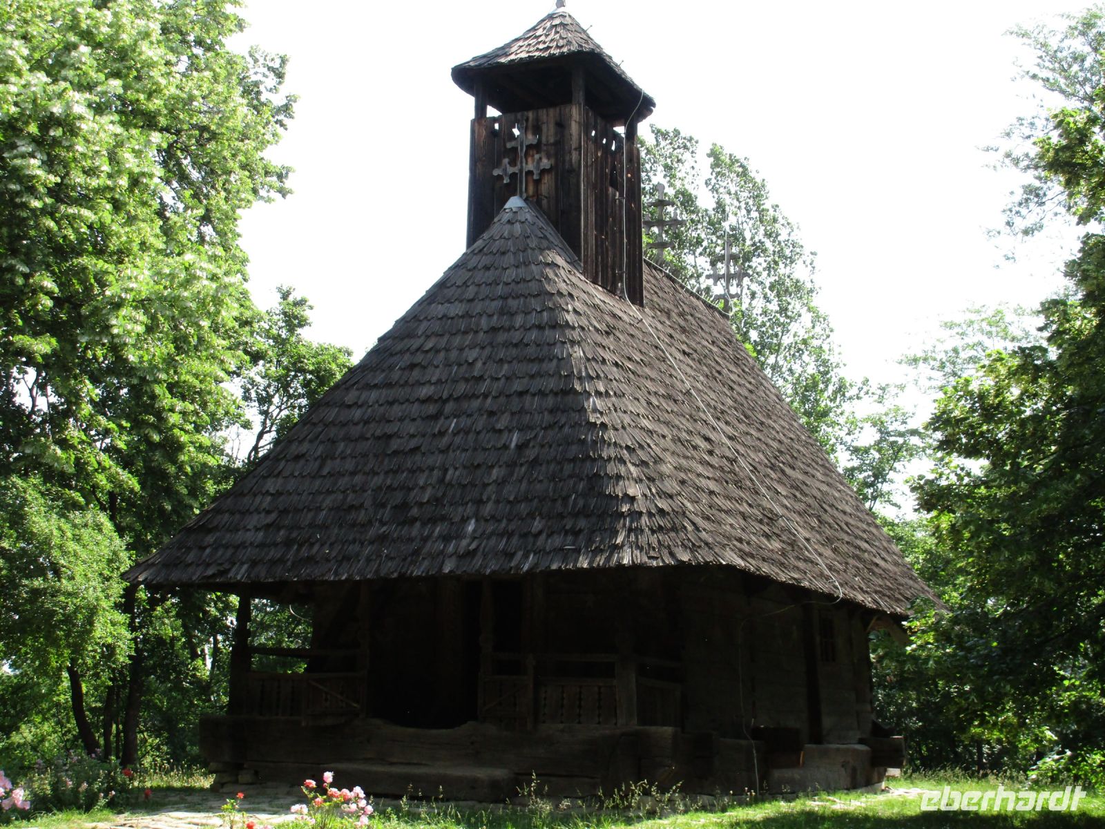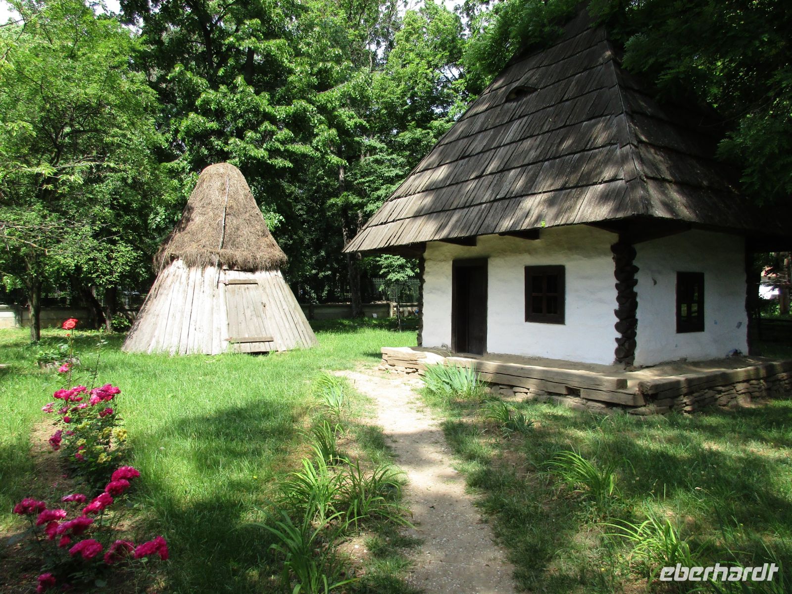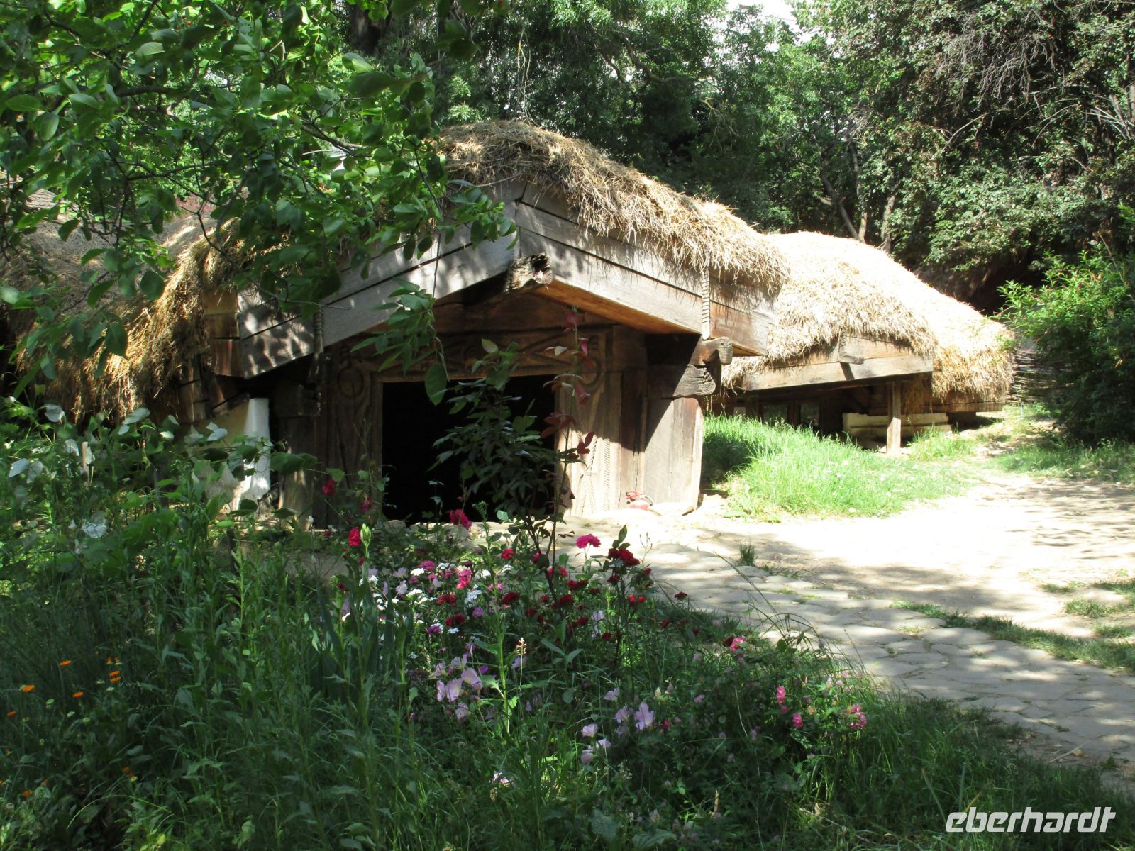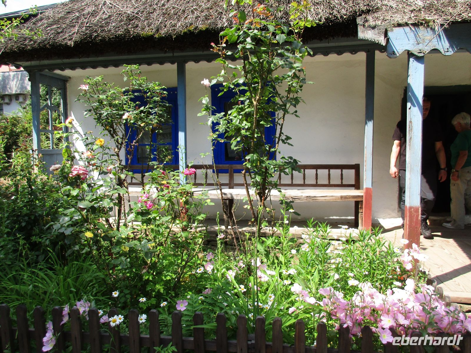 Wie erschlagen von diesen Fakten besteigen wir wieder unseren Bus und fahren weiter zur Patriarchenkirche, um uns selbst zu erlösen. Obwohl gerade Gottesdienst ist, dürfen wir die Kirche betreten und teilhaben an der tiefen Gläubigkeit. Über 86 % der Rumänen bekennen sich zum rumänisch-orthodoxen Glauben, die ungarische Bevölkerung ist katholisch oder evangelischen Glaubens nach Luther oder Calvin. Das werden wir auf unserer Reise noch erleben können. Da wir sehr gut in der Zeit liegen, wünschen wir uns noch einen Besuch des ländlichen Dorfmuseums in der Nähe des Triumphbogens, das uns tiefe Einblicke in das Alltagsleben der Menschen der verschiedenen Regionen gewährt. Cosmin hat uns sehr gut vorbereitet und die einzelnen Regionen beschrieben. Wir reden über Transsilvanien, die Walachai, Moldawien und Dobrudscha, das lange in türkischer Hand war. Transsilvanien, wozu auch oft Siebenbürgen und Maramuresch gezählt werden, wurde ab dem 13. Jhd. zum Kerngebiet der Siebenbürger Sachsen, die Privilegien vom ungarischen König Andreas II. im Goldenen Freibrief von 1224 erhielten. Der König holte auch den Deutschen Orden zu Verteidigungszwecken ins Land. Zuvor im 12. Jhd. hatte bereits der ungarische König Géza II. die Székler in den Osten Transsilvaniens gerufen. Über die Sitten und Bräuche dieser Bevölkerungsgruppen erfahren wir mehr im Dorfmuseum bei schönstem Sonnenschein.