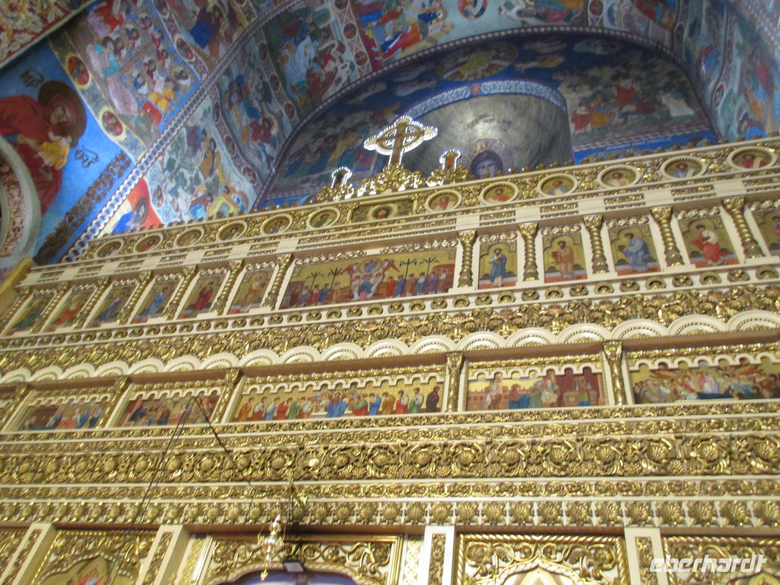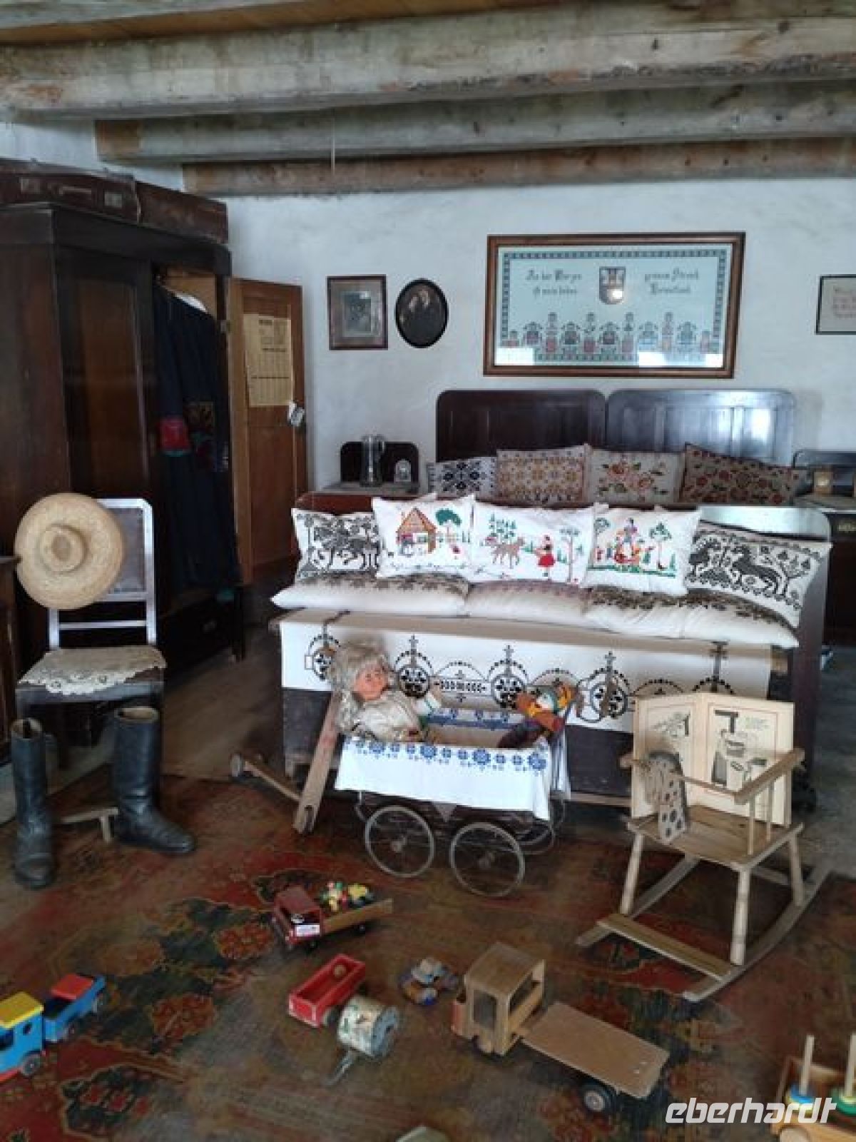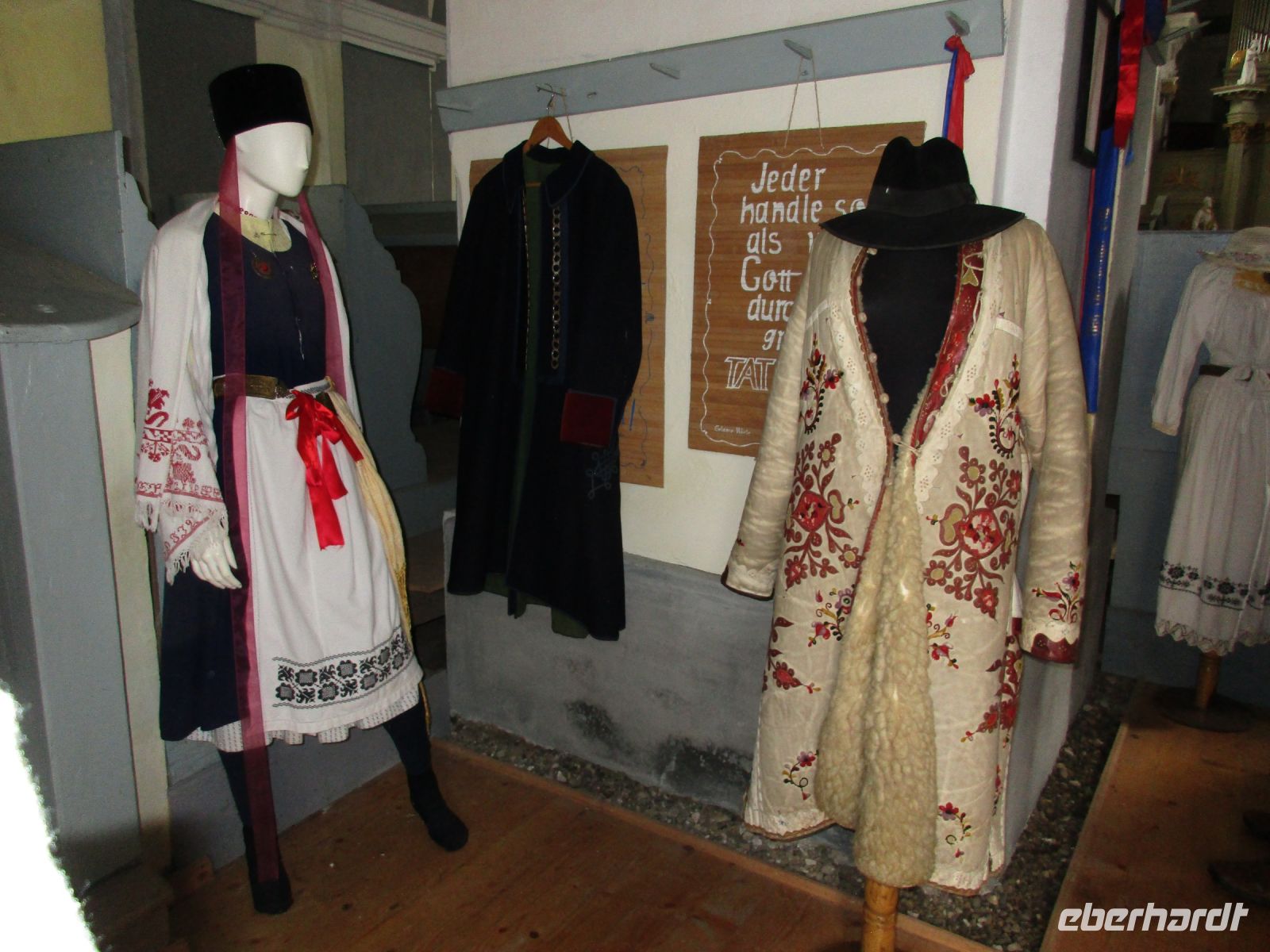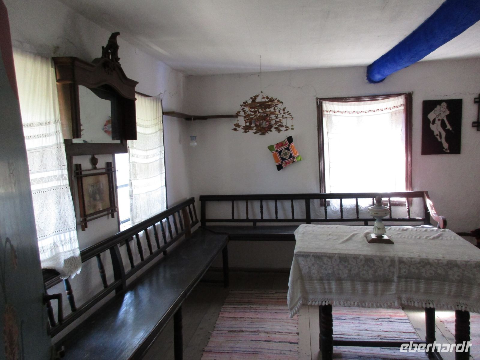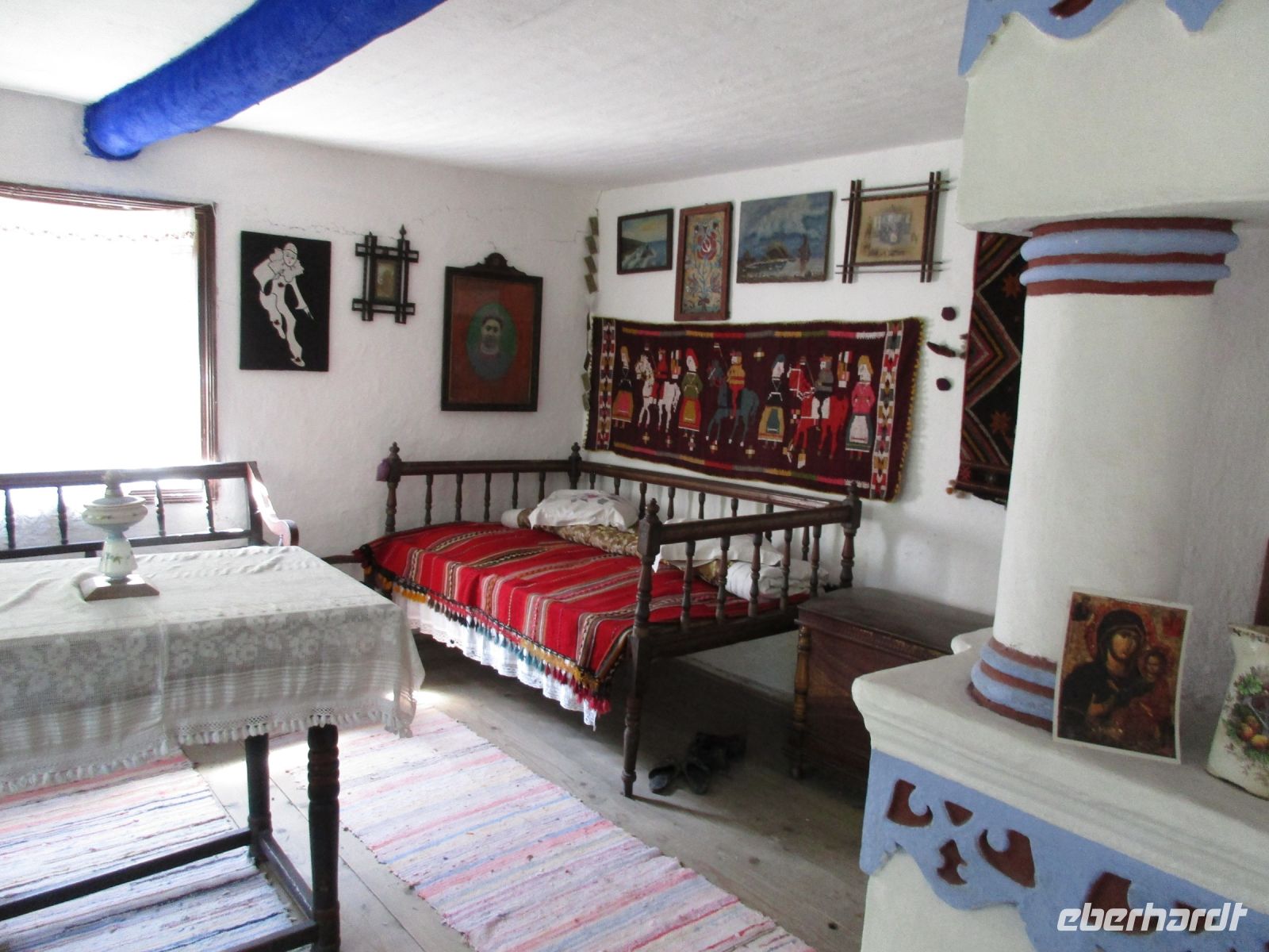 Wie erschlagen von diesen Fakten besteigen wir wieder unseren Bus und fahren weiter zur Patriarchenkirche, um uns selbst zu erlösen. Obwohl gerade Gottesdienst ist, dürfen wir die Kirche betreten und teilhaben an der tiefen Gläubigkeit. Über 86 % der Rumänen bekennen sich zum rumänisch-orthodoxen Glauben, die ungarische Bevölkerung ist katholisch oder evangelischen Glaubens nach Luther oder Calvin. Das werden wir auf unserer Reise noch erleben können. Da wir sehr gut in der Zeit liegen, wünschen wir uns noch einen Besuch des ländlichen Dorfmuseums in der Nähe des Triumphbogens, das uns tiefe Einblicke in das Alltagsleben der Menschen der verschiedenen Regionen gewährt. Cosmin hat uns sehr gut vorbereitet und die einzelnen Regionen beschrieben. Wir reden über Transsilvanien, die Walachai, Moldawien und Dobrudscha, das lange in türkischer Hand war. Transsilvanien, wozu auch oft Siebenbürgen und Maramuresch gezählt werden, wurde ab dem 13. Jhd. zum Kerngebiet der Siebenbürger Sachsen, die Privilegien vom ungarischen König Andreas II. im Goldenen Freibrief von 1224 erhielten. Der König holte auch den Deutschen Orden zu Verteidigungszwecken ins Land. Zuvor im 12. Jhd. hatte bereits der ungarische König Géza II. die Székler in den Osten Transsilvaniens gerufen. Über die Sitten und Bräuche dieser Bevölkerungsgruppen erfahren wir mehr im Dorfmuseum bei schönstem Sonnenschein.