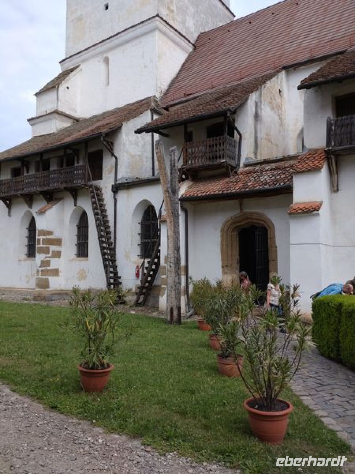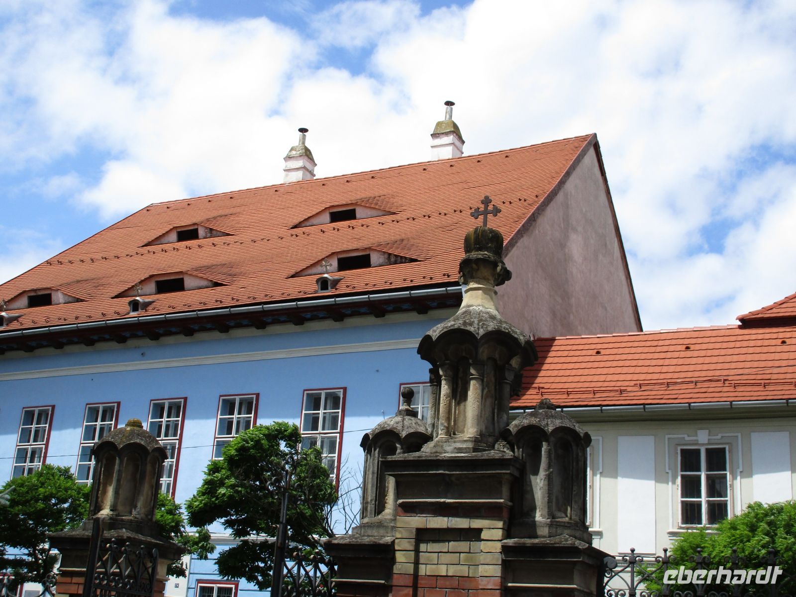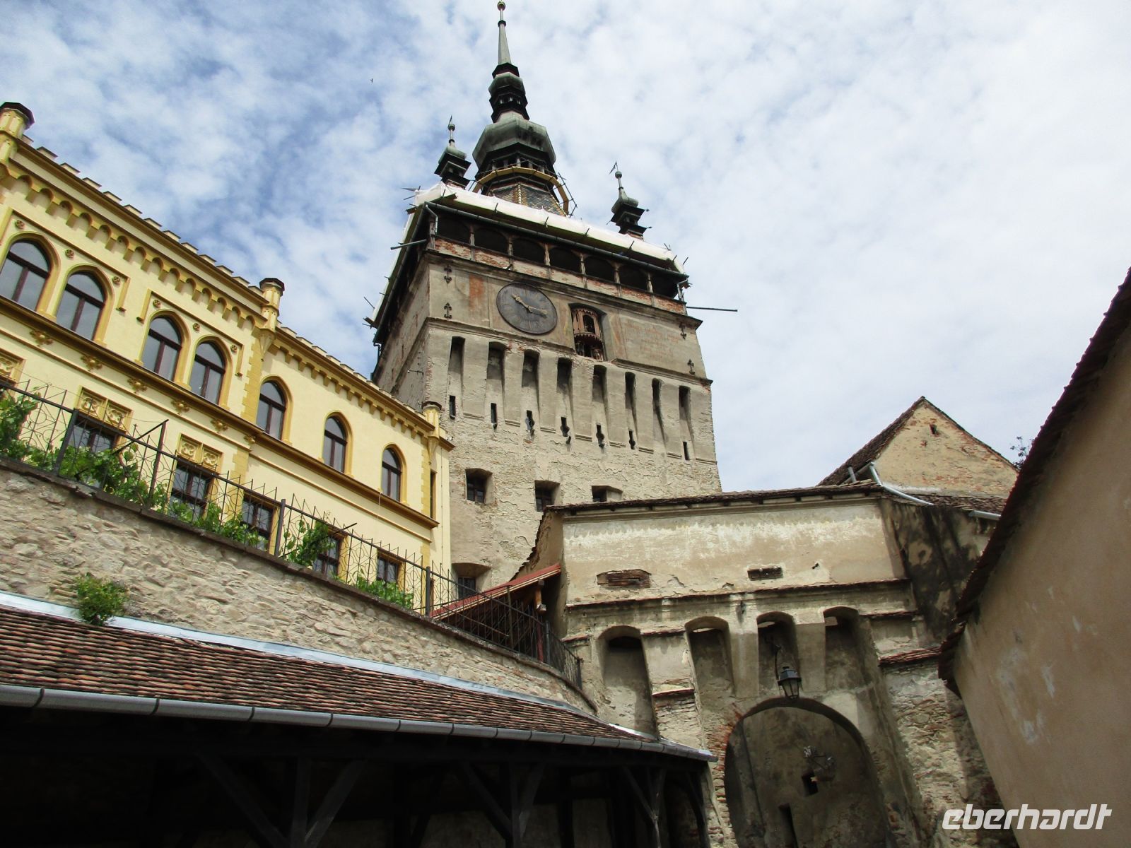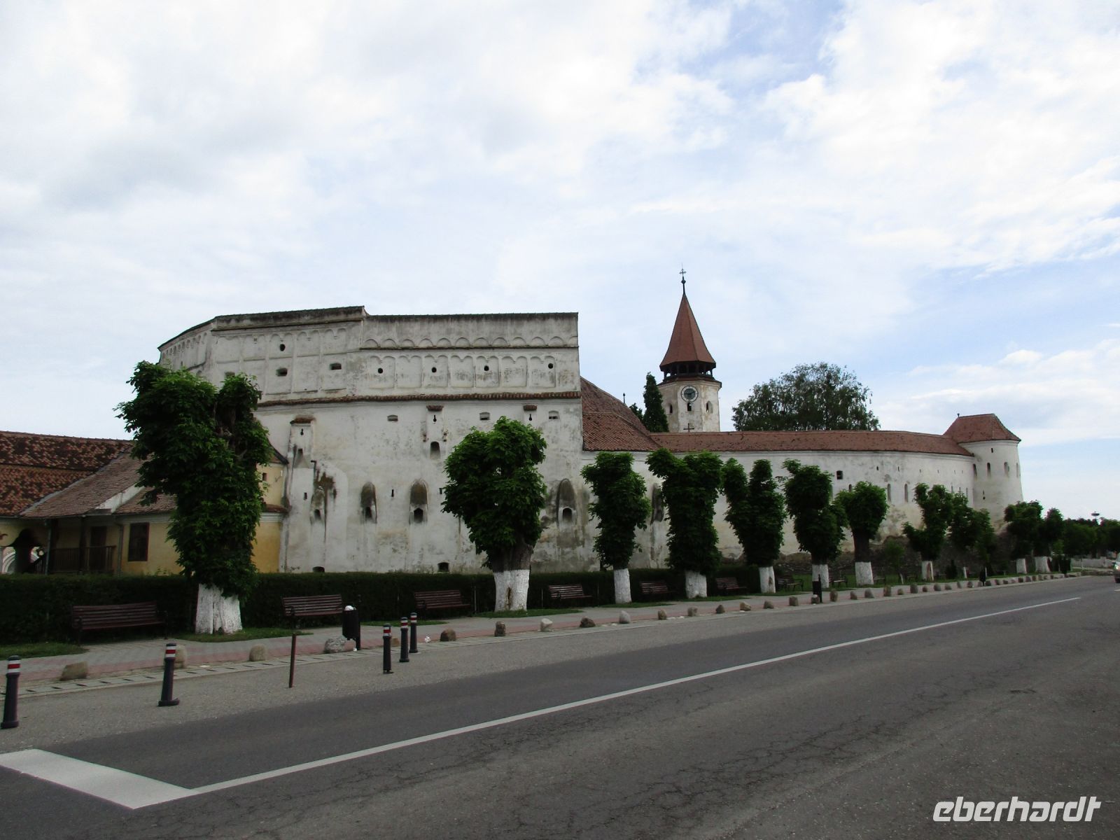 Nach einem kräftigen Frühstück geht es heute wieder mit unseren Koffern weiter Richtung Bistrita. Auf unserem Weg dorthin sehen wir nur noch Ausläufer der Karpaten, dafür wunderschöne Bergwiesen und verschlafene Dörfer wie im Märchen. In einem legen wir einen Stopp ein. Wir sind in Crit, auf Deutsch auch Deutsch-Kreuz genannt. Die Bauernhäuser liegen langgestreckt auseinander und breite Wege führen uns zur Kirche und zum Gasthaus Kraus, das auf einem Hügel mit wunderbarer Aussicht liegt. Einige Gäste versuchen sich an der Tischtennisplatte, andere fotografieren den lauschigen Ort. Auch hier gibt es natürlich eine Wehrkirche mit Ringmauern. Die Kirche ist sehr schlicht, aber liebevoll dekoriert. Eine Liste an der Wand erinnert an die Vertriebenen und Gestorbenen. Nach der Wende ist die Mehrheit der deutschsprachigen Einwohner nach Deutschland ausgewandert. Geblieben sind Roma-Familien, die hier bestgeeignete Bedingungen vorfinden. Uns gefällt der Ort mit seiner prägenden sanften Landschaft. Uns fällt auf, dass es den Störchen in dieser Gegend auch sehr gut gefällt. Jedes Dorf verfügt über mehrere Storchennester. Weiter geht es nach Sighisoara, auch Schäßburg genannt, das seit 1999 zum UNESCO-Weltkulturerbe gehört. Lateinisch hieß die Stadt um 1280 „Castrum Sex“, was auf die Einteilung in sieben Burgen hinweist. Auf der Stadtmauer der Oberstadt befanden sich einst 14 Türme. Angeblich soll jede Zunft für den Bau und den Betrieb eines Turmes verantwortlich gewesen sein. So gibt es den Zinngießerturm, den Schneiderturm, den Eisenschmiedeturm oder den Fleischerturm. Von hier aus bewachte man die Stadt und schützte sie vor den Türken. Sighisoara liegt an der Großen Kokel und besteht aus Oberstadt und Unterstadt. Sie liegt im Kreis Mures, aber immer noch in Siebenbürgen. Hier leben etwa 28 Tsd. Menschen. Der Ort wird nach dem Roman von Bram Stoker eng mit Dracula in Verbindung gebracht, der hier etwa 5 Jahre lang gelebt haben soll. Davon zeugen sein Geburtshaus :)) und eine Statue. Vlad Tepes (Vlad III. Draculea, der Pfähler) war Sohn des Vlad II. Dracul, der Drache. Gegen den Bau eines Dracula-Freizeitparkes hat sich die Bevölkerung vehement gewehrt. Wir meinen, der Dracula-Kult reicht auch so schon. Ich habe mich im Dracula-Haus, wo der Vlad im Sarg liegt und Besucher erschreckt, nett mit ihm unterhalten und zum Abschied „Ruhe sanft“ hat er mir zugewunken. Ein schönes Wahrzeichen der Stadt ist der Stundturm mit Wetterhahn, Uhr und seinem Eingangstor. Er trennt die Oberstadt von der Unterstadt und ist wegen seiner Höhe von 64 m kaum zu übersehen. Wir wollen ja hoch hinaus und erklimmen die gegen Regen und Eis überdachte Schülertreppe aus dem 17. Jhd,, die über 172 Stufen zur berühmten Bergschule, dem Josef-Haltrich-Lyzeum, führt. Die Evangelische Kirche neben der Schule ist geschlossen und so spazieren wir über den malerisch gelegenen Friedhof am Berghang wieder zurück. Nachdem wir alles Wichtige besucht haben und uns gestärkt haben, bringt uns Laurentiu Richtung Targu Mures. Hier leben ungefähr 116 Tsd. Einwohner. Wir erreichen Neumarkt am Mieresch, die Heimatstadt von Zoltan, bei strahlendem Sonnenschein und blauem Himmel, was die schönen Blumenanlagen noch eindrucksvoller präsentiert. Vorbei am Rathaus im Brancoveanu-Stil und der katholischen Kirche gelangen wir zum Kulturpalast. Durch unscheinbare Baugerüste erreichen wir den Kulturpalast der Stadt, der zu Beginn des 20. Jhd. im ungarischen Jugendstil erbaut wurde. Prachtvolle Fenster, viele Mosaike und farbenprächtige Wandgestaltungen im Inneren lassen uns den Atem stocken. Es ist einfach nur schön. Der Kulturpalst beherbergt die Bibliothek und das Museum des Kreises Mures sowie die Staatsphilharmonie. Gerade gibt es eine temporäre Ausstellung privater Gemälde, die wir uns ansehen. Danach spazieren wir zur imposanten orthodoxen Kirche, die zwischen 1925 und 1934 erbaut wurde, und Zoltan führt uns bei der Innenbesichtigung. Der Baustil ist etwas eigen, was auch daran liegt, dass sie erst nach dem Anschluss an Rumänien gebaut wurde und nur über eine kurze eigene Geschichte verfügt. Dennoch ist sie unbedingt sehenswert. Nun verlassen wir die hübsche Stadt und fahren nach Bistrita, wo wir am frühen Abend ankommen. Unser 4-Sterne-Hotel liegt in der Nähe eines Gewerbegebietes, was gar nicht so ungelegen ist für kleine Einkäufe. Nach dem Abendessen erholen wir uns gut und genießen eine gute Nacht.