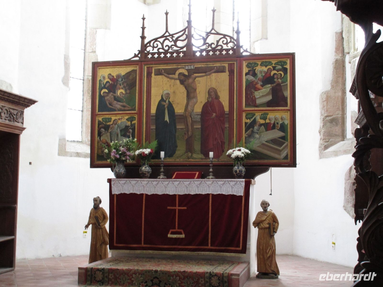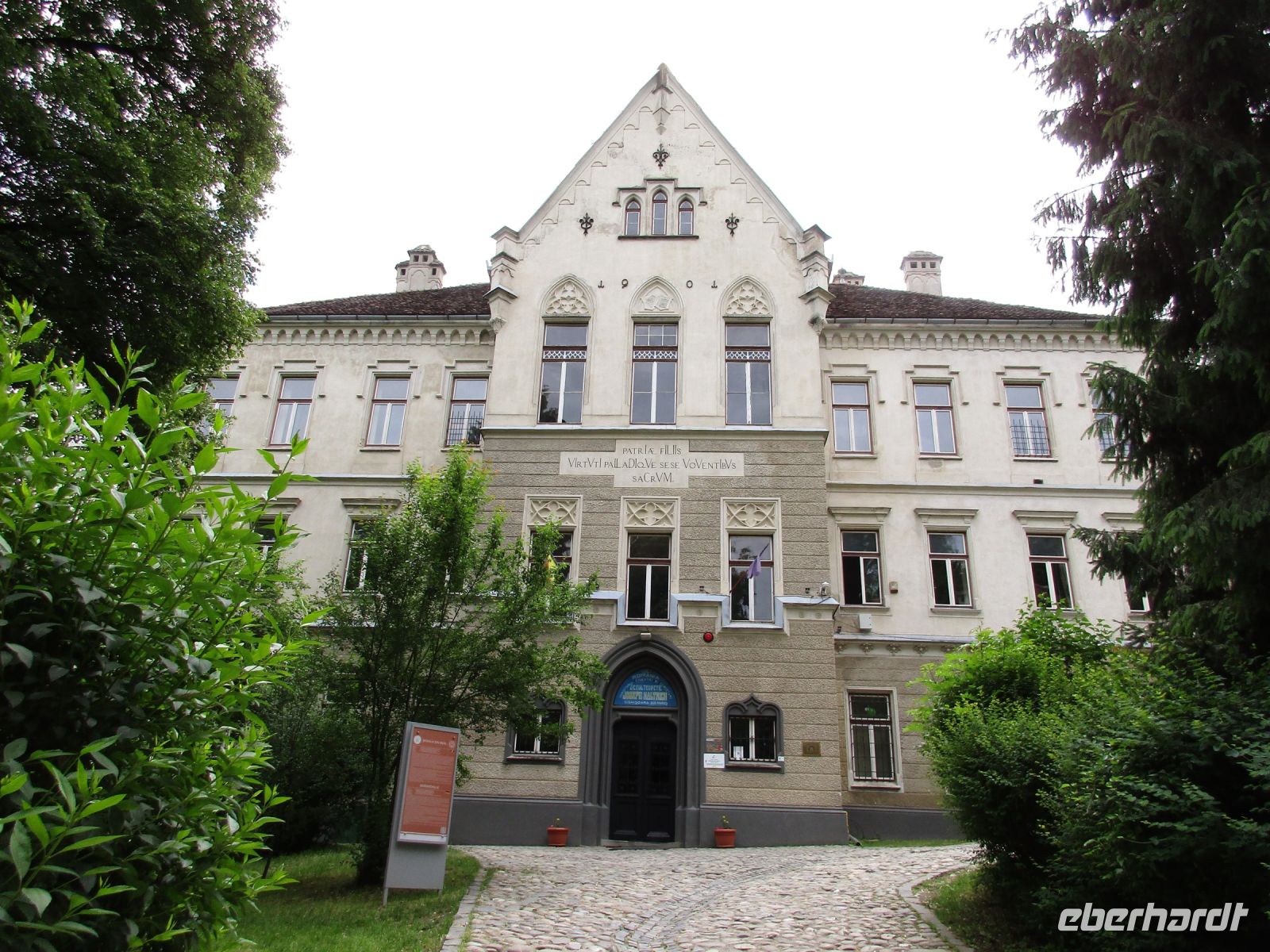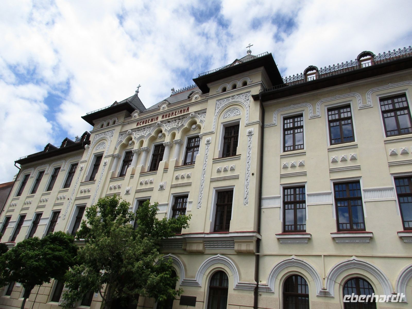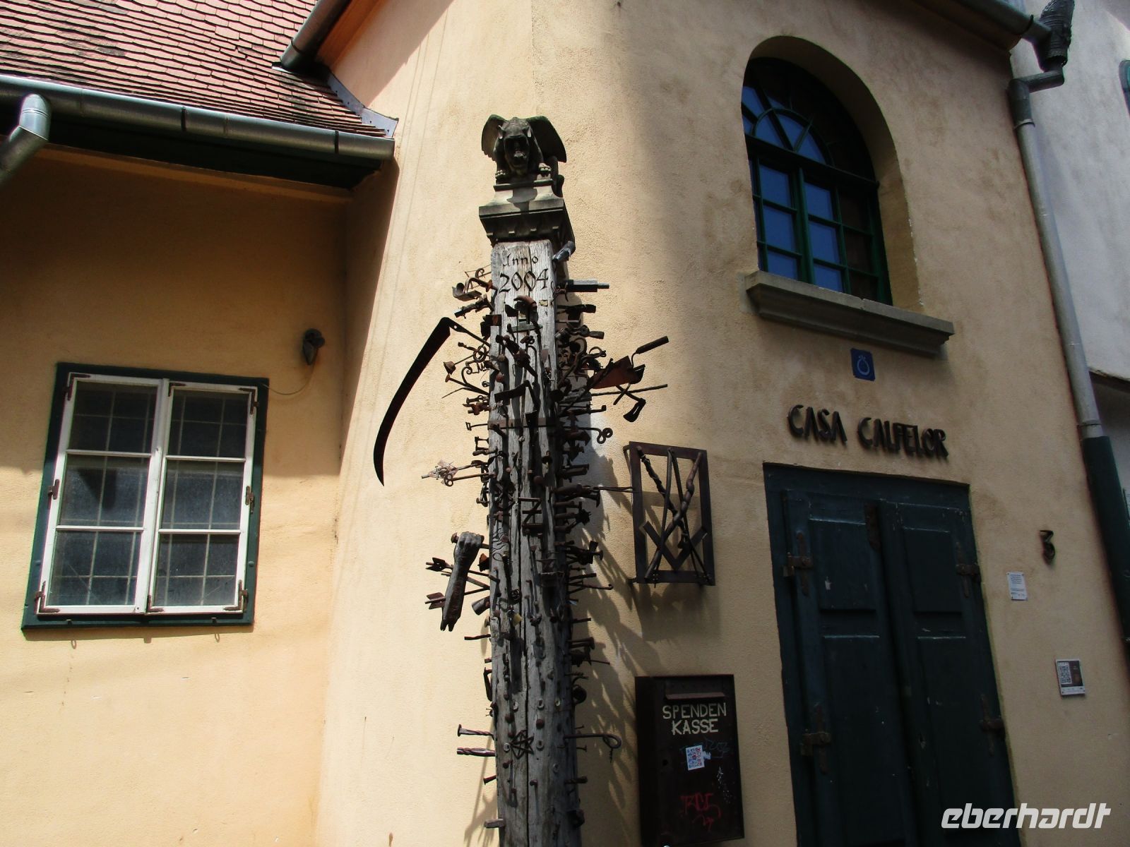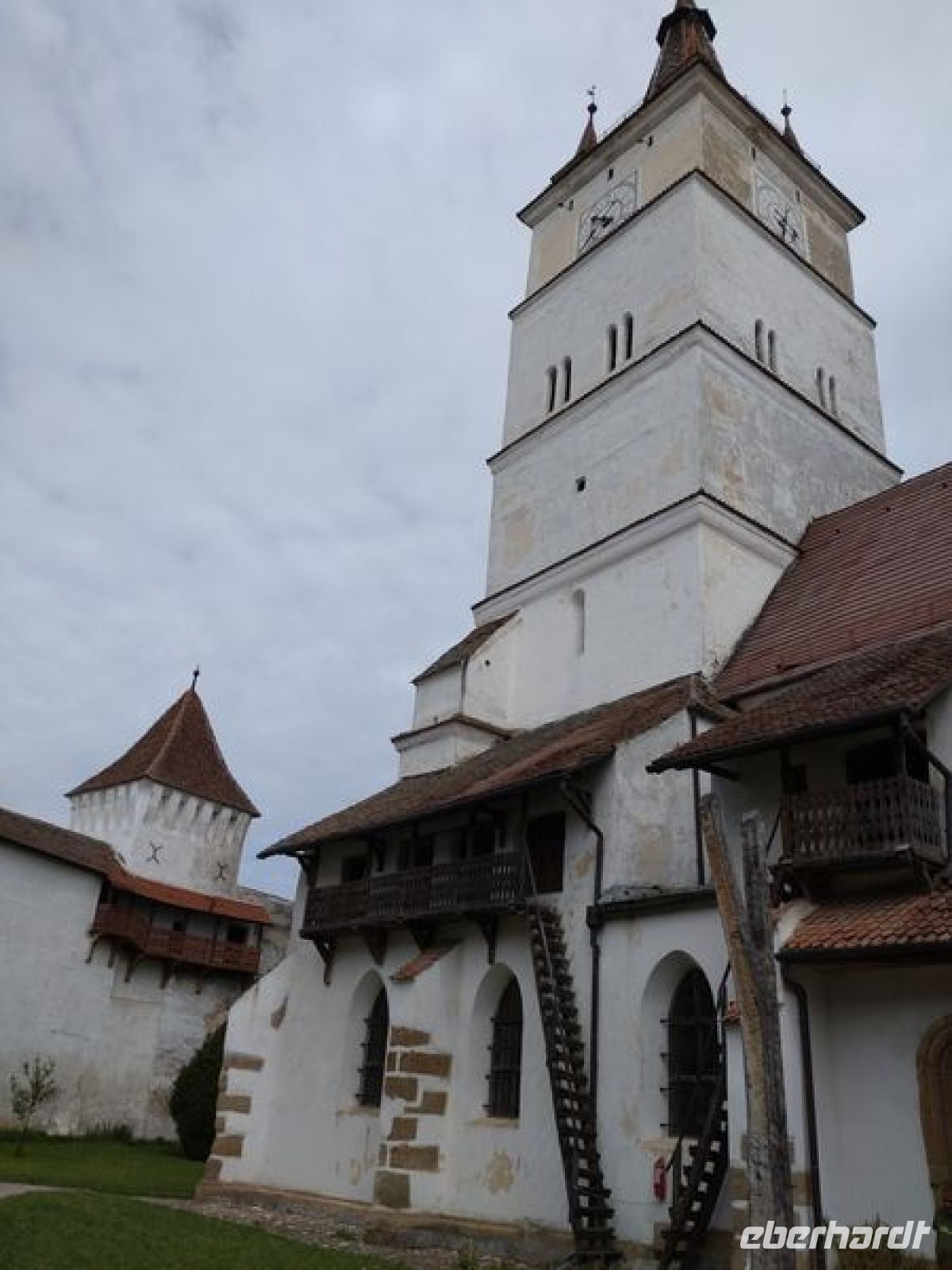 Nach einem kräftigen Frühstück geht es heute wieder mit unseren Koffern weiter Richtung Bistrita. Auf unserem Weg dorthin sehen wir nur noch Ausläufer der Karpaten, dafür wunderschöne Bergwiesen und verschlafene Dörfer wie im Märchen. In einem legen wir einen Stopp ein. Wir sind in Crit, auf Deutsch auch Deutsch-Kreuz genannt. Die Bauernhäuser liegen langgestreckt auseinander und breite Wege führen uns zur Kirche und zum Gasthaus Kraus, das auf einem Hügel mit wunderbarer Aussicht liegt. Einige Gäste versuchen sich an der Tischtennisplatte, andere fotografieren den lauschigen Ort. Auch hier gibt es natürlich eine Wehrkirche mit Ringmauern. Die Kirche ist sehr schlicht, aber liebevoll dekoriert. Eine Liste an der Wand erinnert an die Vertriebenen und Gestorbenen. Nach der Wende ist die Mehrheit der deutschsprachigen Einwohner nach Deutschland ausgewandert. Geblieben sind Roma-Familien, die hier bestgeeignete Bedingungen vorfinden. Uns gefällt der Ort mit seiner prägenden sanften Landschaft. Uns fällt auf, dass es den Störchen in dieser Gegend auch sehr gut gefällt. Jedes Dorf verfügt über mehrere Storchennester. Weiter geht es nach Sighisoara, auch Schäßburg genannt, das seit 1999 zum UNESCO-Weltkulturerbe gehört. Lateinisch hieß die Stadt um 1280 „Castrum Sex“, was auf die Einteilung in sieben Burgen hinweist. Auf der Stadtmauer der Oberstadt befanden sich einst 14 Türme. Angeblich soll jede Zunft für den Bau und den Betrieb eines Turmes verantwortlich gewesen sein. So gibt es den Zinngießerturm, den Schneiderturm, den Eisenschmiedeturm oder den Fleischerturm. Von hier aus bewachte man die Stadt und schützte sie vor den Türken. Sighisoara liegt an der Großen Kokel und besteht aus Oberstadt und Unterstadt. Sie liegt im Kreis Mures, aber immer noch in Siebenbürgen. Hier leben etwa 28 Tsd. Menschen. Der Ort wird nach dem Roman von Bram Stoker eng mit Dracula in Verbindung gebracht, der hier etwa 5 Jahre lang gelebt haben soll. Davon zeugen sein Geburtshaus :)) und eine Statue. Vlad Tepes (Vlad III. Draculea, der Pfähler) war Sohn des Vlad II. Dracul, der Drache. Gegen den Bau eines Dracula-Freizeitparkes hat sich die Bevölkerung vehement gewehrt. Wir meinen, der Dracula-Kult reicht auch so schon. Ich habe mich im Dracula-Haus, wo der Vlad im Sarg liegt und Besucher erschreckt, nett mit ihm unterhalten und zum Abschied „Ruhe sanft“ hat er mir zugewunken. Ein schönes Wahrzeichen der Stadt ist der Stundturm mit Wetterhahn, Uhr und seinem Eingangstor. Er trennt die Oberstadt von der Unterstadt und ist wegen seiner Höhe von 64 m kaum zu übersehen. Wir wollen ja hoch hinaus und erklimmen die gegen Regen und Eis überdachte Schülertreppe aus dem 17. Jhd,, die über 172 Stufen zur berühmten Bergschule, dem Josef-Haltrich-Lyzeum, führt. Die Evangelische Kirche neben der Schule ist geschlossen und so spazieren wir über den malerisch gelegenen Friedhof am Berghang wieder zurück. Nachdem wir alles Wichtige besucht haben und uns gestärkt haben, bringt uns Laurentiu Richtung Targu Mures. Hier leben ungefähr 116 Tsd. Einwohner. Wir erreichen Neumarkt am Mieresch, die Heimatstadt von Zoltan, bei strahlendem Sonnenschein und blauem Himmel, was die schönen Blumenanlagen noch eindrucksvoller präsentiert. Vorbei am Rathaus im Brancoveanu-Stil und der katholischen Kirche gelangen wir zum Kulturpalast. Durch unscheinbare Baugerüste erreichen wir den Kulturpalast der Stadt, der zu Beginn des 20. Jhd. im ungarischen Jugendstil erbaut wurde. Prachtvolle Fenster, viele Mosaike und farbenprächtige Wandgestaltungen im Inneren lassen uns den Atem stocken. Es ist einfach nur schön. Der Kulturpalst beherbergt die Bibliothek und das Museum des Kreises Mures sowie die Staatsphilharmonie. Gerade gibt es eine temporäre Ausstellung privater Gemälde, die wir uns ansehen. Danach spazieren wir zur imposanten orthodoxen Kirche, die zwischen 1925 und 1934 erbaut wurde, und Zoltan führt uns bei der Innenbesichtigung. Der Baustil ist etwas eigen, was auch daran liegt, dass sie erst nach dem Anschluss an Rumänien gebaut wurde und nur über eine kurze eigene Geschichte verfügt. Dennoch ist sie unbedingt sehenswert. Nun verlassen wir die hübsche Stadt und fahren nach Bistrita, wo wir am frühen Abend ankommen. Unser 4-Sterne-Hotel liegt in der Nähe eines Gewerbegebietes, was gar nicht so ungelegen ist für kleine Einkäufe. Nach dem Abendessen erholen wir uns gut und genießen eine gute Nacht.