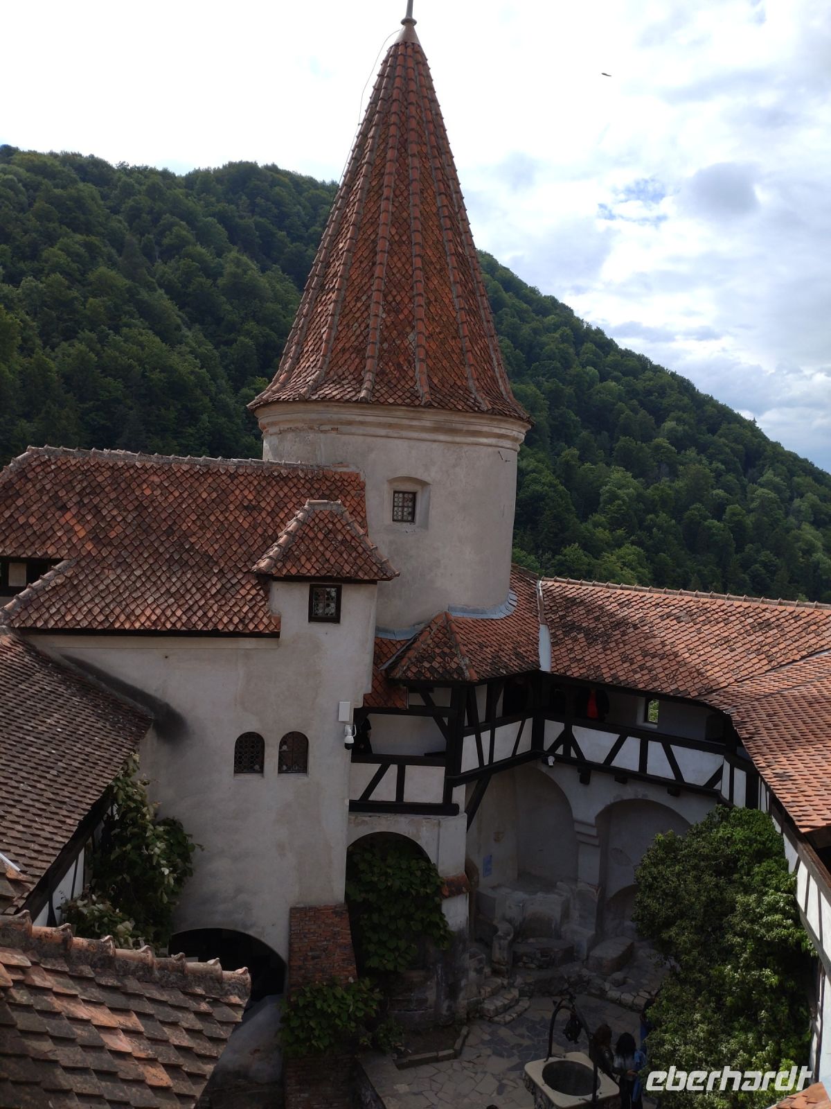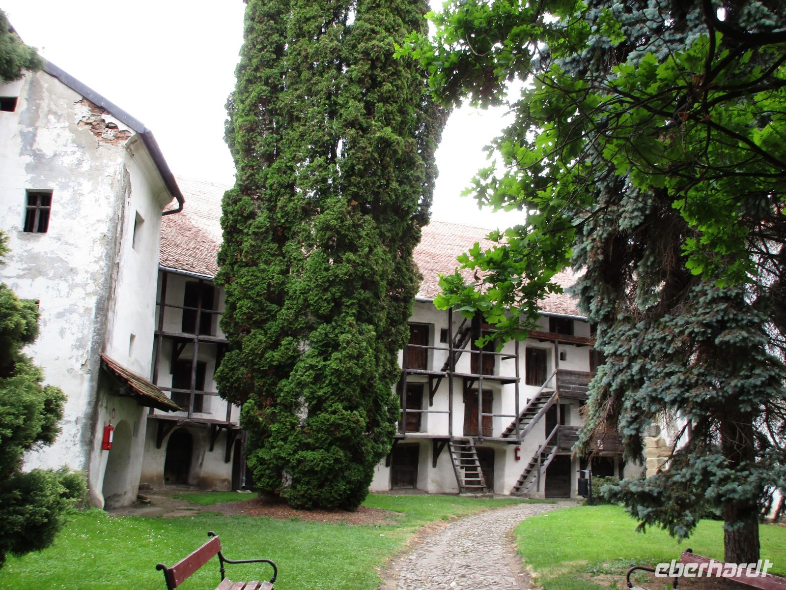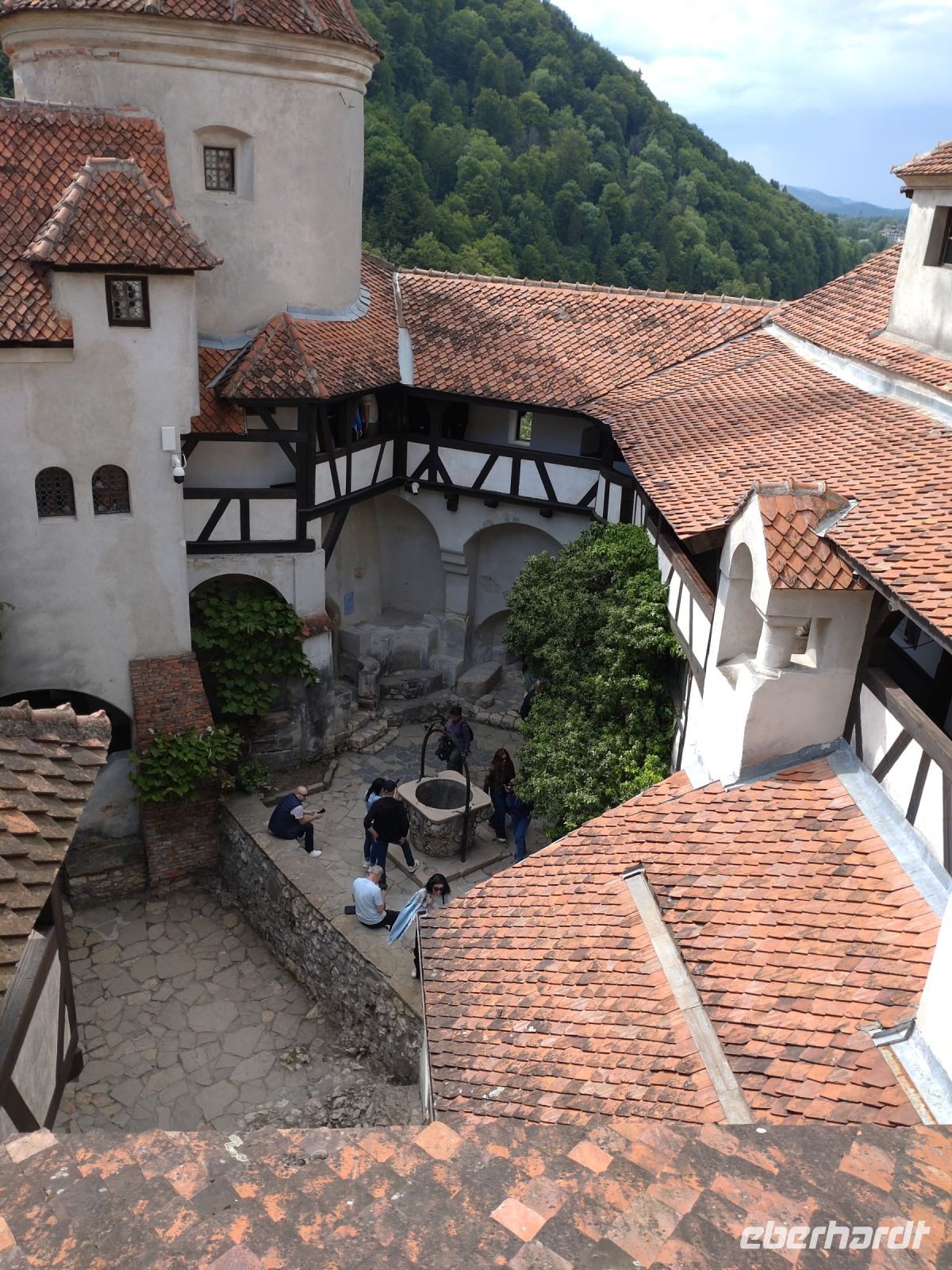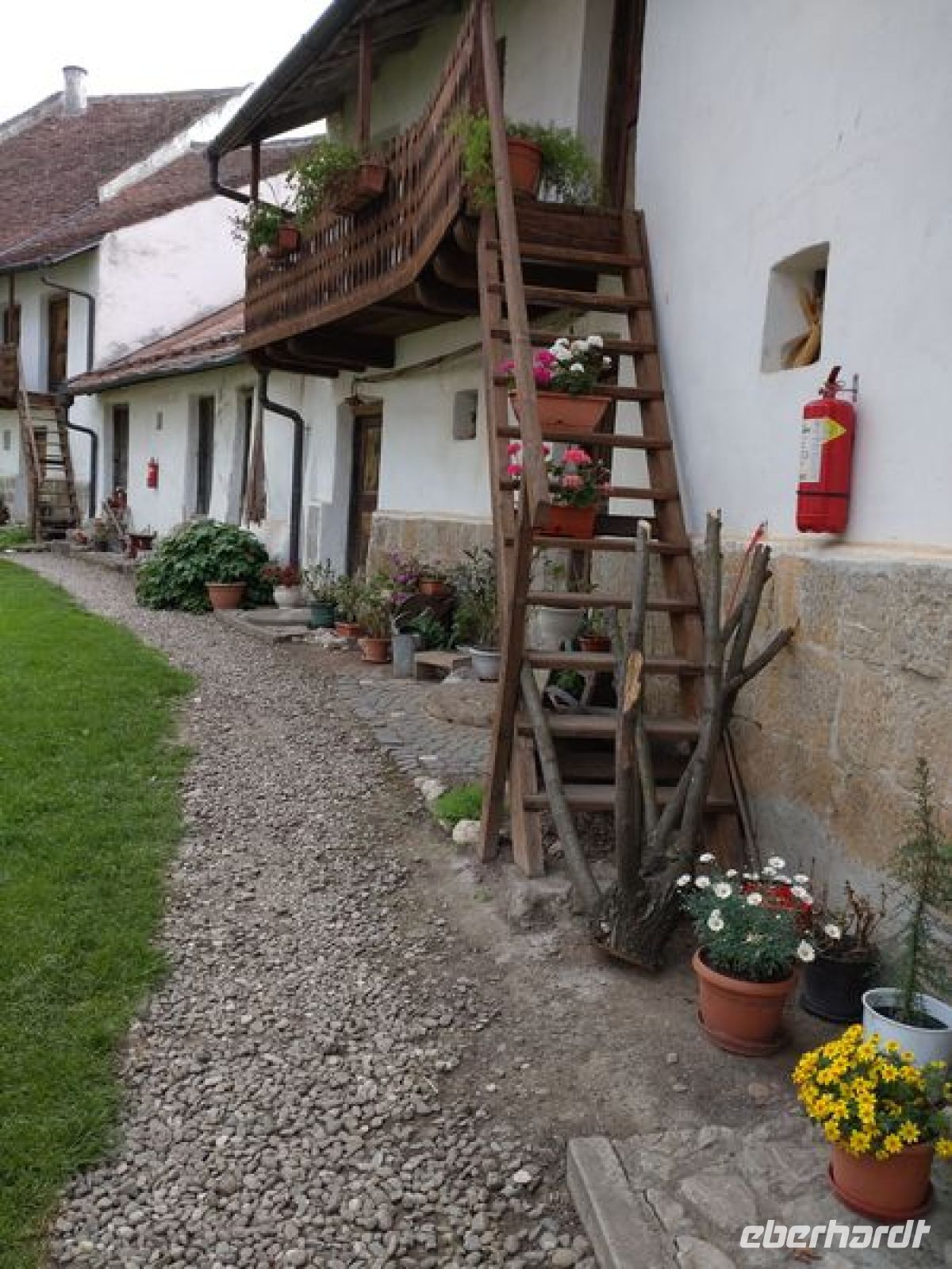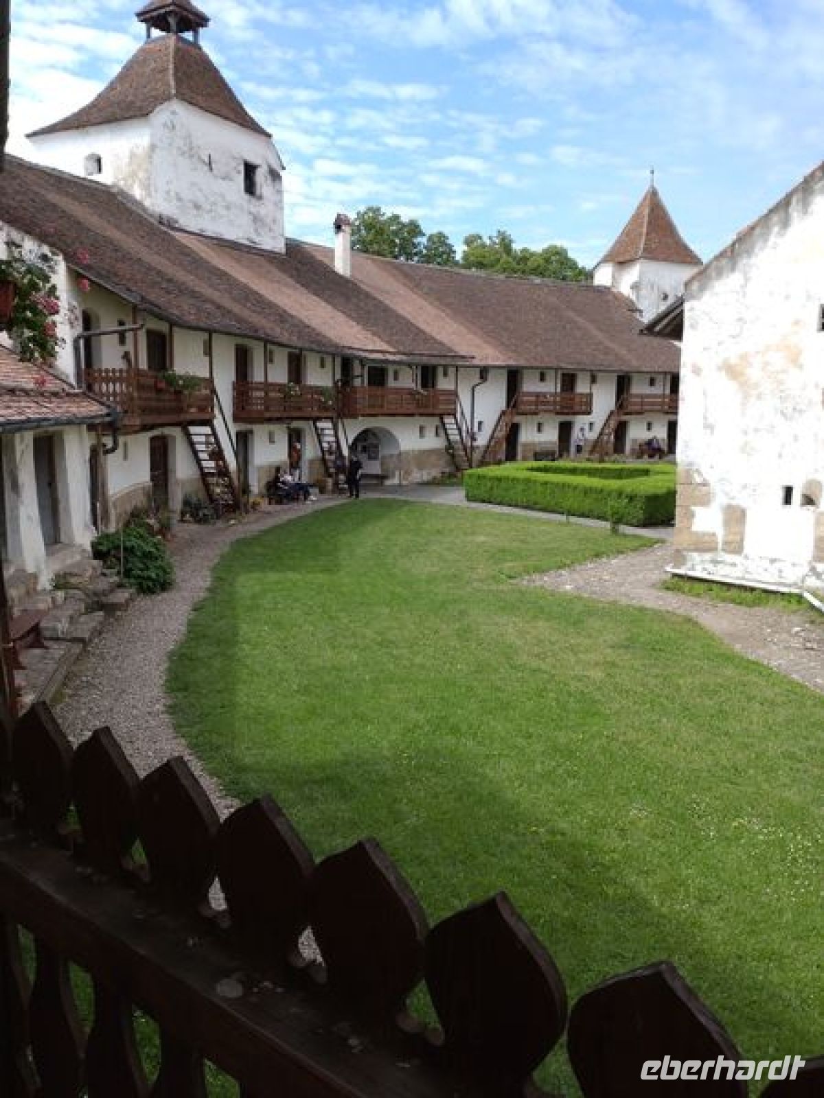 Heute haben wir wieder eine gewaltige Tour in die Geschichte Transsilvaniens vor, deshalb stärken wir uns erst einmal am Frühstücksbüffet. Das Wetter ist wieder so einladend, dass wir die Landschaft der Karpaten und die sanfteren Hügel des Burzenlandes genießen können. Auf unserem Weg im Südosten Siebenbürgens liegt die größte der sieben Kirchenburgen Prejmer, auch Tartlau genannt. Sie ist seit 1999 Weltkulturerbe, weil sie nicht nur sehr gut erhalten, sondern auch sehr gepflegt ist. Ein Kleinod mittelalterlicher Baukunst, voll und ganz auf Verteidigung und Gegenwehr ausgerichtet. Wegen der wichtigen strategischen Lage begann der Deutsche Orden den Kirchenbau im 13. Jhd. Nach seiner Ausweisung durch den König bauten Zisterziensermönche weiter. Die fleißigen Siedler, Bauern und Handwerker waren stets in Gefahr und schützten sich mit klugen Maßnahmen gegen Überfälle und Angreifer. 12-14 m hohe Ringmauern, 4,5 m dick und ein 10 m hoher Wehrgang mit Satteldach und Fallgatter am Tor. Hier gibt es Schießscharten, Pechnasen und die so genannte „Todesorgel“, die man gleichzeitig abfeuern und nachladen konnte. Alle Bewohner hatten an der inneren Ringmauer, die 3-4 Ebenen hatte, eine Kammer mit ihrer Hausnummer, die Tiere wurden zwischen zwei Mauern geschützt untergebracht und versorgt. Getreide und Nahrungsmittel wie Wurst und Schinken wurden ebenfalls in Kammern aufbewahrt. Eine Schule und Handwerksräume dienten der sinnvollen Beschäftigung. Über Holztreppen im Innenhof gelangte man auf die höheren Ebenen und zum Wehrgang. Im Hof wurden kleine Kräuter- und Blumengärten angelegt. Diese Kirchenburg war die stärkste und die weiteren sind nach ähnlichem Konzept angelegt. Wir fahren weiter nach Honigberg, auch Harman genannt. Auch hier baute der Deutsche Ritterorden Anfang des 13. Jhd. eine Kirchenburg, bis er 1225 vom König ausgewiesen wurde. Die Zisterzienser werden mit dem Weiterbau beauftragt. Die Ringmauer hat sieben 4-geschössige Türme. 1290 erhielt die Westseite der dreischiffigen romanischen Basilika einen 52 m hohen Glockenturm. Die Kirche bekam später immer mehr gotische Elemente. Nach diesen äußerst interessanten Informationen freuen wir uns auf die Kreisstadt Brasov, auch als Kronstadt oder Corona bekannt, die wunderbar von den südöstlichen Karpaten umringt wird. Die Stadt zählt etwas mehr als eine Viertel Million Einwohner und ist wirtschaftliches, religiöses, kulturelles und geistiges Zentrum Siebenbürgens, wie Sibiu auch. Der Deutsche Ritterorden gründete auch diese Stadt Anfang des 13. Jhd., bis er nach seiner Ausweisung weiter ins Baltikum zog. Die Stadt mit seinem modernen Flair war stets ein politischer Vorreiter, auch gegen das Ceausescu-Regime ging man auf die Straße. Zoltan führt uns wieder sachkundig durch die Stadt. Die Schwarze Kirche aus dem 15. Jhd. erhebt sich wie ein Wahrzeichen der Stadt neben dem Marktplatz. Davor steht ein Denkmal des Humanisten und Kirchenreformators Johannes Honterus, der die Lehren Luthers in Siebenbürgen verbreitete. In Kronstadt gab es die erste rumänische Schule. Heute ist die deutsche Schule sehr beliebt bei den jungen Leuten. Die Stadt war befestigt und wir besichtigen das Katharinen-Tor sowie den schwarzen und den weißen Turm, spazieren durch enge Gassen und erkunden alles. Im Rathaus gibt es ein Museum. Buntes Markttreiben auf dem riesigen Marktplatz verleiht Brasov noch mehr Charme und Offenheit und wir genießen die angenehme Atmosphäre. Laurentiu wartet nun schon auf uns, denn es geht weiter zum Schloss Bran, das durch den Roman von Bram Stoker und den Film von Francis Ford Coppola zum Dracula-Schloss wurde. Auch heute drängen sich Touristen aus aller Welt hinein und stürmen die vorgelagerten Stände mit adäquaten Souveniren. Der Deutsche Ritterorden soll hier im 13. Jhd. eine Burg errichtet haben, die durch die Mongolen zerstört wurde. Der Ort Törzburg wurde im 14. Jhd. erstmalig erwähnt und der ungarische König erlaubte den Kronstädtern, hier eine Grenz- und Zollburg zu bauen und das Land ringsherum urbar zu machen. Die Burg wurde mehrfach von den Türken belagert, aber nie eingenommen. Nach dem Anschluss Siebenbürgens an Rumänien am 01. Dezember 1920 schenkte die Stadt Brasov die Burg der Königin Maria, die sie zum Hauptwohnsitz und königlichen Residenz machte. Ihre Tochter Ileana erbte das Anwesen, bis es nach Kriegsende vom rumänischen Staat übernommen wurde. 2006 ging die Burg an die Hohenzollern. Seit 2009 ist Schloss Bran ein Museum, das uns sehr gefällt. Laurentiu bringt uns über Poiana Brasov zügig nach Predeal zurück, wo uns ein besonderes Abendessen erwartet. Nach unserer Ankunft und einer kleinen Pause spazieren wir alle gemeinsam zum Hotel „Rozmarin“. Wir werden mit einem Brotzopf, Salz und Schnaps nach alter Tradition begrüßt und zu einem lodernden Holzfeuer im Hof geführt. Hier gibt es leckere Snacks mit Brötchen, Käse, landestypischer Wurst, Oliven und Paprika. Eine Folklore-Sängerin stimmt uns auf unser Abendessen ein. Es gibt Sarmale und Polenta, die typischen rumänischen Krautrouladen mit Maisbrei. Wein und Bier werden heute von der Hotelchefin spendiert – eine sehr schöne Geste und wir fühlen uns herzlich willkommen. Als das Feuer verglüht ist, spazieren wir beschwingt in unser Hotel „Carmen“ zurück.
