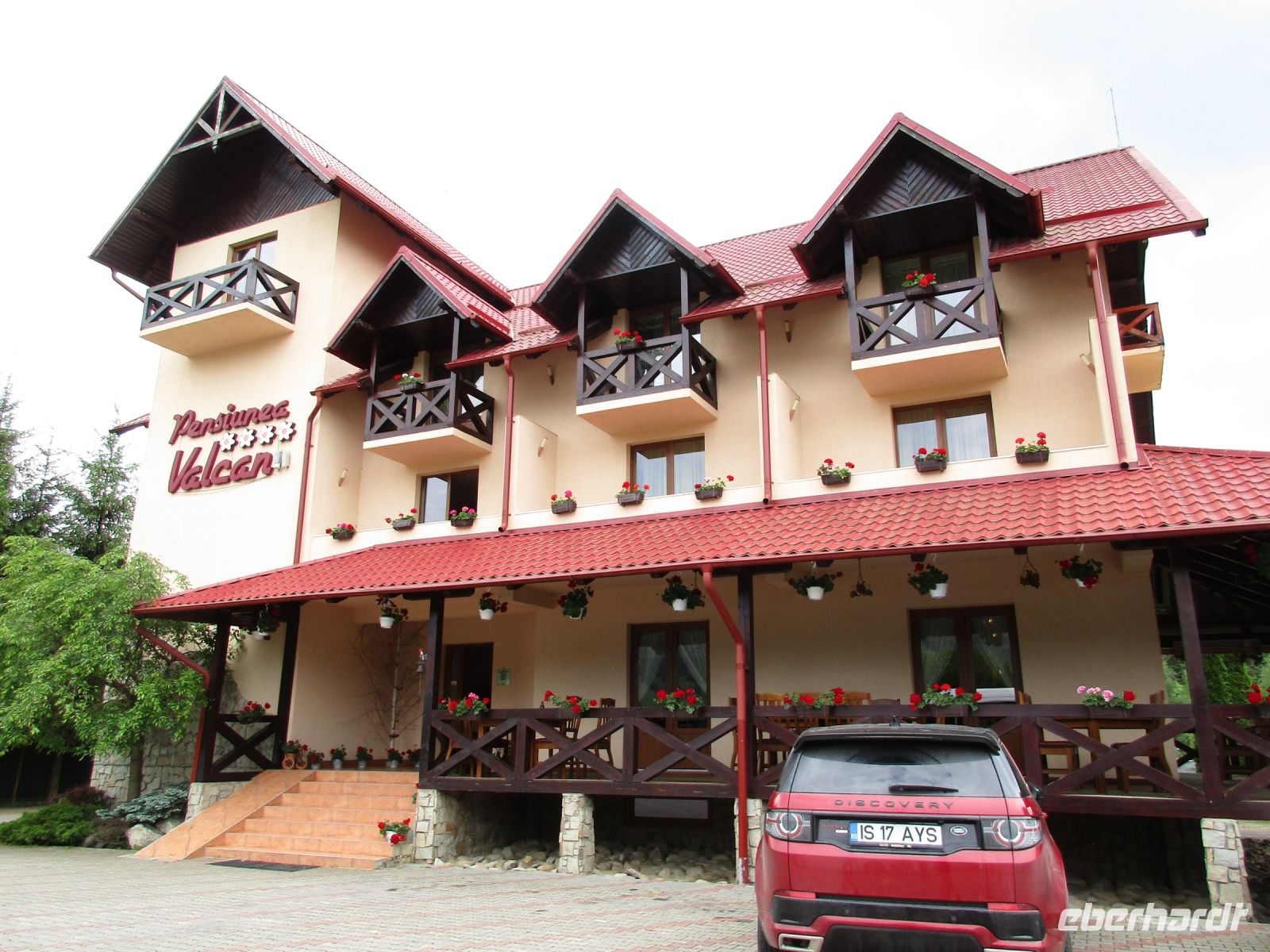 Die ehemalige königliche Sommerresidenz besticht durch ihre Schönheit. Einige der 160 Innenräume kann man wieder besichtigen. Wunderschön sind die Waffensäle, die Bibliothek, das unvollendete Musikzimmer, der Florentinische und der Türkische Saal. Das Schloss hat auch ein kleines Theater. Viele Wandbemalungen stammen von Gustav Klimt. Teppiche, Kronleuchter, Spiegel und die gesamte Inneneinrichtung passen in wunderschöner Vollendung. Von Anfang an gab es hier warmes fließendes Wasser, einen Telefonanschluss und elektrische Beleuchtung, und das hier im Hochgebirge. Wir sind wirklich sehr beeindruckt. Das Schloss der Erbprinzen Pelisor steht nicht weit entfernt, aber wir müssen weiter. Als wir in Predeal ankommen, ist es wieder trocken und wir beziehen unsere Zimmer im hübschen 4-Sterne Hotel „Carmen“. Das Hotel verfügt auch über ein Schwimmbad, Sauna und Whirlpool, was einige unserer Gäste natürlich sofort entdecken und nutzen. Das Abendessen ist gediegen und sehr bekömmlich. Die Zeit ist gekommen, unseren Reiseleiter Cosmin zu verabschieden und ihm für seine fachkundige Reiseleitung zu danken. Wir empfangen Zoltan, der das Steuer übernimmt und bis zum Ende der Reise bei uns bleibt. Unser Hotel liegt ungefähr 1.050 m hoch und wir genießen die sensationell bequemen Betten bei bester Luftqualität. Ein Traum!