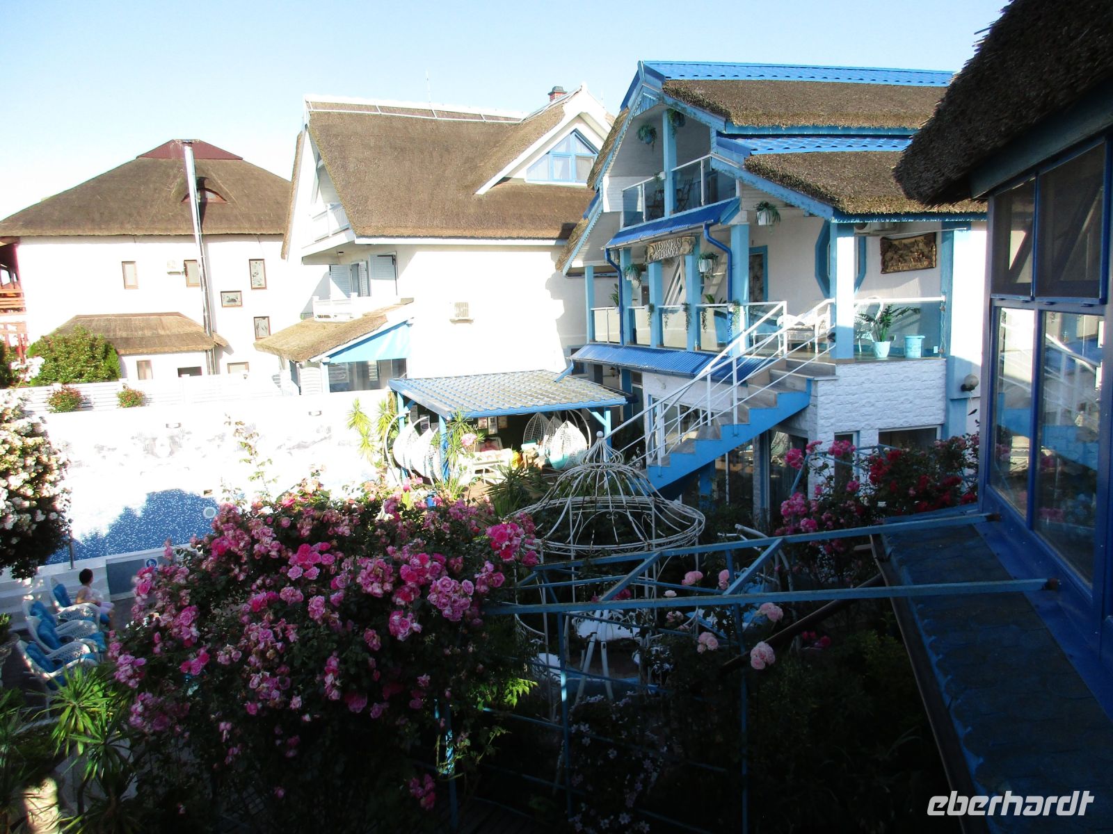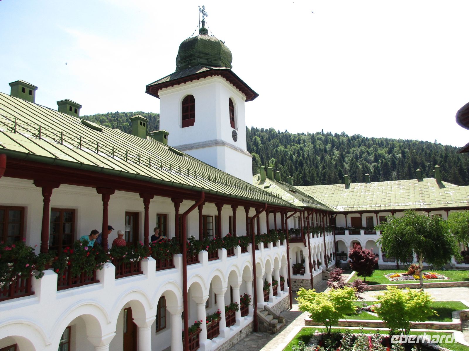 Nach dem leckeren Frühstück haben wir noch zwei Höhepunkte vor uns. Zunächst fahren wir zum Kloster Voronet, das im 15. Jhd. in nur 3 Monaten und 3 Wochen gebaut wurde. Man sagt, dass das wegen der Gebete des Heiligen Daniel und die Mühe von Stefan dem Großen möglich war. Im 16. Jhd. wurden ein Vorraum und ein Vordach hinzuzugefügt und während der Zeit des Metropoliten Grigore Rosca, dessen Gebeine hier liegen, bemalt. Nach der Wende wurde das Kloster, das früher eine Mönchgemeinschaft war, ein Nonnenkloster. Hier wird gebetet, gearbeitet und gemalt. Nun besuchen wir noch unser 3. Kloster in der Bukowina, das Kloster Agapia. Hier ist reger Betrieb und die fleißigen Nonnen sind unterwegs in den Werkstätten, dem Museum und der Kirche. Etwa 500 Nonnen leben hier und sind besonders berühmt wegen ihrer Stickereien und Teppiche. Das Kloster wurde im 17. Jhd. im Auftrag von Gavril und dem Bruder des Fürsten Vasile Lupu errichtet und 1647 dem Erzengel Michael und Gabriel gewidmet. Mitte des 19. Jhd. wirkte hier der berühmte Maler Nicolae Grigorescu und fertigte die Innenmalerei und die Ikonostase an. Wir besuchen eine Werkstatt, die Kirche und das Museum und bewundern die bezaubernden Blumenanlagen. Nun müssen wir uns von der Bukowina verabschieden, um weiter nach Moldawien zu reisen. Ziel ist die Hauptstadt Piatra Neamt oder Kreuzburg an der Bistrita. Das sanfte Bergland begleitet uns und die Landschaft inspiriert zum Träumen. Im Hotel werden wir mit einem Brotzopf, Salz und einem Schnaps empfangen. „Bine ati venit“ heißt es, Herzlich Willkommen! Unser 4-Sterne-Hotel „Central Plaza“ gefällt uns sehr gut. Wir ruhen uns ein wenig aus und spazieren dann gemeinsam zur Gondelstation, die über 22 Gondeln für jeweils 8 Personen verfügt und zur 632 m hohen Bergstation führt. Wir genießen eine Weile die atemberaubende Aussicht und sind in 5 Minuten wieder unten, um zu unserem Abendessen zu gehen. Eine amerikanische Reisegruppe hat eine moldauische Folkloregruppe bestellt, die auch für uns tanzt und singt. Wir sind Zaungäste und erfreuen uns an der Darbietung. Heute heißt es wieder Koffer packen, denn es geht weiter ins Donaudelta.