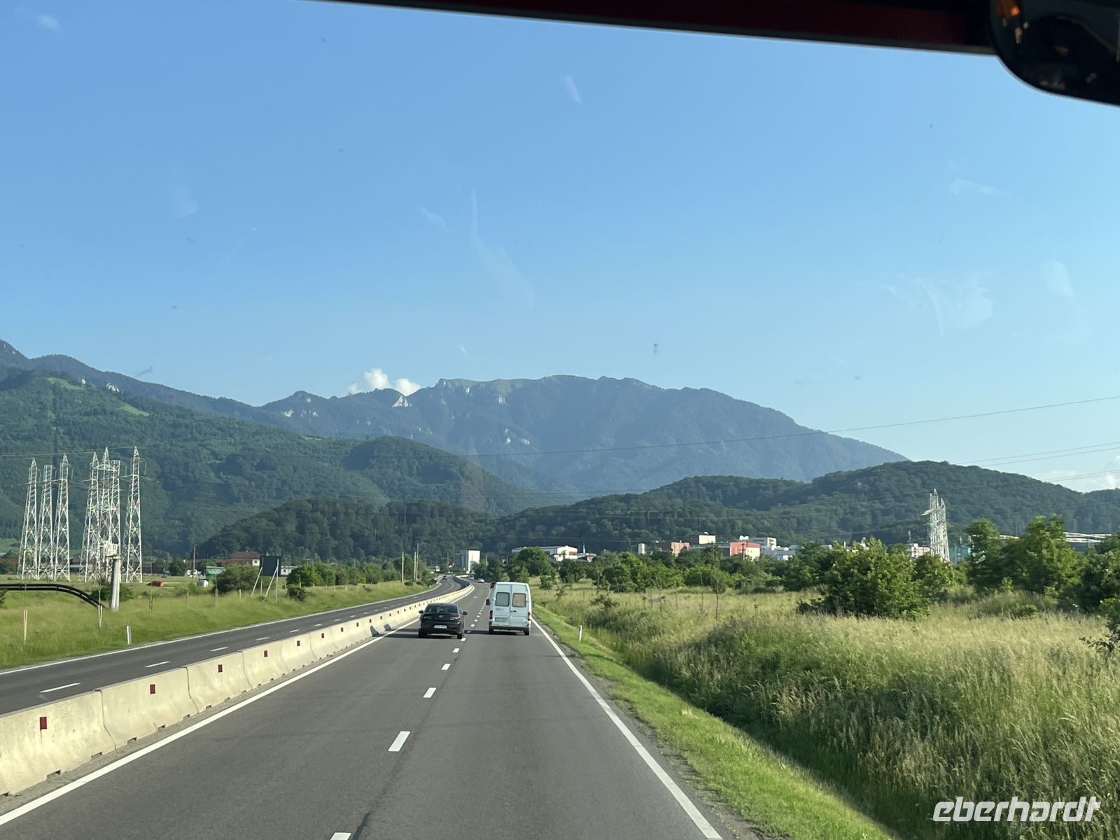 Nach dem Frühstück verluden wir unsere Koffer und machten uns auf den Weg zum berühmten Schloss Peles. Die Fahrt führte uns durch die Landschaft der Südkarpaten. In Podu Vadului legten wir eine kurze Pause ein – eine willkommene Gelegenheit für eine Erfrischung oder einen kleinen Snack, der sich später als sehr nützlich erwies.