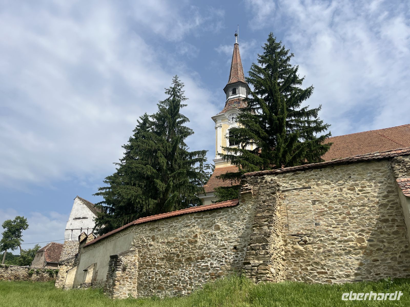 Bei herrlichem Sonnenschein machten wir uns auf den Weg in Richtung Crit / Deutsch-Kreuz. Zunächst schien es, als wäre die Saalkirche dort verschlossen – doch dann entdeckten wir, dass sie gerade renoviert wurde. Die freundlichen Bauarbeiter erlaubten uns einen Blick ins Innere. So konnten wir trotz der Baustelle einen Eindruck dieser typisch siebenbürgischen Anlage gewinnen. Danach nutzten wir die Gelegenheit für einen kleinen Spaziergang durch das ruhige Dorf, das mit seiner Ursprünglichkeit beeindruckte.