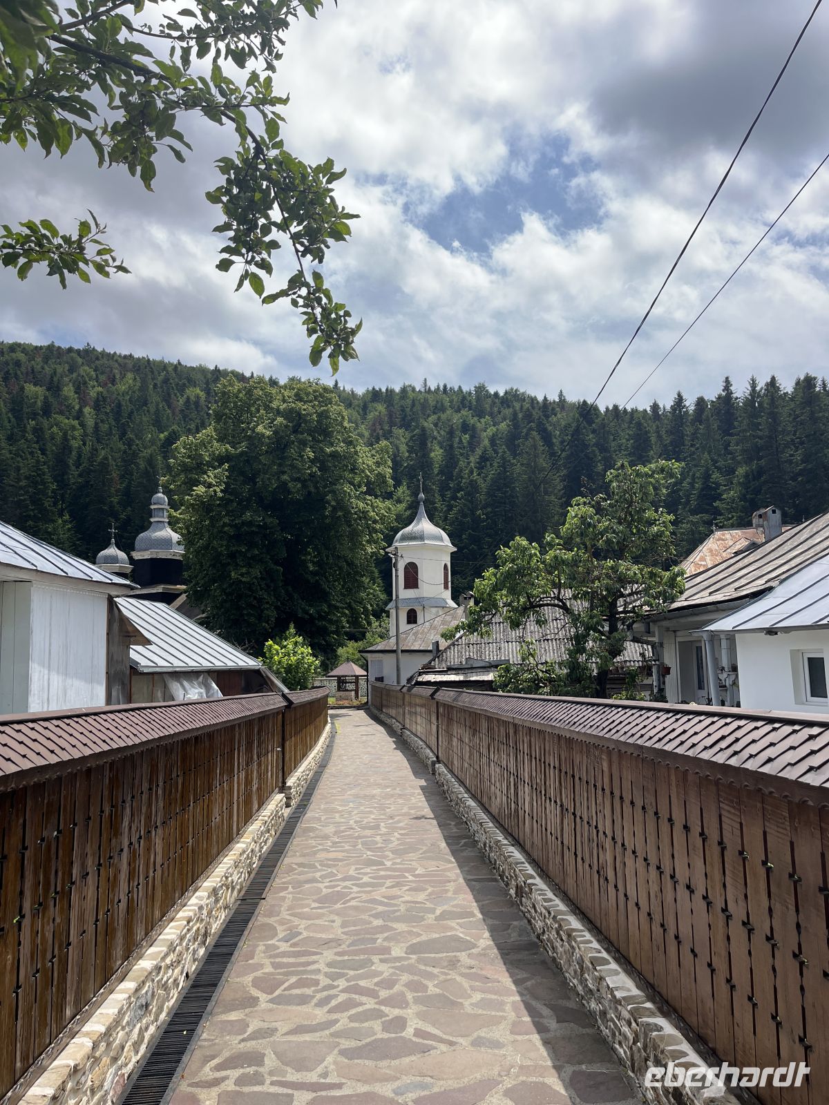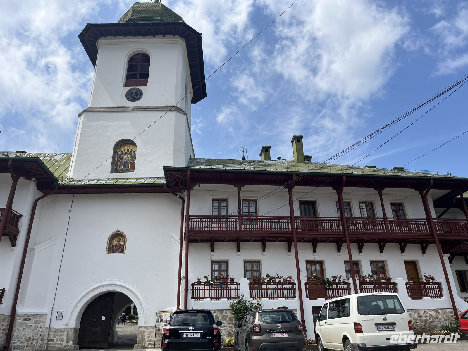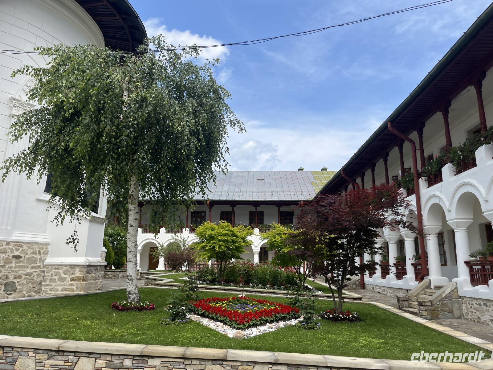 Weiter ging es durch hügelige Landschaften und kleine Ortschaften, mit einem kurzen Halt für eine kleine Pause, bevor wir das Kloster Agapia erreichten. Im Gegensatz zu Voronet wirkte Agapia eher wie ein lebendiges Dorf hinter Klostermauern: Gärten, schmale Wege, weiß getünchte Häuser mit Holzbalkonen – alles war gepflegt und in Blüte. Während der individuelle Rundgang Zeit für stille Eindrücke ließ, bot eine kleine Führung durch das Klostermuseum spannende Einblicke in sakrale Kunst und Stickereien.