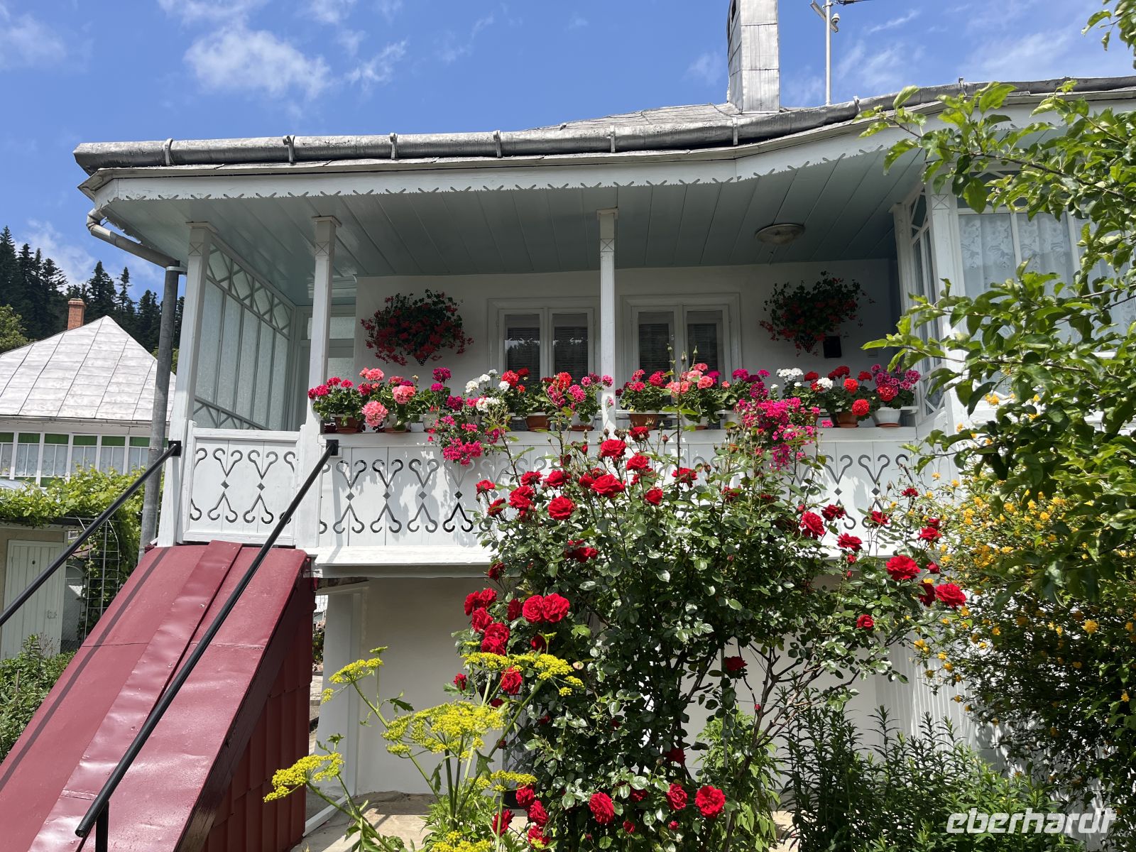 Unser Weg führte uns durch die wunderschöne Landschaft der Bukowina, vorbei an grünen Hügeln und weiten Tälern. Schon bald erreichten wir den Tihuta-Pass, besser bekannt als Borgo-Pass – jenen Ort, den Bram Stoker einst als Schauplatz von Draculas Schloss wählte. Das ehemalige Dracula-Hotel – inzwischen verlassen und leicht verfallen, aber dennoch mit einem Hauch von morbidem Charme. Wer wollte, unternahm von dort einen kurzen Aufstieg zum Kloster Nasterea Maicii Domnului und zur sogenannten Crucea din Pasul – einem großen Kreuz mit Aussichtsplattform. Von dort bot sich ein weiter Blick über die grüne Landschaft.