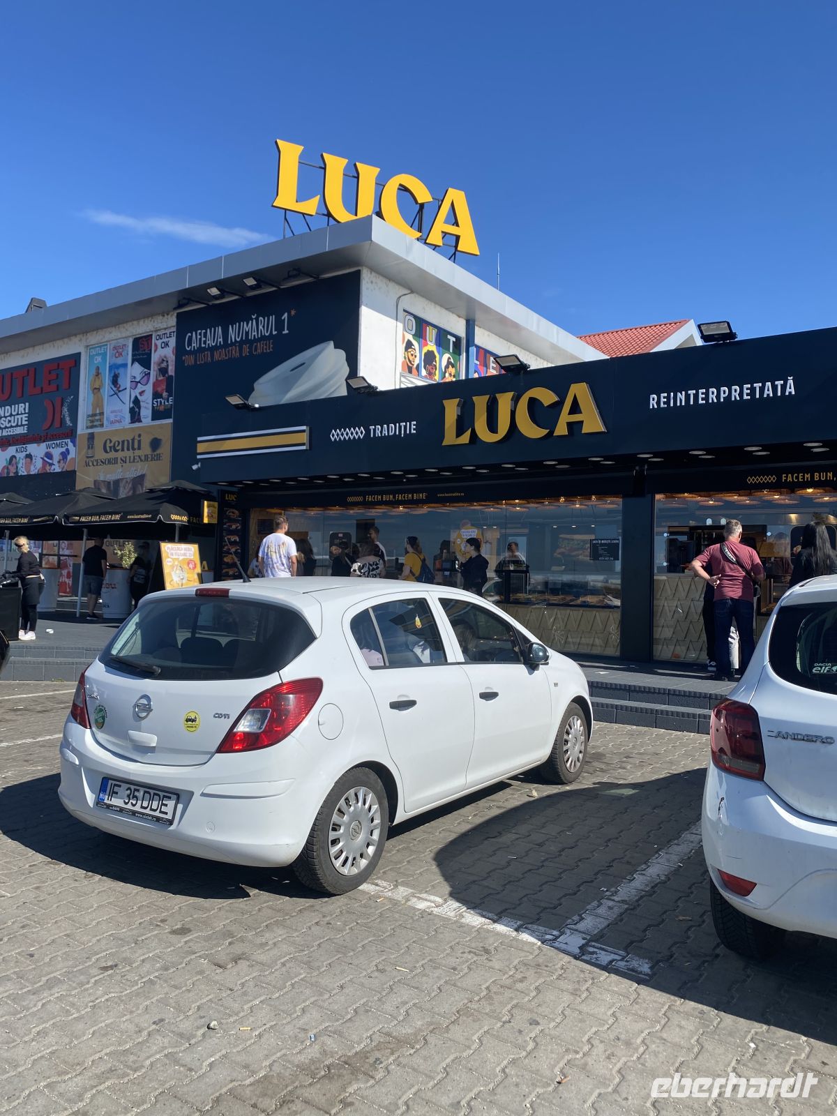 Am ersten Halt an einer Tankstelle machen wir Bekanntschaft mit Luca, einer Gastronomiekette, die ein reiches und offensichtlich immer frisches Angebot an Gebäck hat. Wir decken uns ein und weiter geht die Fahrt durch das Prahova-Tal in Richtung Peles. Da es Wochenende ist, müssen wir die schmale Straße mit vielen Wochenendausflüglern teilen und kommen nur langsam voran. So bleibt viel Zeit, die Landschaft der Bucegi- Berge zu betrachten.
