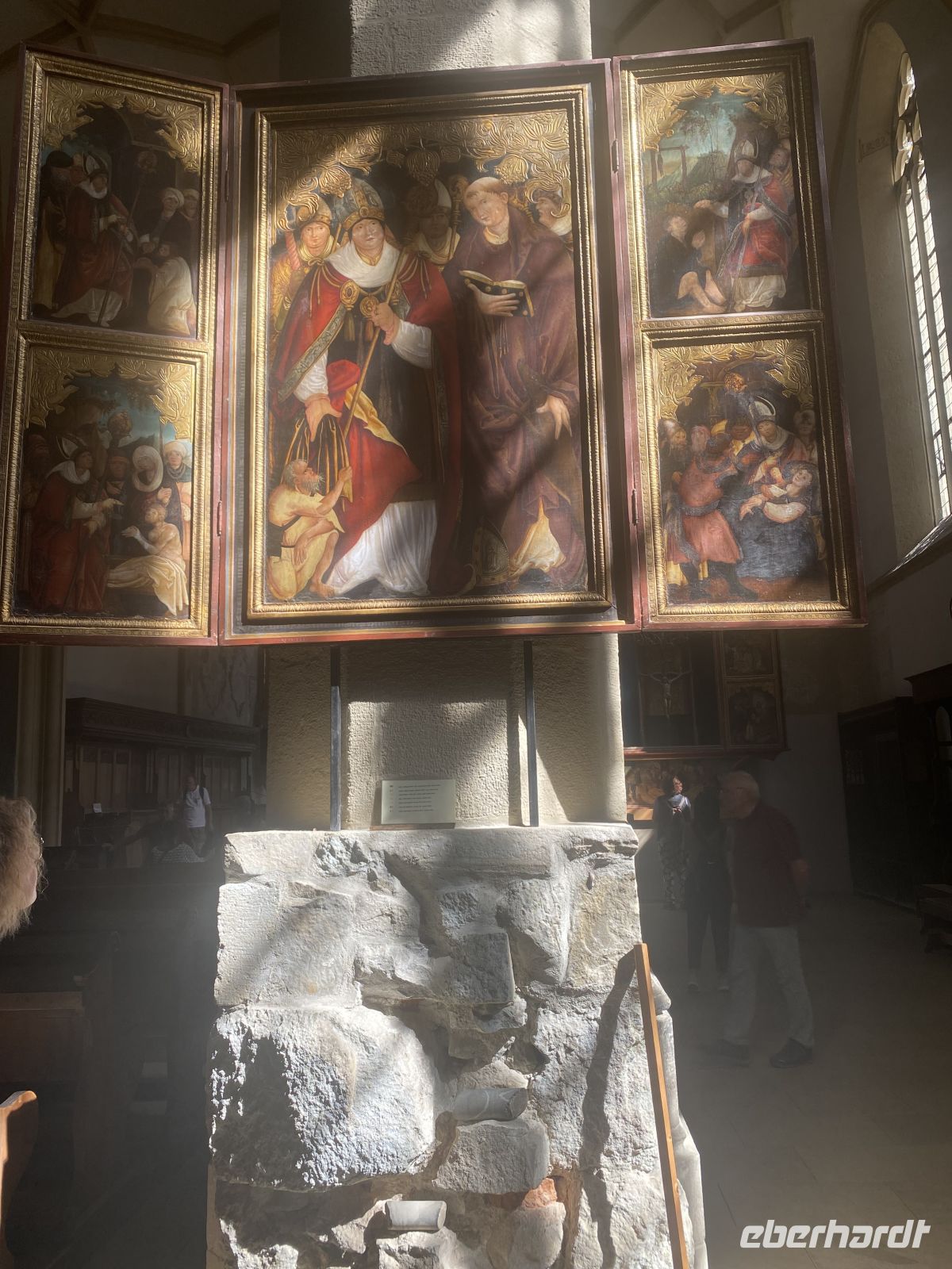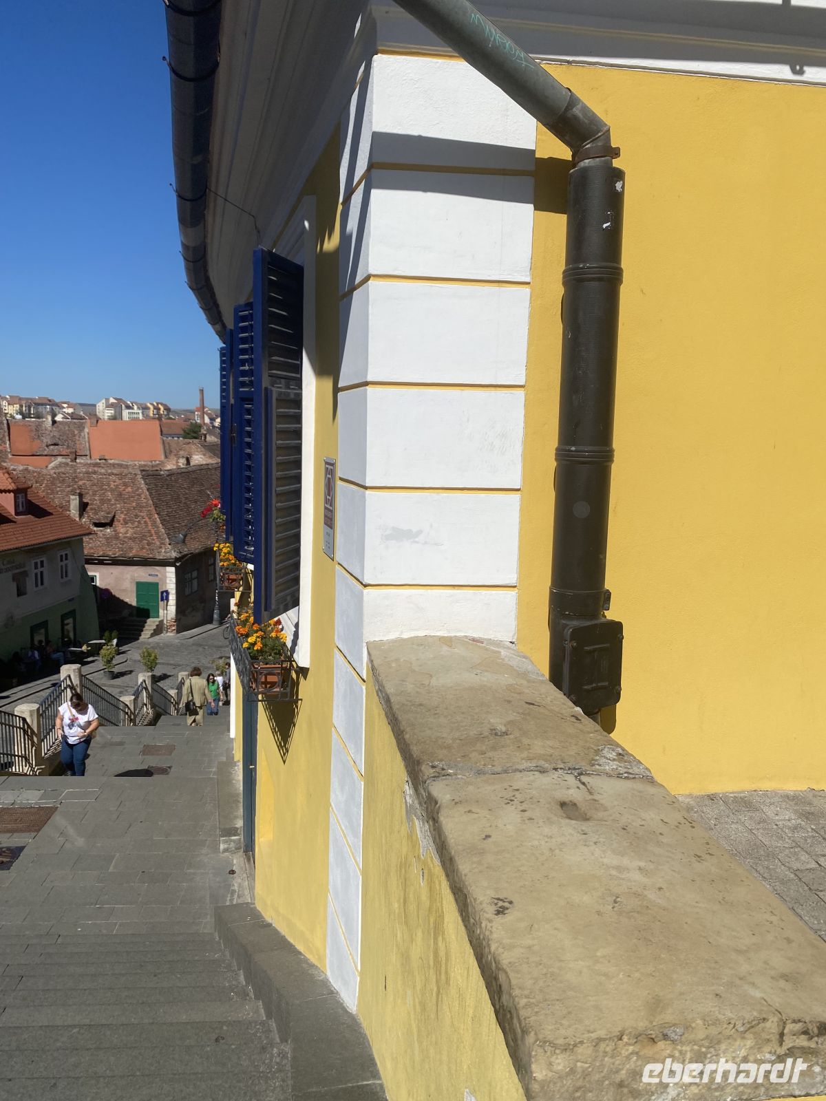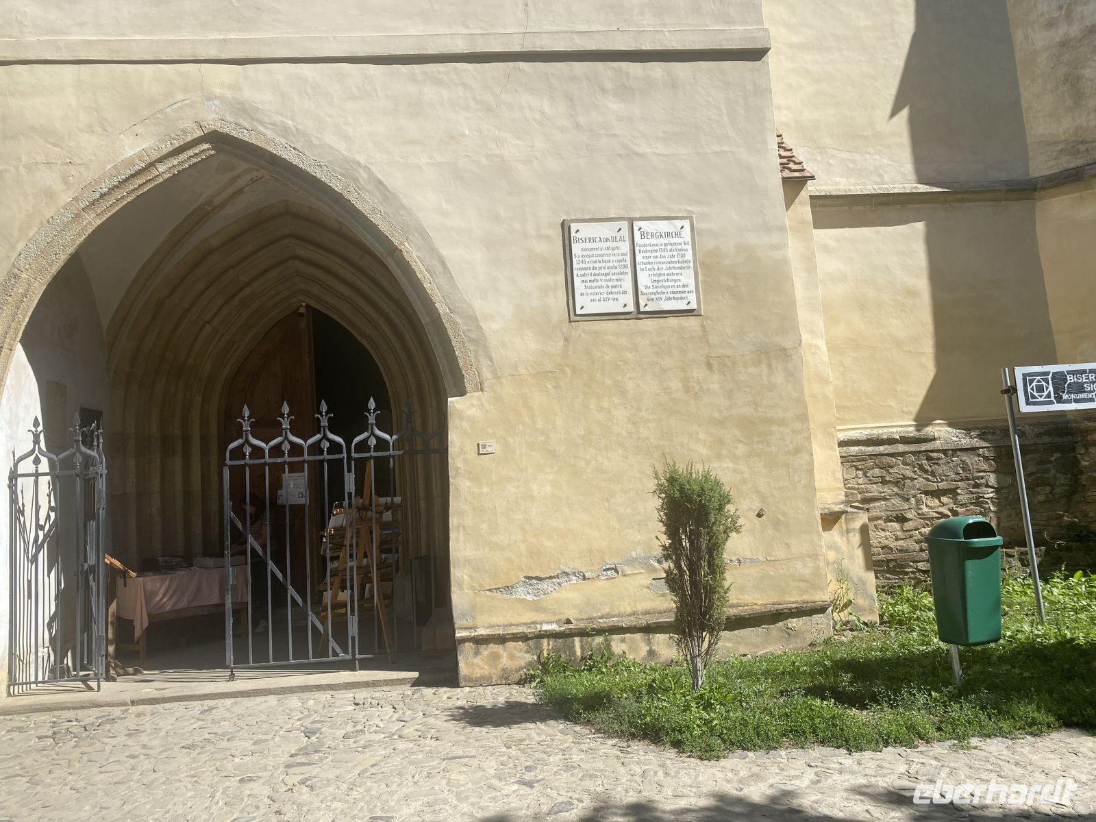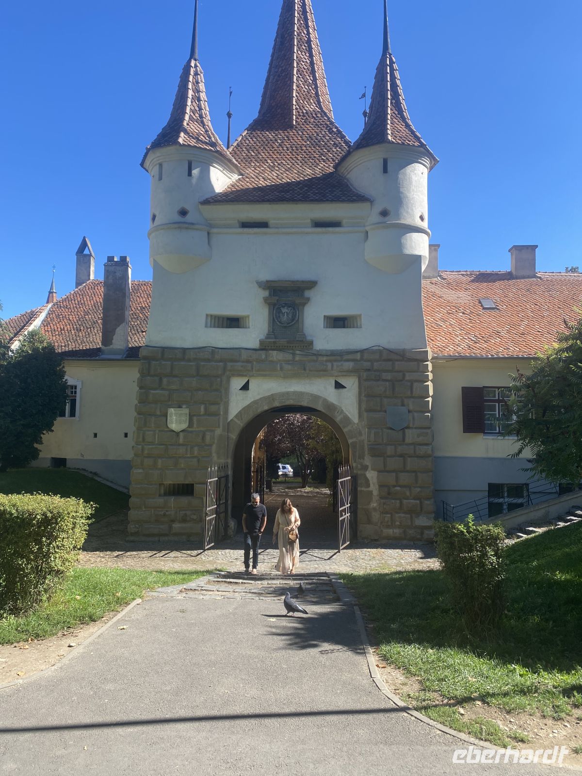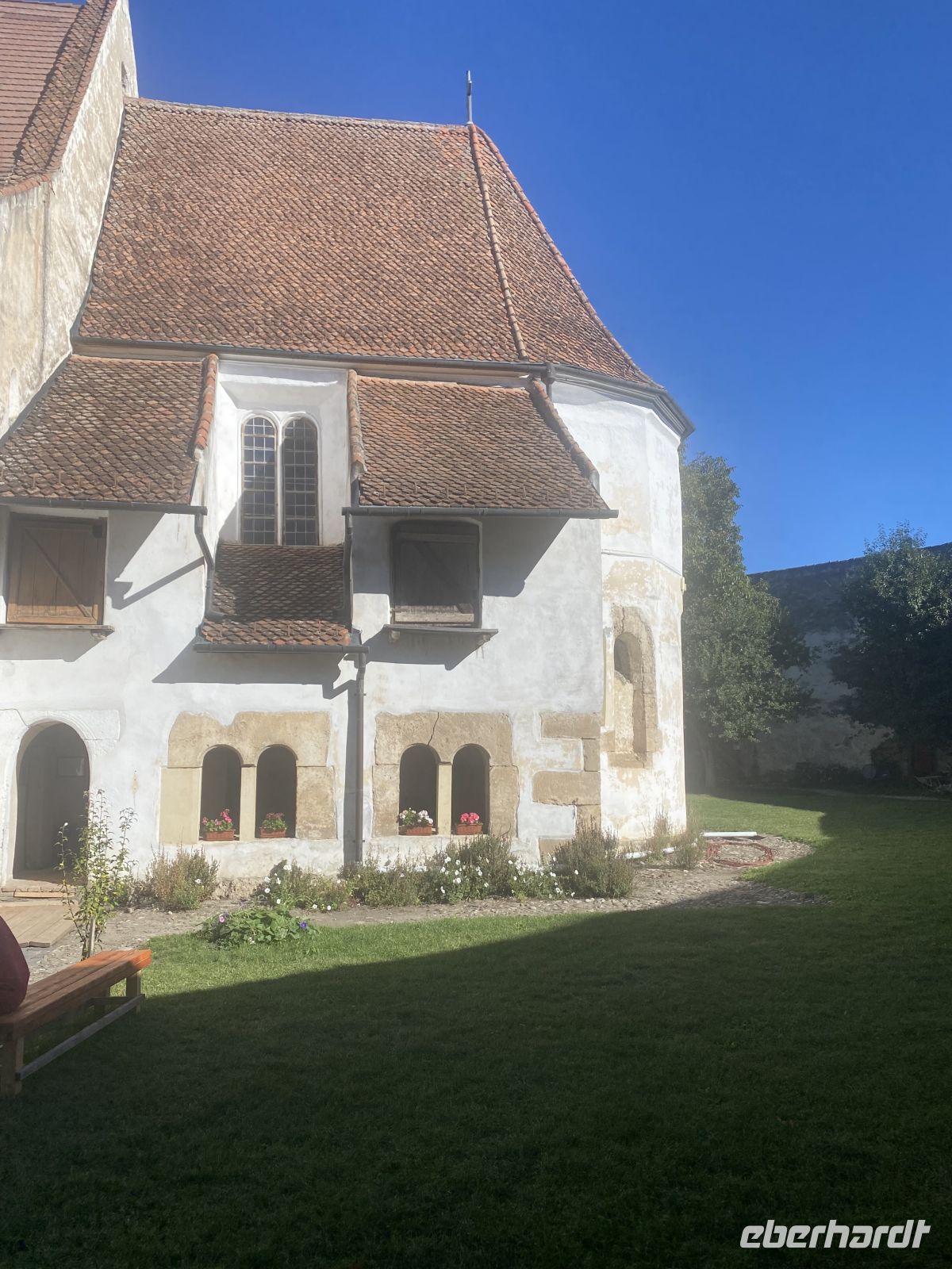 Natürlich besuchen wir das Dracula -Haus und lassen uns von ihm erschrecken, aber auch die daneben stehenden Häuser sind schmuck und gut gepflegt. Wir wandern über die überdachte Schülertreppe zur Bergkirche hinauf. Die aus dem 14. Jahrhundert stammende Kirche wurde umfassend restauriert, seit 2004 kann sie besichtigt werden. Der älteste Teil der Kirche ist die Krypta aus dem 12. Jahrhundert, sie ist einzigartig in Siebenbürgen.