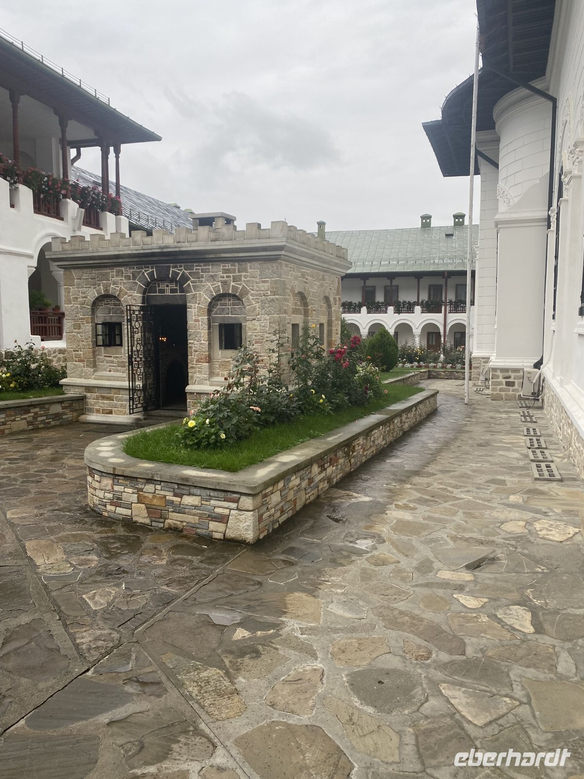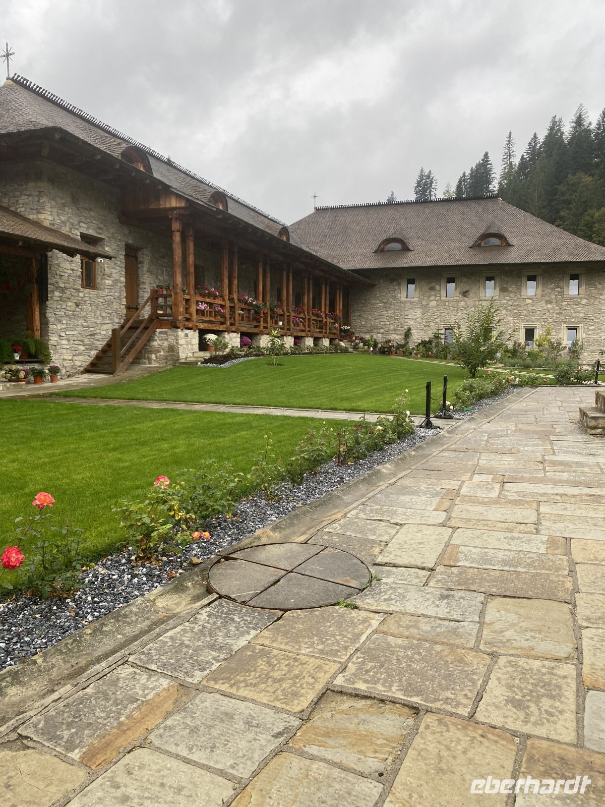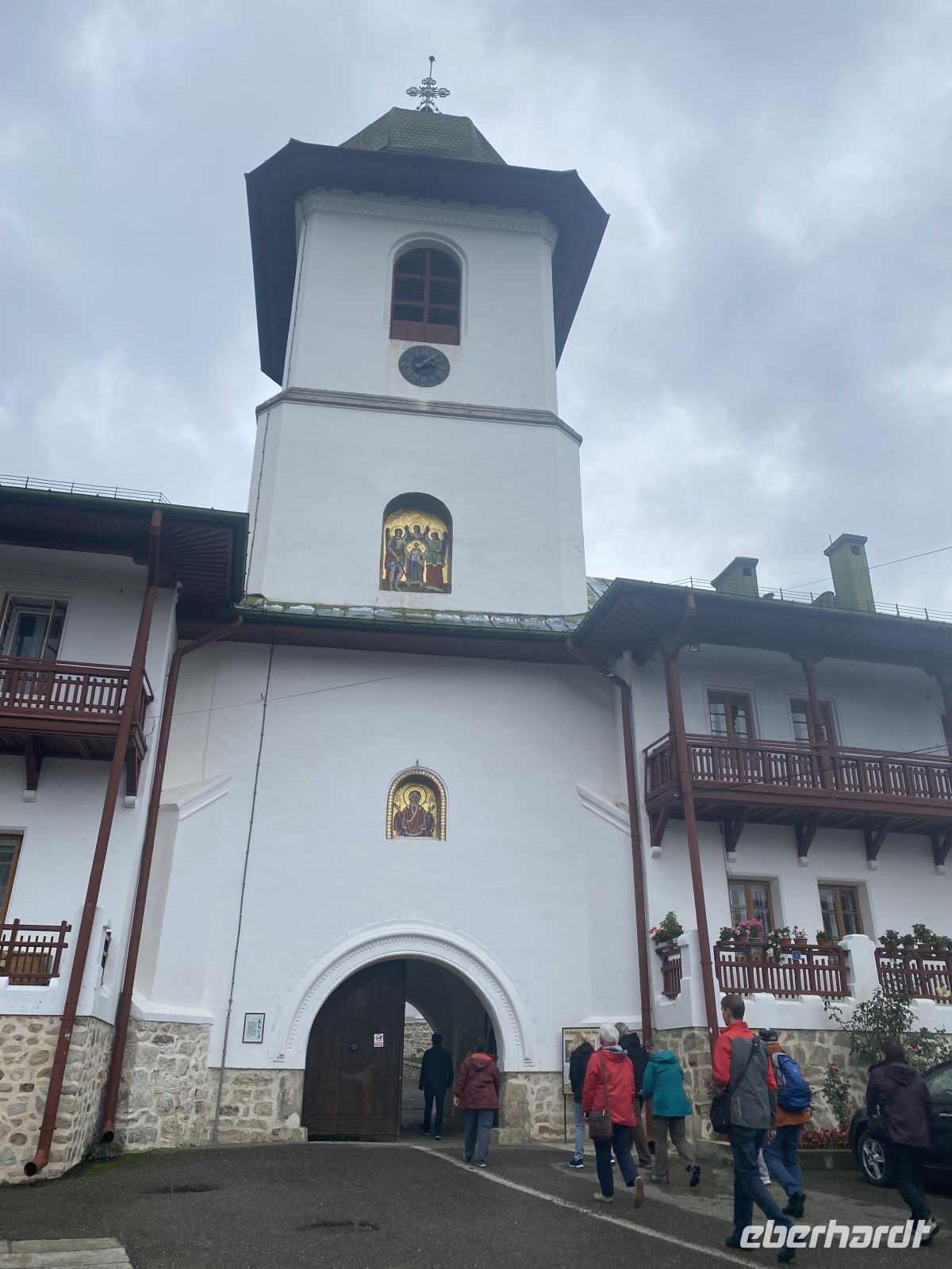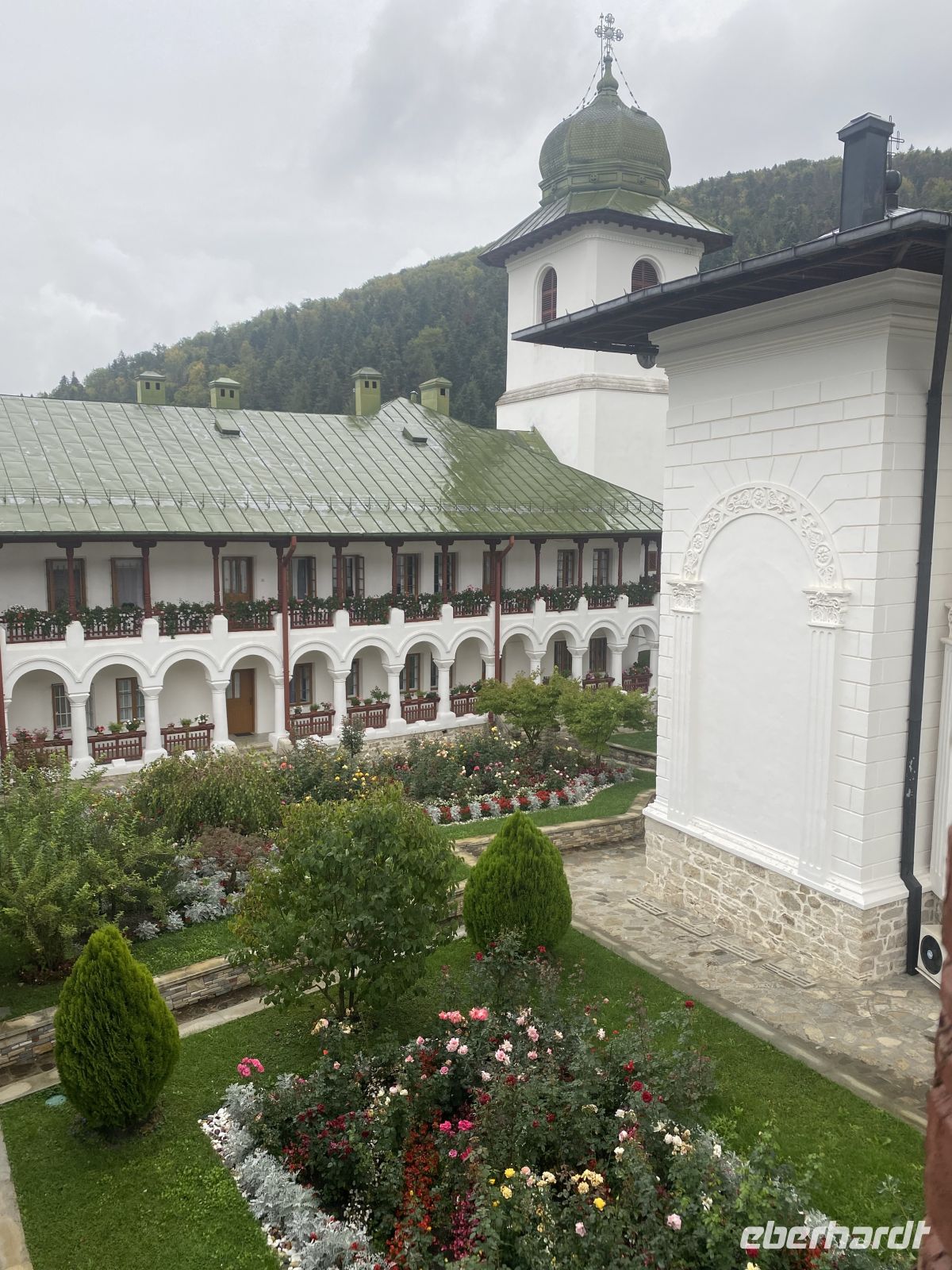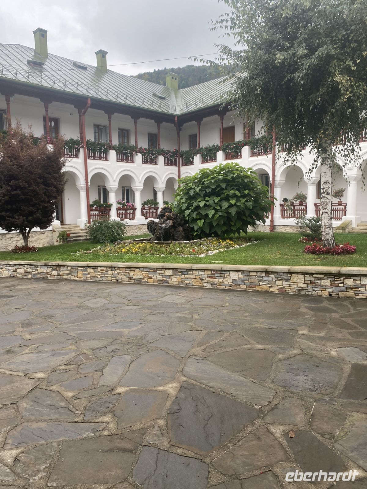 Nach so vielen Eindrücken brauchen wir eine Auszeit und so bestellen wir uns in Targu Neamt Samales mit Polenta, alle sind zufrieden und erfrischt und so widmen wir uns am Nachmittag dem Kloster Agapia. Das Kloster wurde von Gavril Coci, im 17. Jahrhundert gestiftet, im 19. Jahrhundert vollständig erneuert. Der Maler Nicolae Grigorescu malte die Kirche aus, im Klostermuseum kann man auch seine Werke sehen. Das Kloster ist eigentlich ein ganzes Dorf, etwa 300 Nonnen leben hier, sie bewirtschaften das Kloster, sie weben sticken, stricken und malen. Es gibt eine Klosterschule und einen Klosterladen.