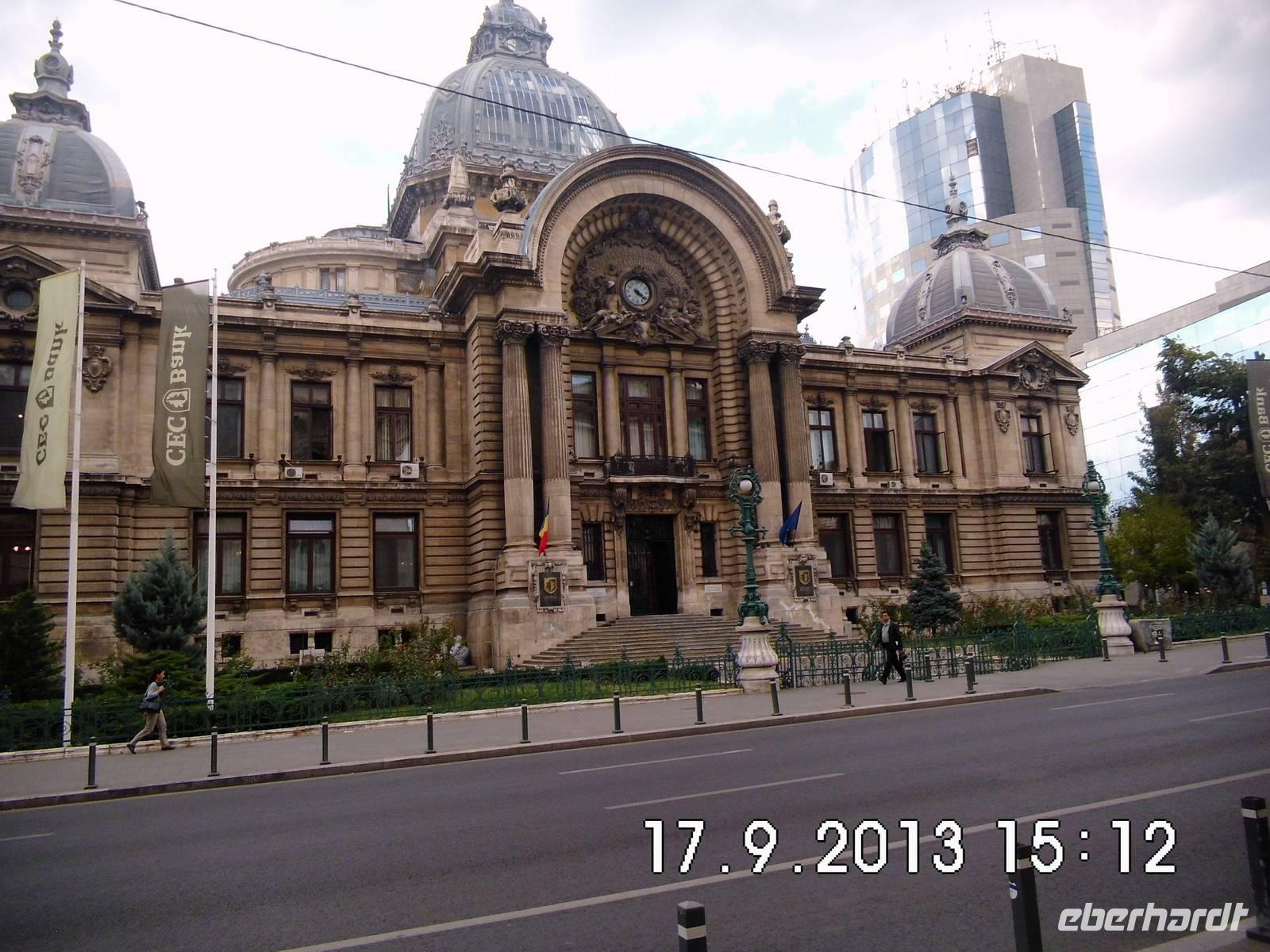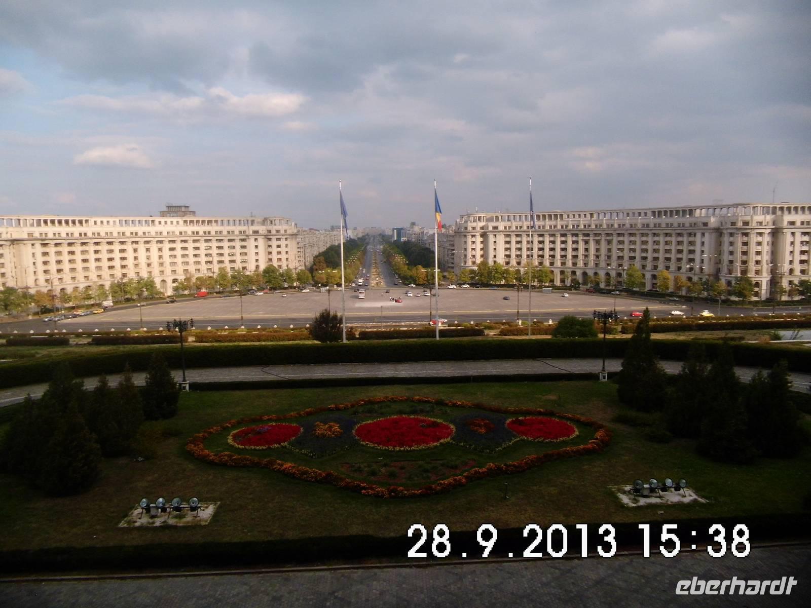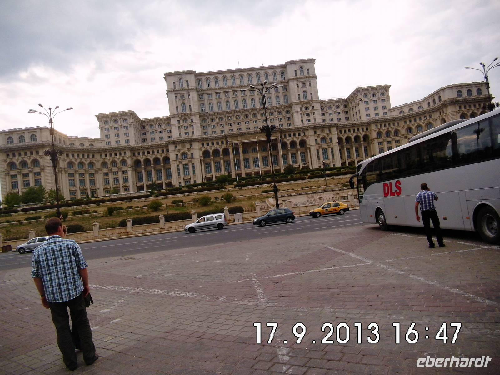 Wir sehen den Triumphbogen, das Athenaeum, das im stalinistischen Zuckerbäckerstil errichtete Pressezentrum, die Nationalbank, den Nationalen Militärclub und das riesige Parlamentsgebäude, ein gigantischer Koloss, den wir am letzten Tag unserer Reise noch von innen besichtigen werden.