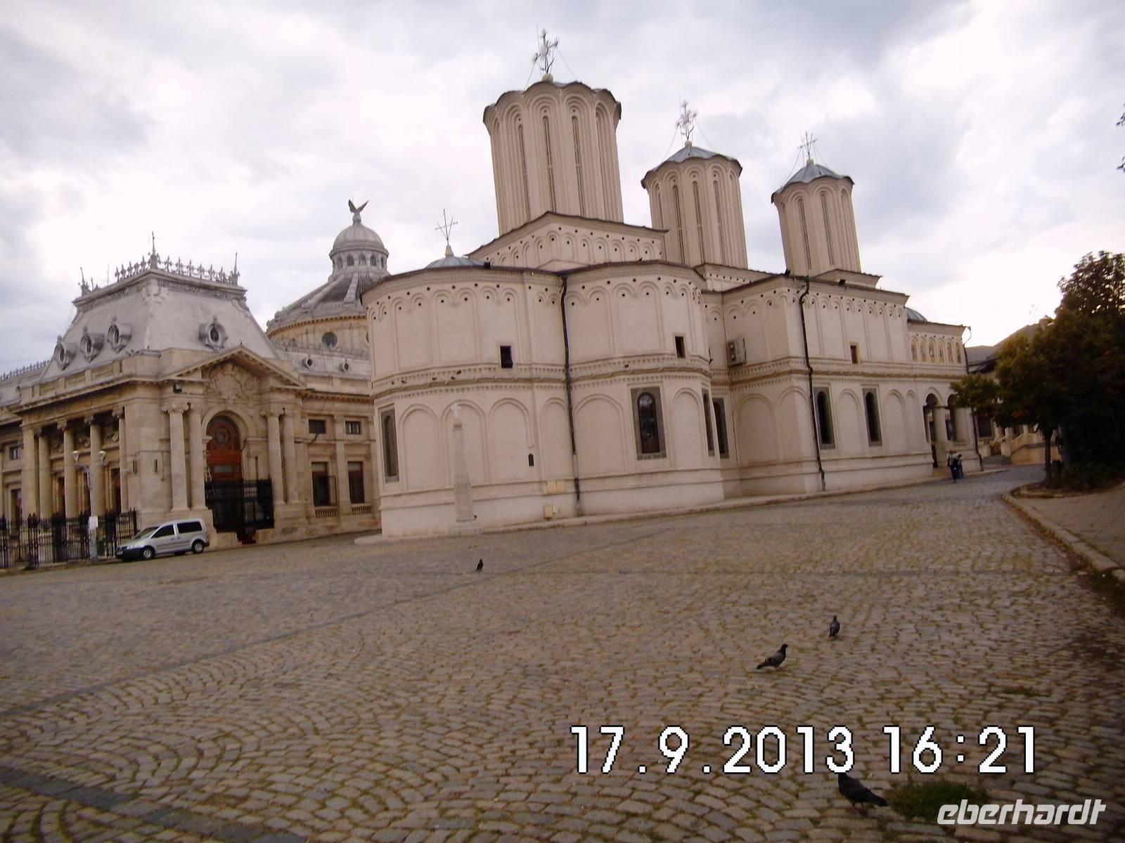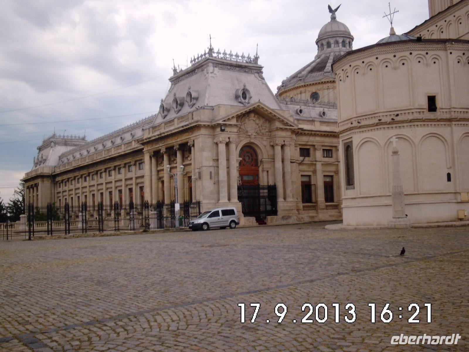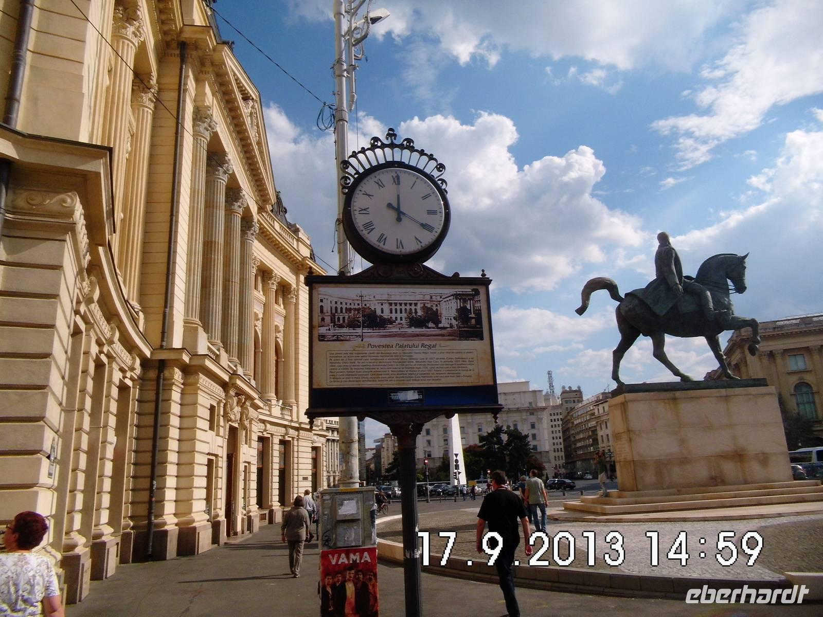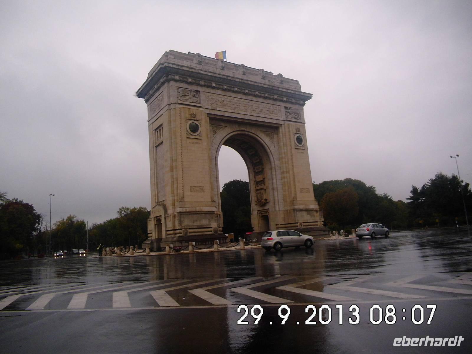 Wir sehen den Triumphbogen, das Athenaeum, das im stalinistischen Zuckerbäckerstil errichtete Pressezentrum, die Nationalbank, den Nationalen Militärclub und das riesige Parlamentsgebäude, ein gigantischer Koloss, den wir am letzten Tag unserer Reise noch von innen besichtigen werden.