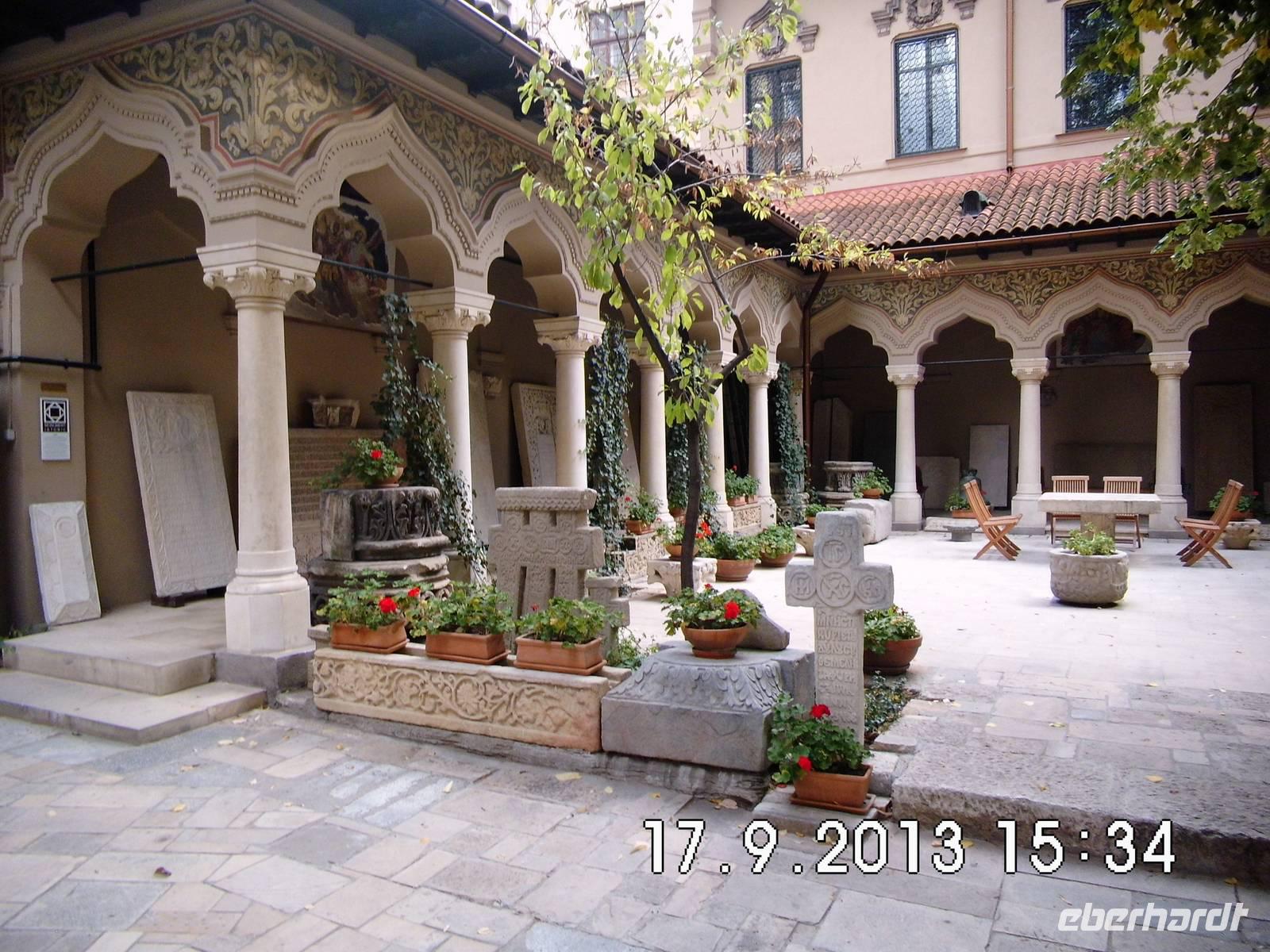 Bei einem Stadtrundgang erschließen sich uns aber auch solche Kleinode wie das Lokal Carul cu Bere (Bierwagen), das in einem neogotischen Gebäude 1879 eröffnet wurde und sich auch heute noch großer Beliebtheit erfreut. Mitten im alten Handelsviertel erzählt uns die Str.Lipscani (Leipziger Str) von Händlern aus Leipzig. Ein anschauliches Beispiel für Übernachtungsmöglichkeiten für die damaligen Händler zeigt uns das originalgetreu rekonstruierte Hanul lui Manuc, die „Alte Karawanserei".