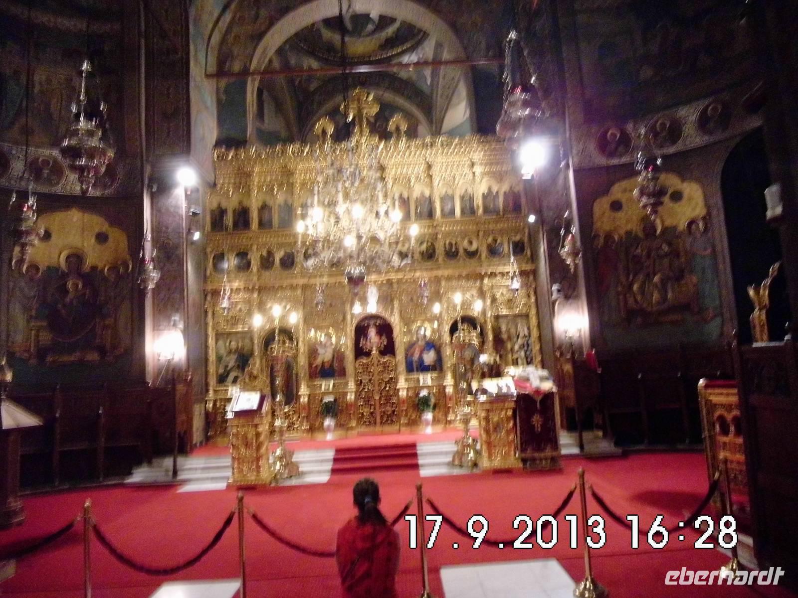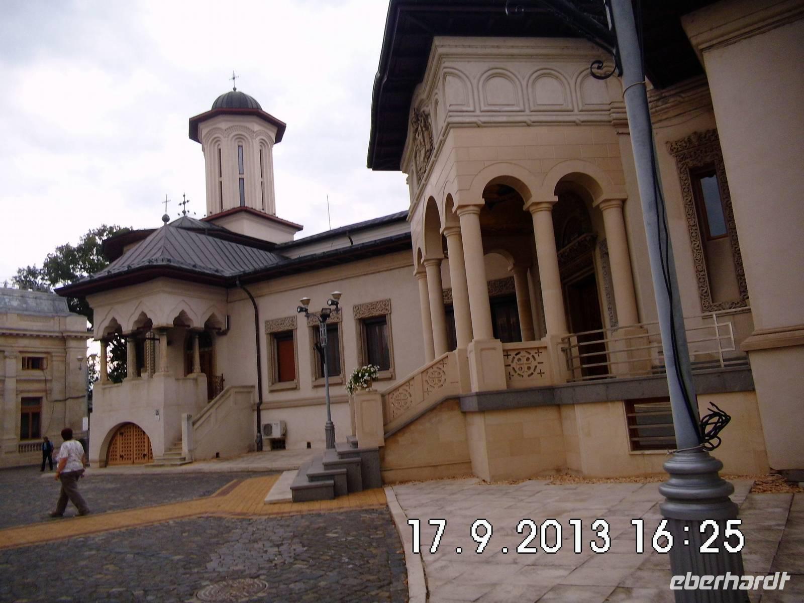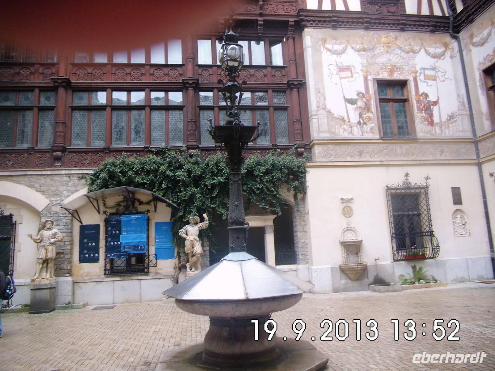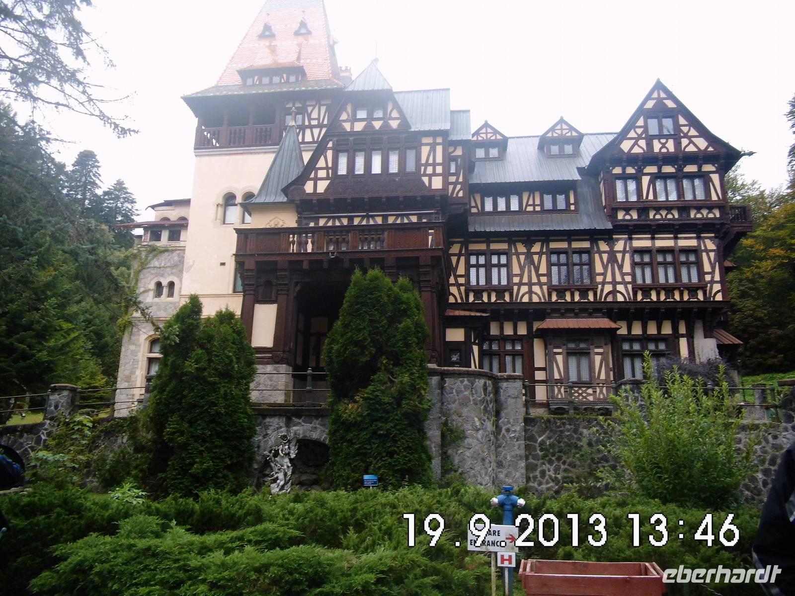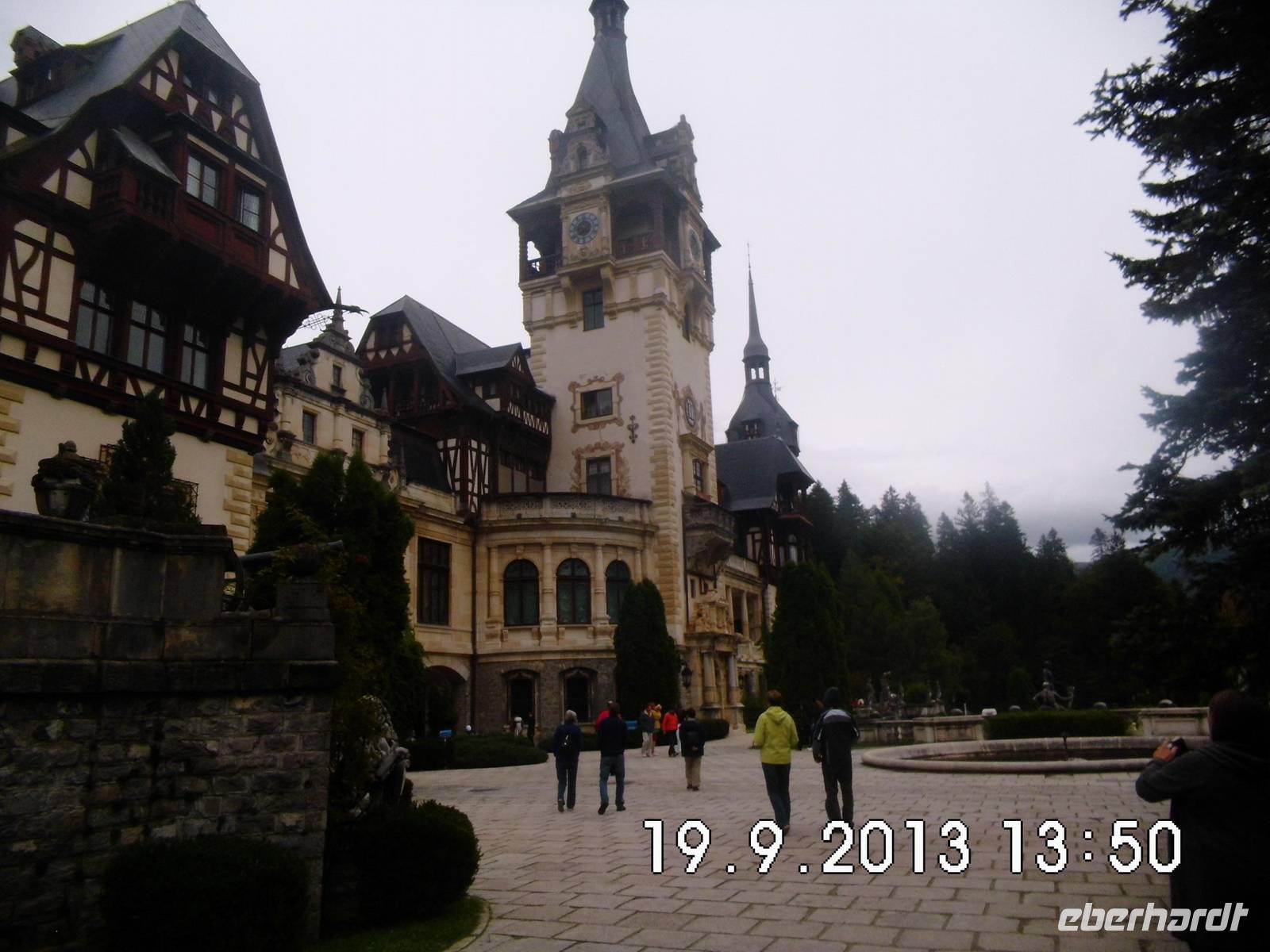 uns und nach der Brücke über die Donau sind wir wieder in der Walachei. Am frühen Nachmittag kommen wir in Sinaia an und besichtigen das Schloss Pelesch. Es entstand zwischen 1873 und 1914 im Stil der Neorenaissance. Die einstige Sommerresidenz von König Carol I. mit seinen Türmchen,Säulen, Erkern und Fachwerk diente in der Ceausescu-Zeit als dessen Privatresidenz und der Unterbringung von Staatsgästen. Zur Zeit des Neubaus war es eines der modernsten Schlösser seiner Zeit mit allen technischen Neuerungen wie elektrisches Licht, Zentralheizung, Lüftung, Aufzügen und Telefon. Im Inneren findet man die Kopien von weltbekannten Kunstwerken, es gibt thematische Säle und Zimmerfluchten und ein Schlosstheater. Auch die Waffensammlung beeindruckt.