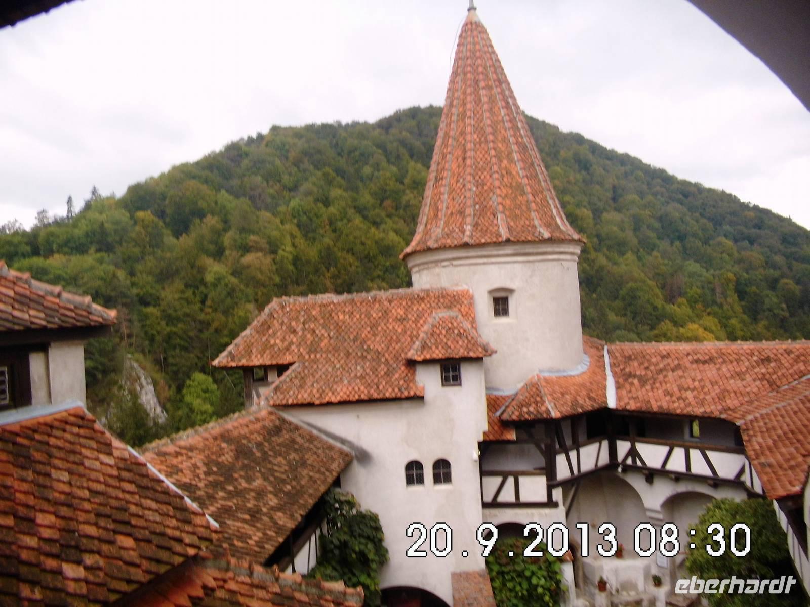Heute machen wir uns auf den Weg zum sagenumwobenen Schloss Bran . Die auf einem Felsen thronende Törzburg wurde in der Nachkriegszeit von Touristenstrategen zum Dracula-Domizil gekürt, obwohl nicht erwiesen ist, dass Dracula jemals in ihr weilte. Der heutige Bau wurde von den Bewohnern der Stadt Brasov/Kronstadt 1377 aus Steinen und Ziegeln errichtet. Nach mehreren Besitzerwechseln gelangte die Burg 1498 wieder an Brasov. Die Stadt schenkte die Burg 1920 der Königin Maria, die sie zur Sommerresidenz umbauen ließ, ohne ihr den Wehrcharakter zu nehmen.In den 60 m tiefen Brunnen wurde z.B. ein Lift eingebaut.