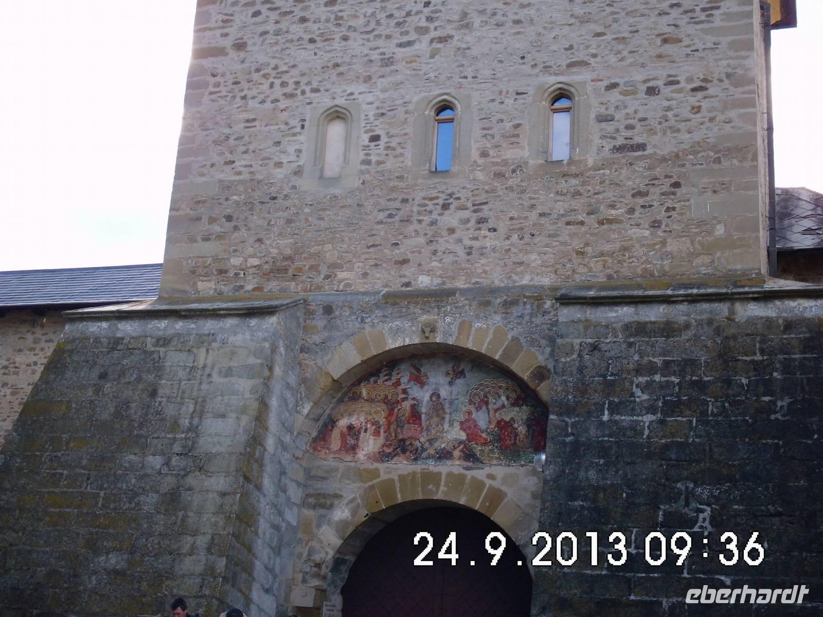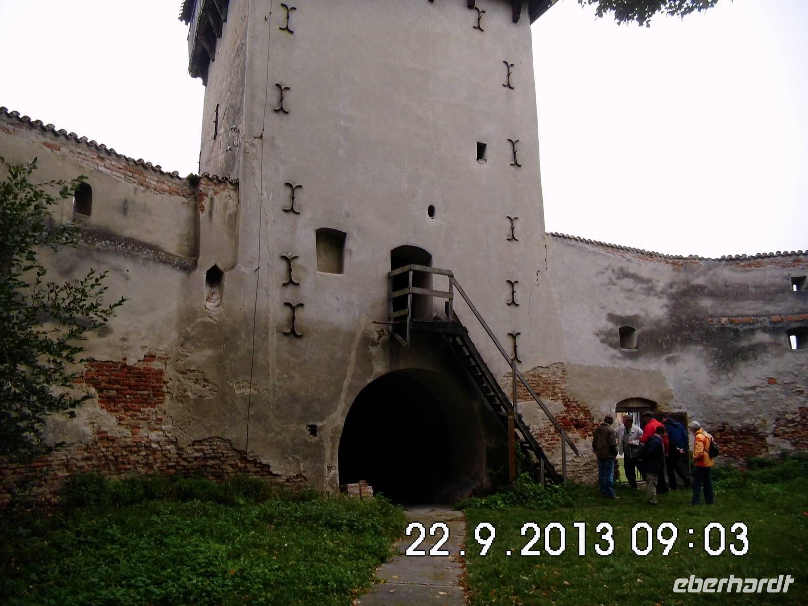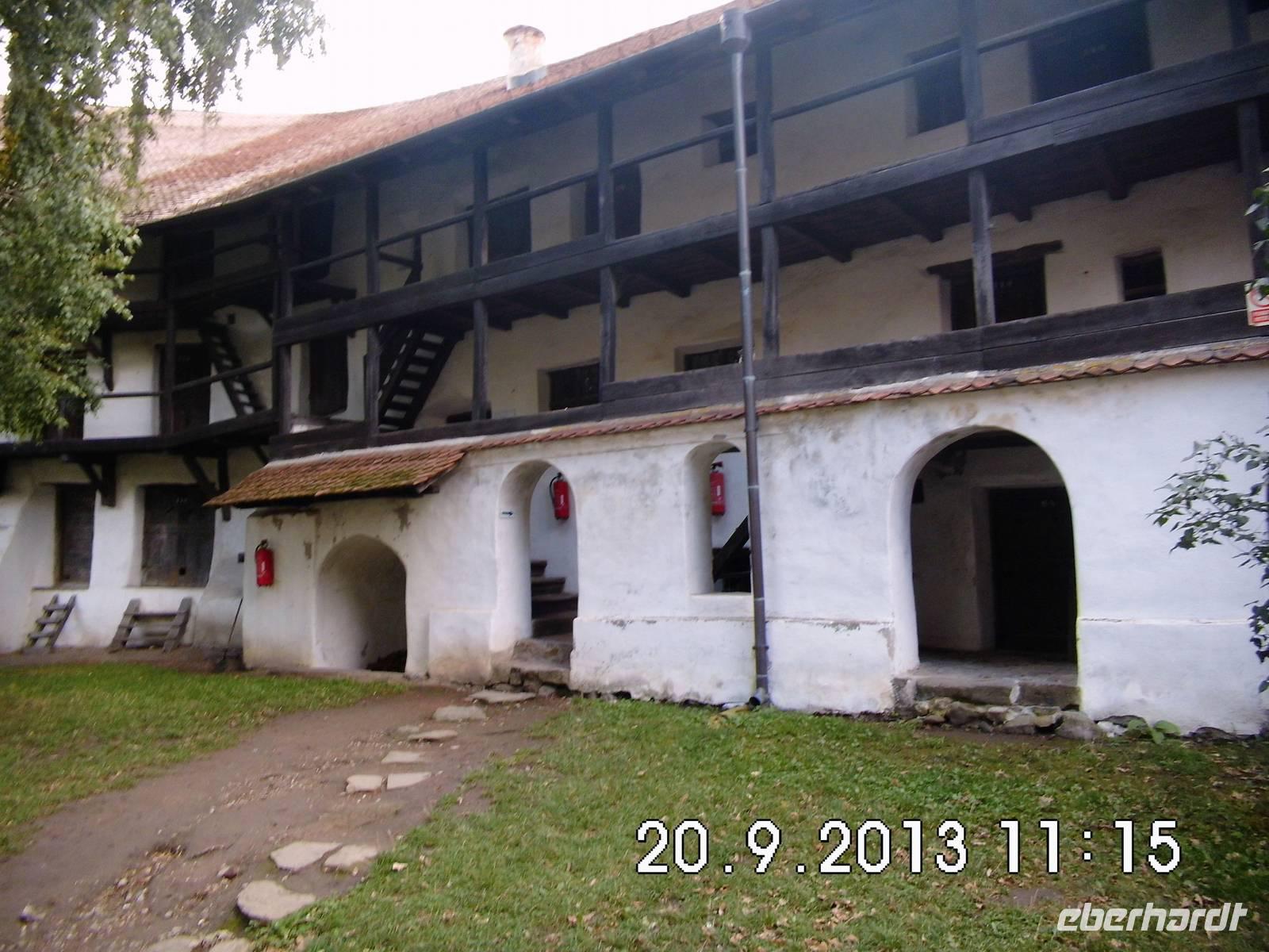 Auf Vorschlag von Buci fahren wir zu der fast auf dem Weg liegenden Kirchenburg Prejmer/Tartlau. Diese Sehenswürdigkeit ist nicht im offiziellen Programm, wir nehmen den Vorschlag aber gern an. Was wir vorfinden ist die größte Kirchenburg in Siebenbürgen, ab 1241 massiv von den Siebenbürger Sachsen ausgebaut. Im Innern der Kirche dominiert der gotische Flügelaltar, der älteste erhaltene Altar Transsilvaniens. Wir gehen auch ein Stück den Wehrgang entlang und sehen uns die „Todesorgel" an, eine ausgeklügelte Schießscharte (ein drehbarer Holzbalken für Munition).