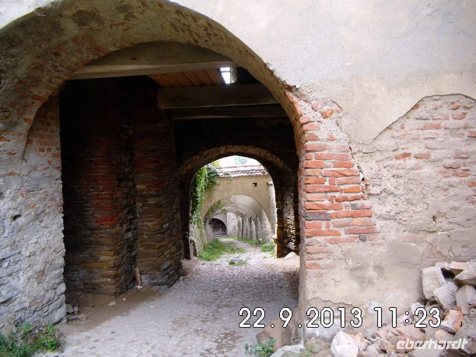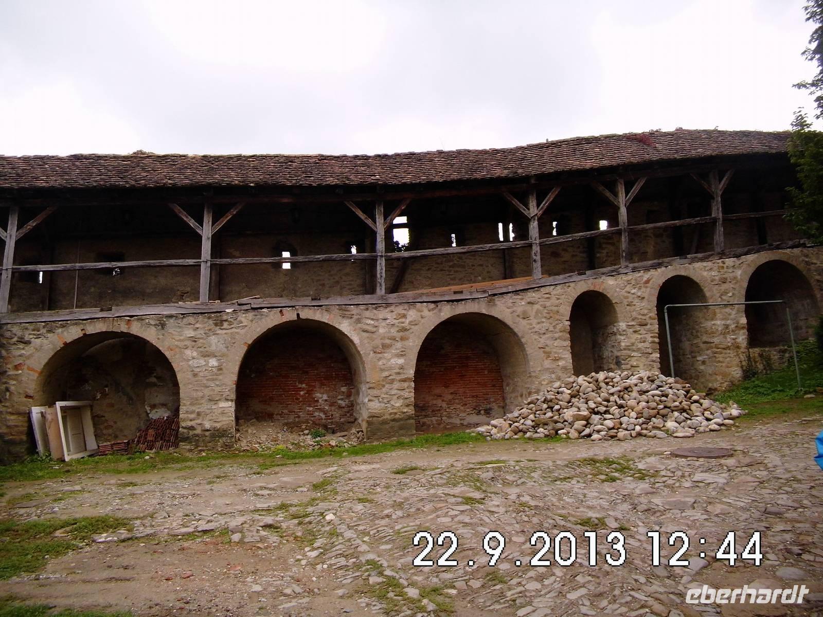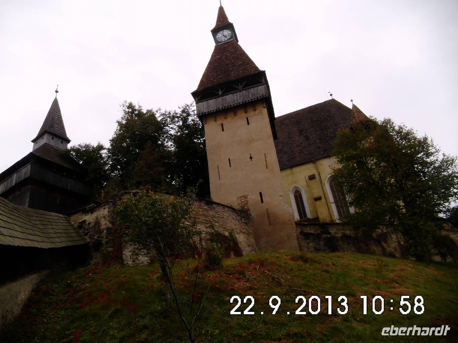 Auf Vorschlag von Buci fahren wir zu der fast auf dem Weg liegenden Kirchenburg Prejmer/Tartlau. Diese Sehenswürdigkeit ist nicht im offiziellen Programm, wir nehmen den Vorschlag aber gern an. Was wir vorfinden ist die größte Kirchenburg in Siebenbürgen, ab 1241 massiv von den Siebenbürger Sachsen ausgebaut. Im Innern der Kirche dominiert der gotische Flügelaltar, der älteste erhaltene Altar Transsilvaniens. Wir gehen auch ein Stück den Wehrgang entlang und sehen uns die „Todesorgel" an, eine ausgeklügelte Schießscharte (ein drehbarer Holzbalken für Munition).