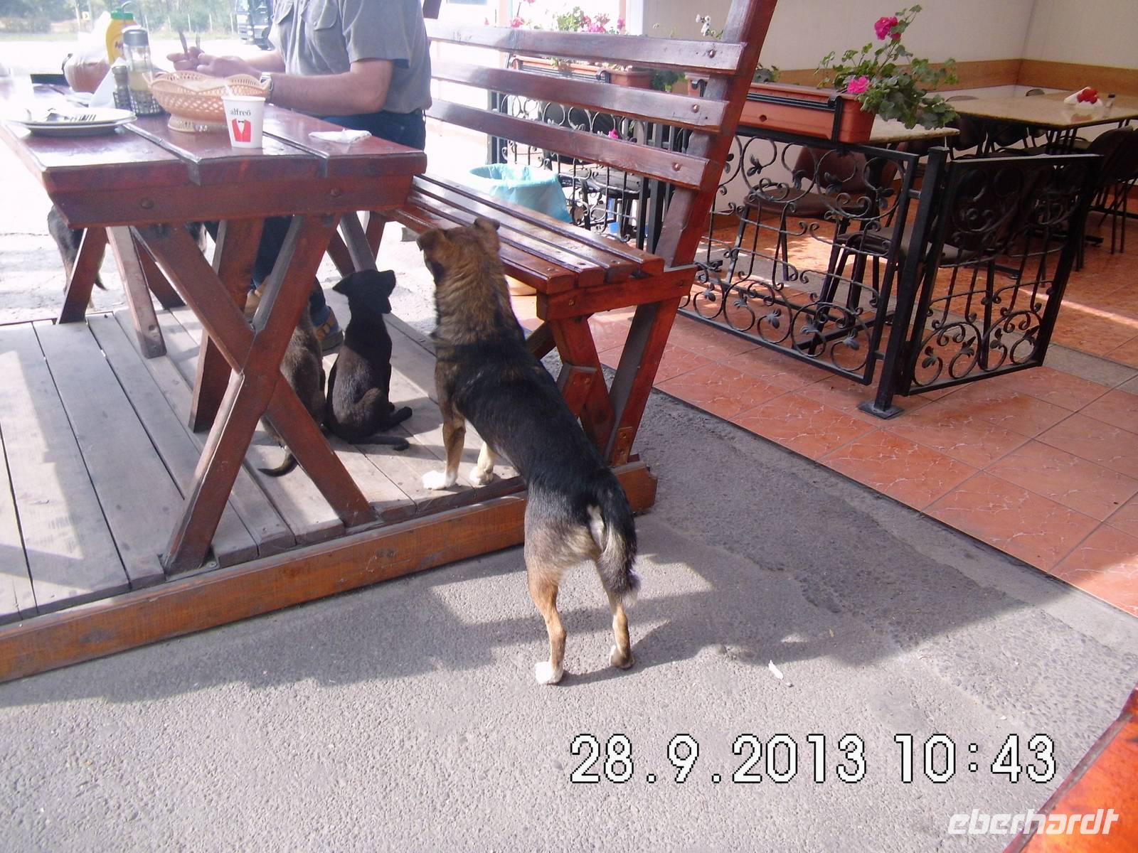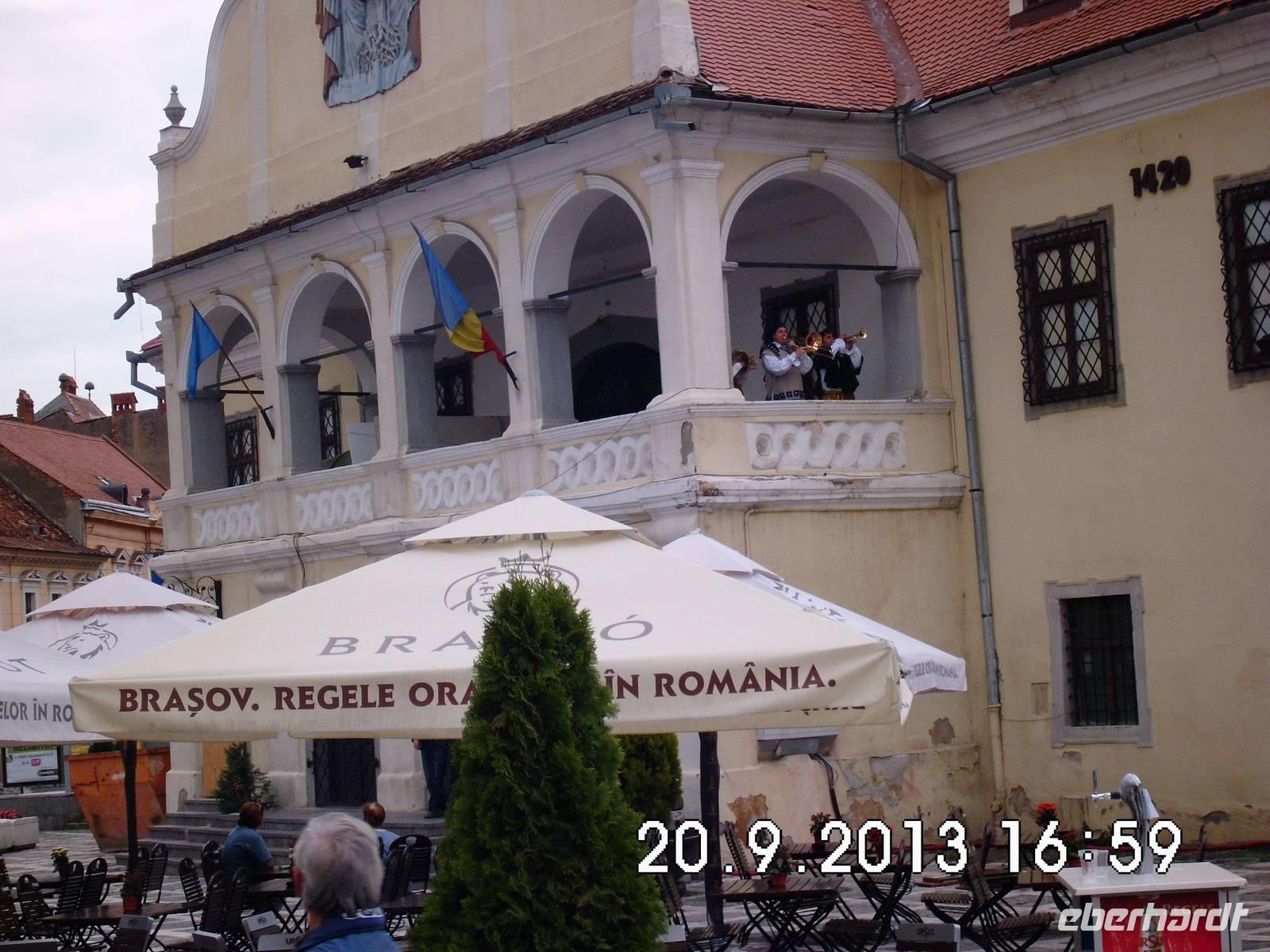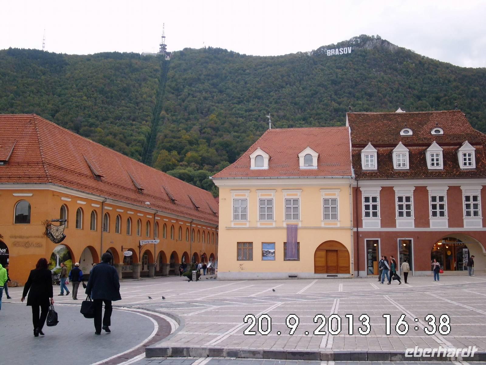 Zeit zum Mittagessen: Wir fahren nach Poiana Brasov, einem Luftkurort undWintersportzentrum in den Karpaten südwestlich von Brasov und nehmen hier ein von Buci vorbestelltes Mahl ein, nicht jedermanns Sache, wie sich später herausstellt. Auf dem Weg hinunter nach Brasov haben wir einen herrlichen Ausblick auf die Stadt und sehen auch die schwarze Kirche, die wir gleich besichtigen werden.