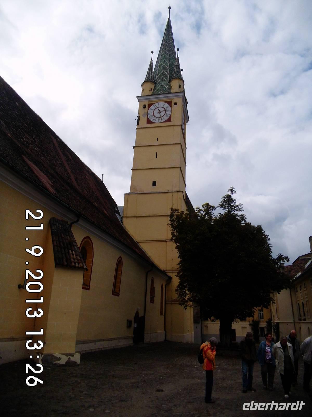 Auf unserem Weg nach Medias passieren wir Fogarasch und besichtigen die Burganlage sowie das neu eröffnete historische Museum. Weiter auf der Straße nach Medias liegt der geografische Mittelpunkt Rumäniens. Wir halten für einen Fotostopp an. In Medias erhalten wir eine Einführung in die Geschichte und Architektur der Margarethenkirche. Seit der Reformation ist die Kirche evangelisch.830 Deutsche leben noch hier und der Pfarrer ist für mehrere Gemeinden zuständig.