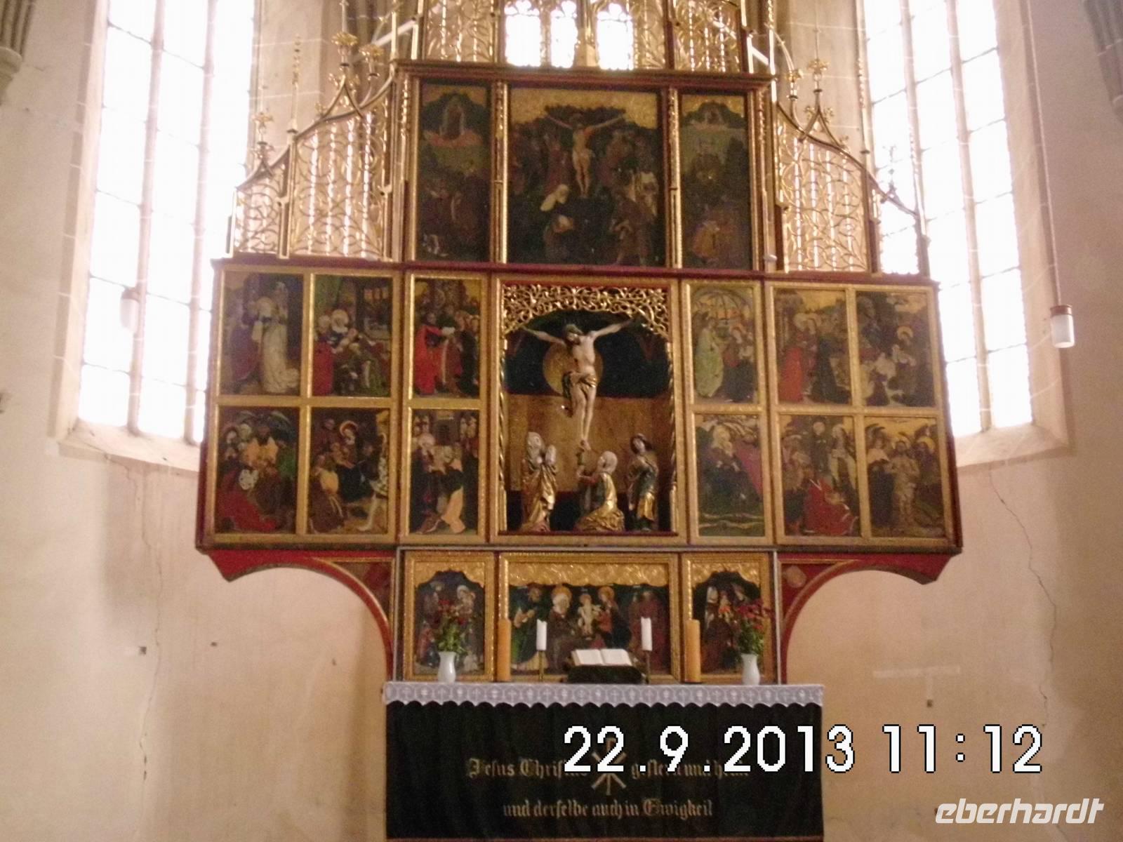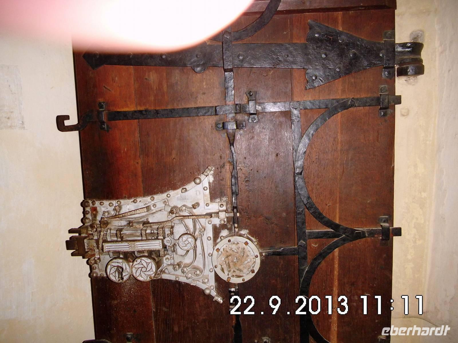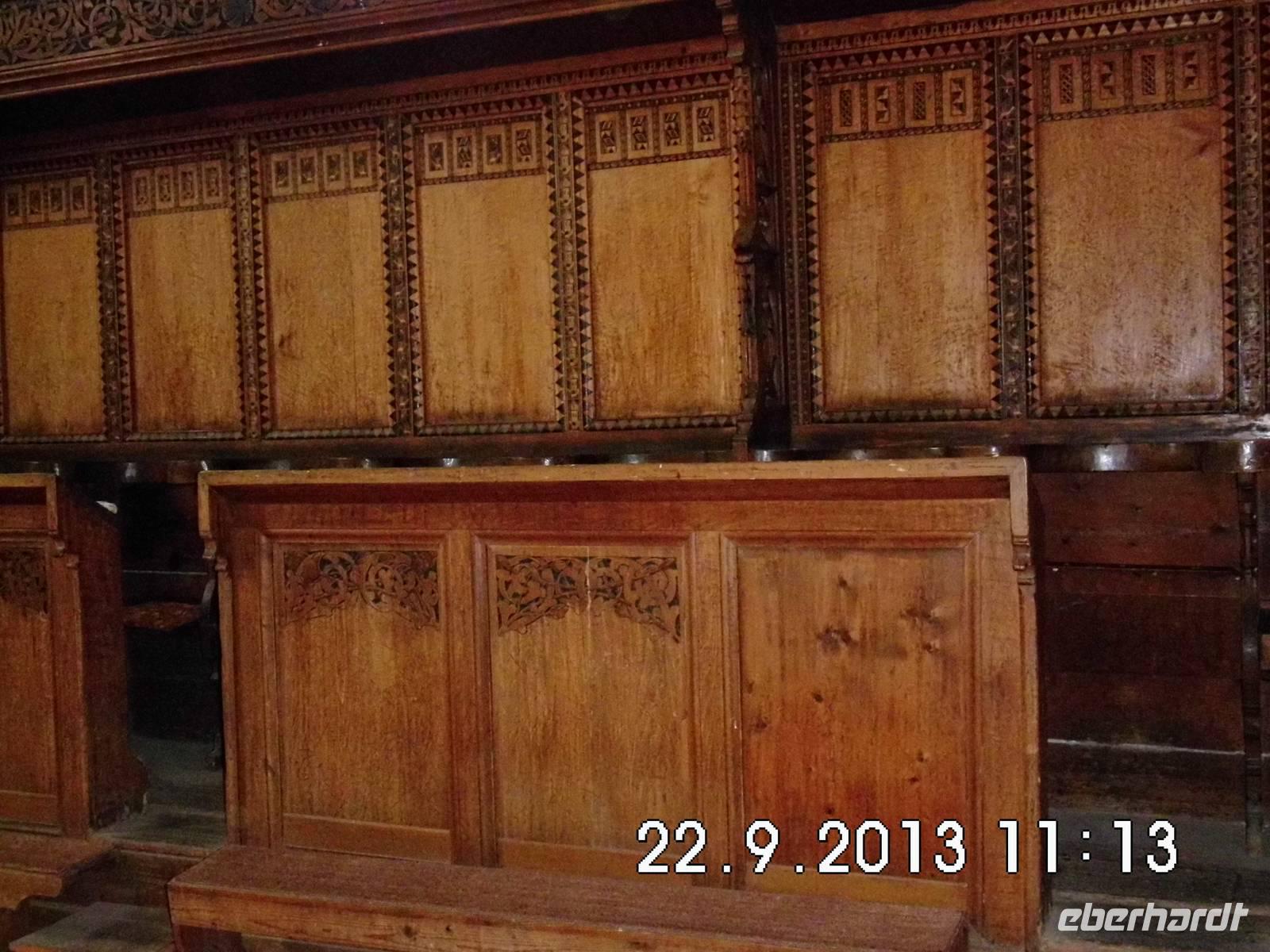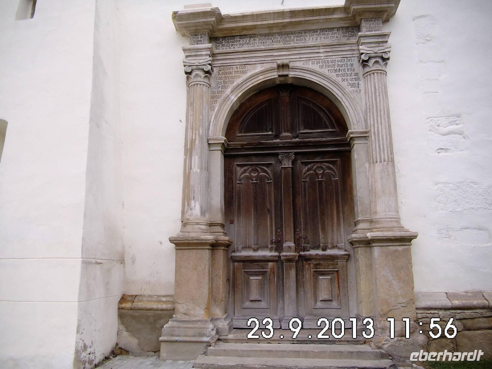 Nach einem Punsch machen wir uns wieder auf den Weg zurück und fahren mit dem Bus weiter nach Biertan. Das malerische, 9 km abseits der Landstraße Medias-Schäßburg gelegene Dorf ist eine der ältesten Siedlungen Siebenbürgens. Die auf einem Hügel über dem Dorf thronende Kirchenburg ist UNESCO-Weltkulturerbe. Der riesige Flügelaltar der Kirche mit 28 Bildern ist ein Meisterwerk. Bemerkenswert ist auch das Renaissancegestühl im Chor und die Sakristeitür. Sie besitzt ein Schloss mit 13 Riegeln, das auf der Weltausstellung in Paris 1900 einen Preis erhielt. Zu besichtigen ist auch ein Ehegefängnis (üblich in mehreren Wehrkirchen). Hier wurden verstrittene Eheleute für 2 Wochen zusammengesperrt und waren so aufeinander angewiesen, dass sie nach dieser Zeit meist wieder friedlich miteinander lebten. Vielleicht könnte man diese Methode in unsere moderne Zeit transferieren?