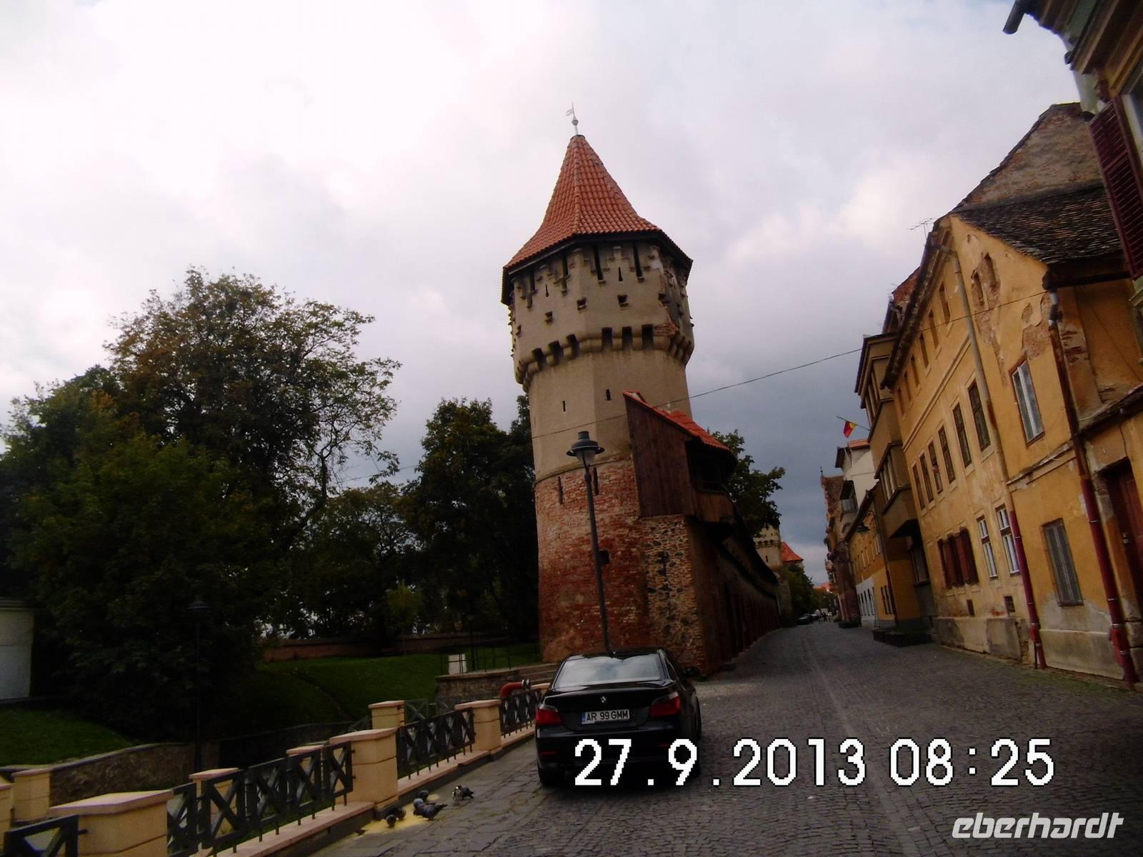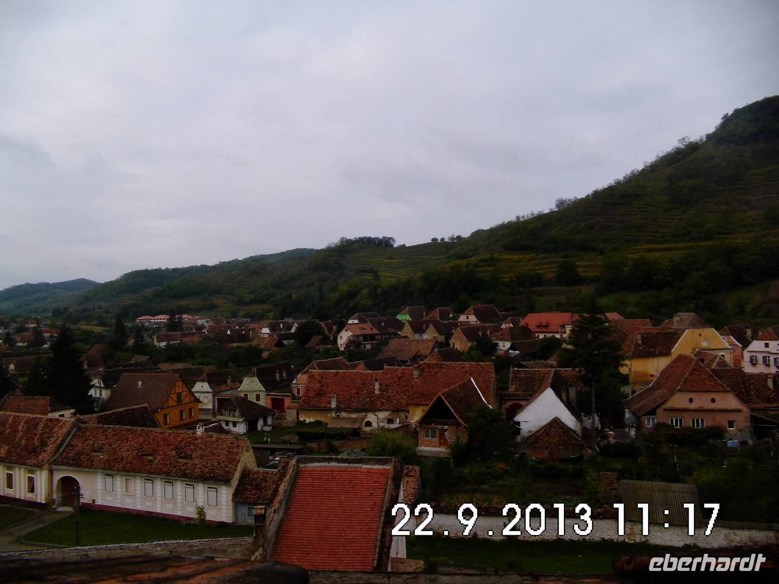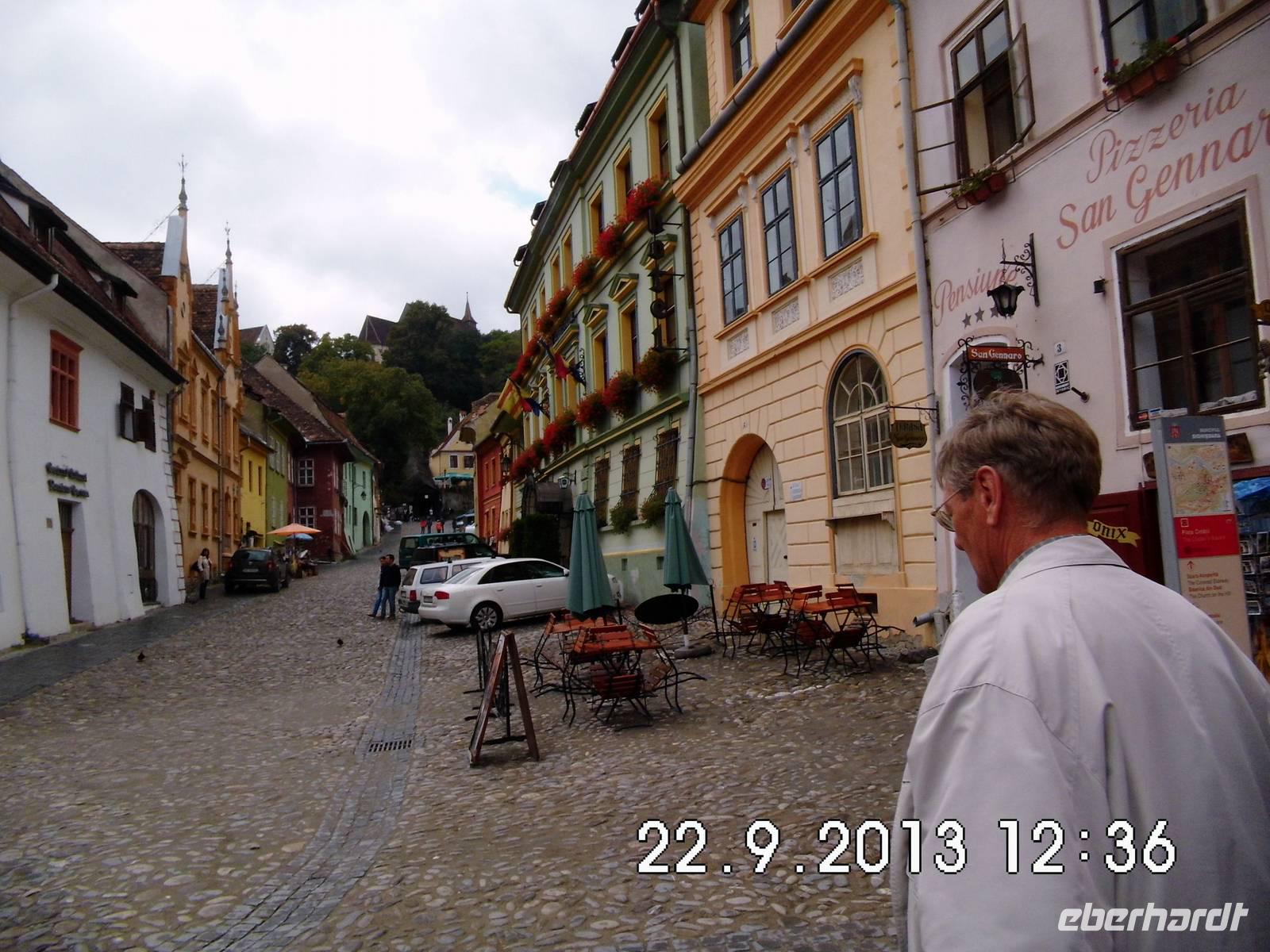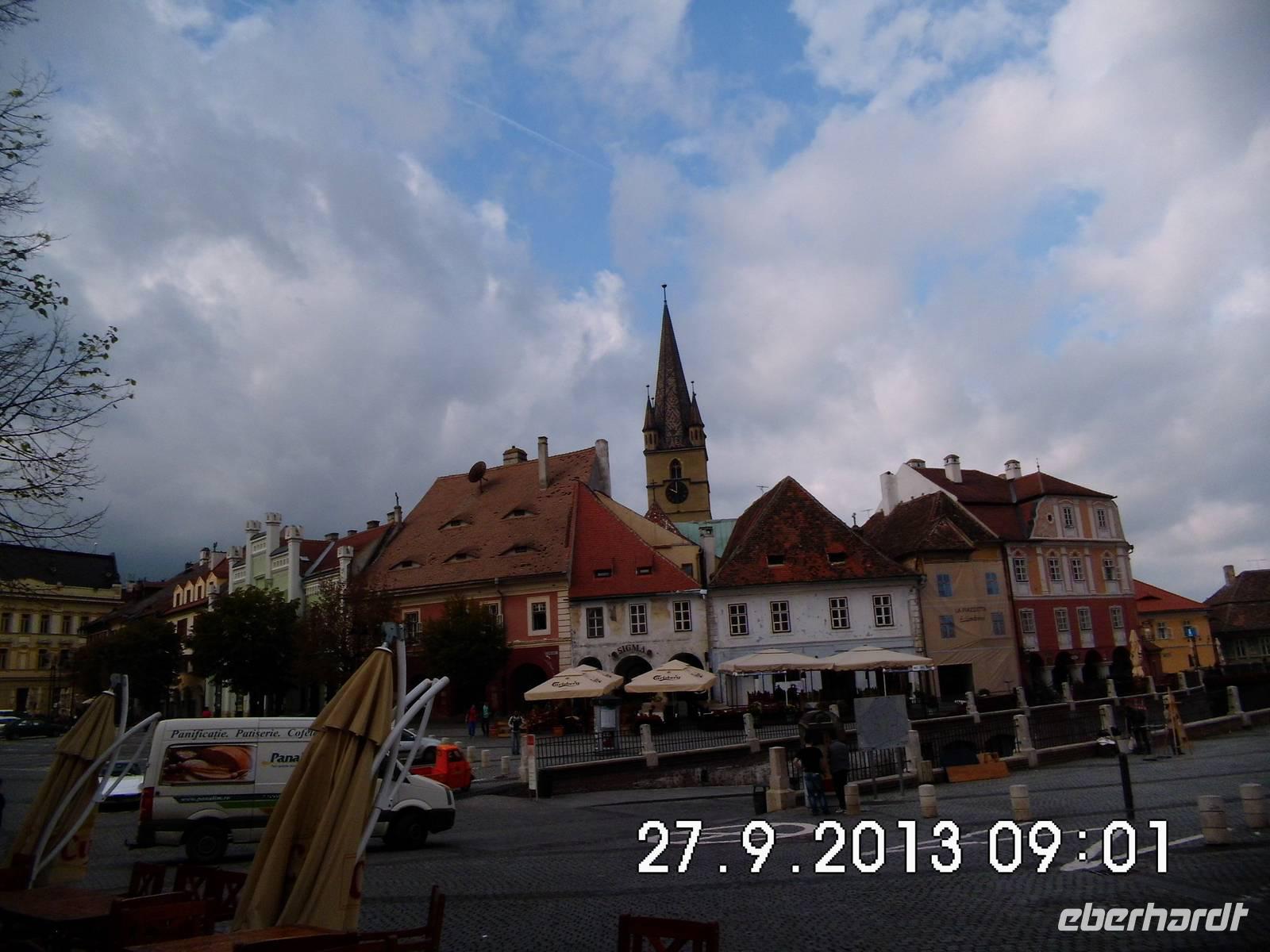 Sibiu ist die älteste Siedlung der Siebenbürger Sachsen. Am Schnittpunkt zweier Handelsstrassen in der Nähe eines wichtigen Passes über die Karpaten gelegen, gab es 1376 bereits 19 verschiedene Zünfte, deren Erzeugnisse nach Westeuropa und bis in den Orient exportiert wurden. 1692 wurde Sibiu Hauptstadt Siebenbürgens . Seit Sibiu 2007 europäische Kulturhauptstadt war, ist die Stadt am Rand der Südkarpaten in aller Munde: malerische Gassen, Treppengassen und eine belebte Fußgängerzone. Typisch die wie Augen in den Dächern sitzenden Gauben. Unser Reiseleiter führt uns durch die Stadt, wo gerade Oktoberfest gefeiert wird. Auf der Lügenbrücke erzählt er uns absichtlicheine Unwahrheit, die natürlich keiner bemerkt und bekommt prompt eine rote Nase. Wir gehen nochüber einen Wochenmarkt, kaufen Käse und Honig und zerstreuen uns dann bis zum frühen Abend.