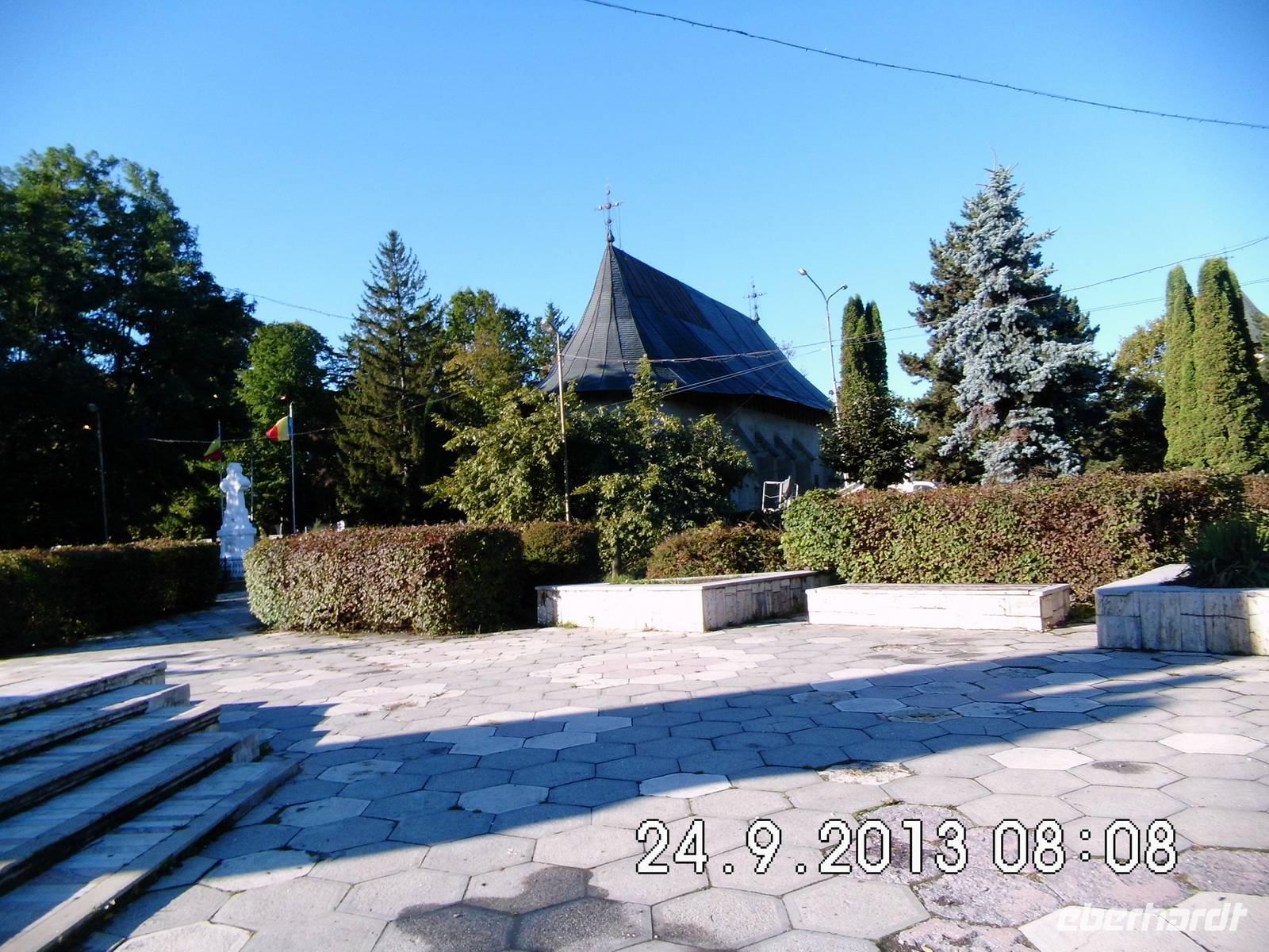Eine längere Busfahrt liegt vor uns. Auf zu den Moldauklöstern!.Unterwegs halten wir in Targu Mures, schauen uns den Kulturpalast von außen und die orthodoxe Kirche von innen an, machen Pause in Bistritz und überqueren dann die Karpaten. Wegen des schlechten Wetters sehen wir von der herrlichen Natur fast nichts. Sie soll sich uns auf dem Rückweg erschließen. Kurz vor Radauti, unserem heutige Etappenziel, besuchen wir noch die am Weg liegende Töpferei für schwarze Keramik. Keiner kann widerstehen und alle kaufen etwas. Unser Hotel „The Geralds" wartet mit einem leckeren Buffet auf uns.
