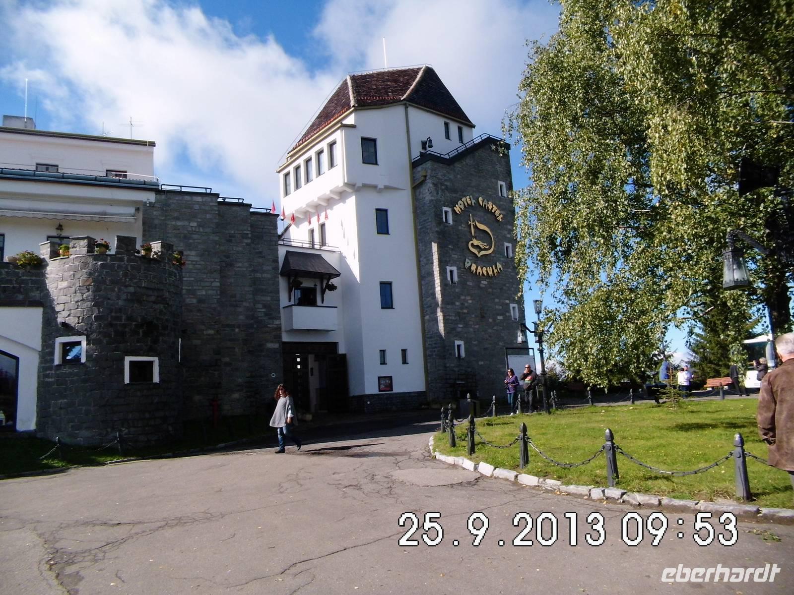 Nach einem zeitigen Frühstück machen wir uns auf den Weg zurück über die Karpaten über 5 Pässe. Heute wird ein langer Tag im Bus und wir erhalten vom Hotel ein Lunchpaket. Es ist kühl, aber klar und so können wir die herrliche Landschaft genießen. Am Hotel Dracula machen wir eine Pause. Das Hotel wurde in den 80iger Jahren auf Betreiben von Tourismusvereinen gebaut, die eine Bauweise als Burg forderten. Mit Dracula hat es natürlich nichts zu tun, aber der Roman des Iren Bram Stoker handelt teilweise in dieser Gegend am Borgo-Pass. Das 3-Steren Hotel liegt auf 1116 m Höhe und man hat einen Panoramablick über die Bargaului Berge.