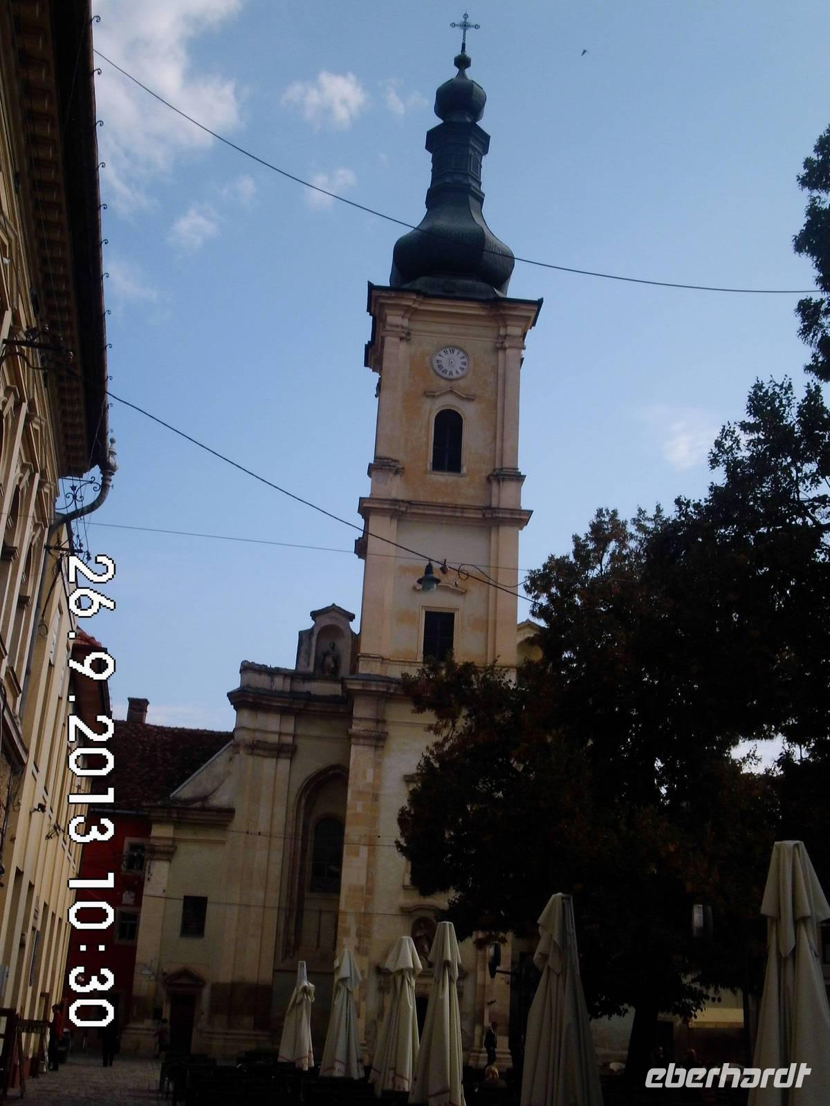 Die Maria geweihte Kirche entstand 1385-1477 im spätgotischen Stil. Unser Reiseleiter Buci macht noch einen Stadtrundgang mit uns durch das Zentrum und entlässt uns dann in die Freizeit.Wir bummelnd die Straße entlang, trinken Kaffee und treffen uns dann alle 18,00 Uhr beim Rathaus, um den Einmarsch der Stadtgarde mit anschließendem Turmblasen zu erleben.