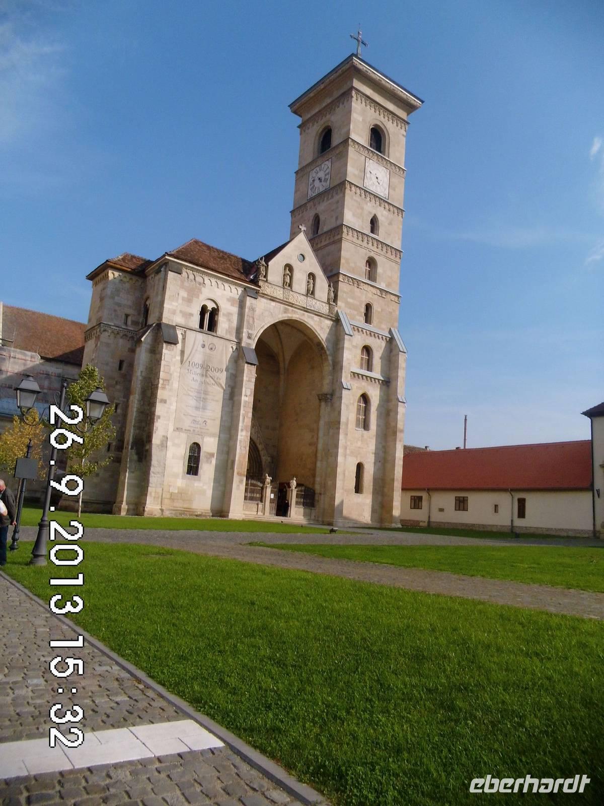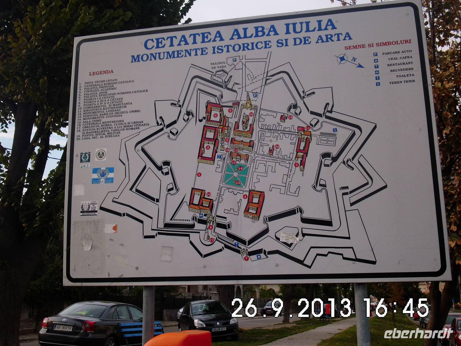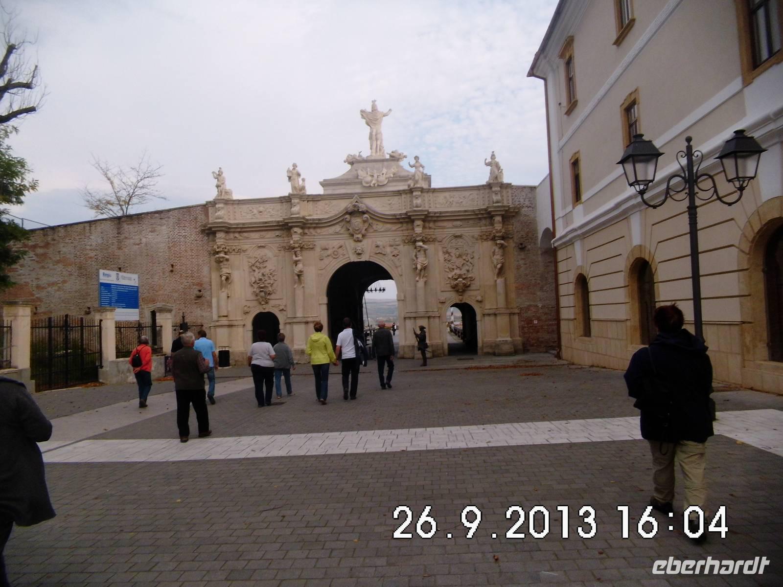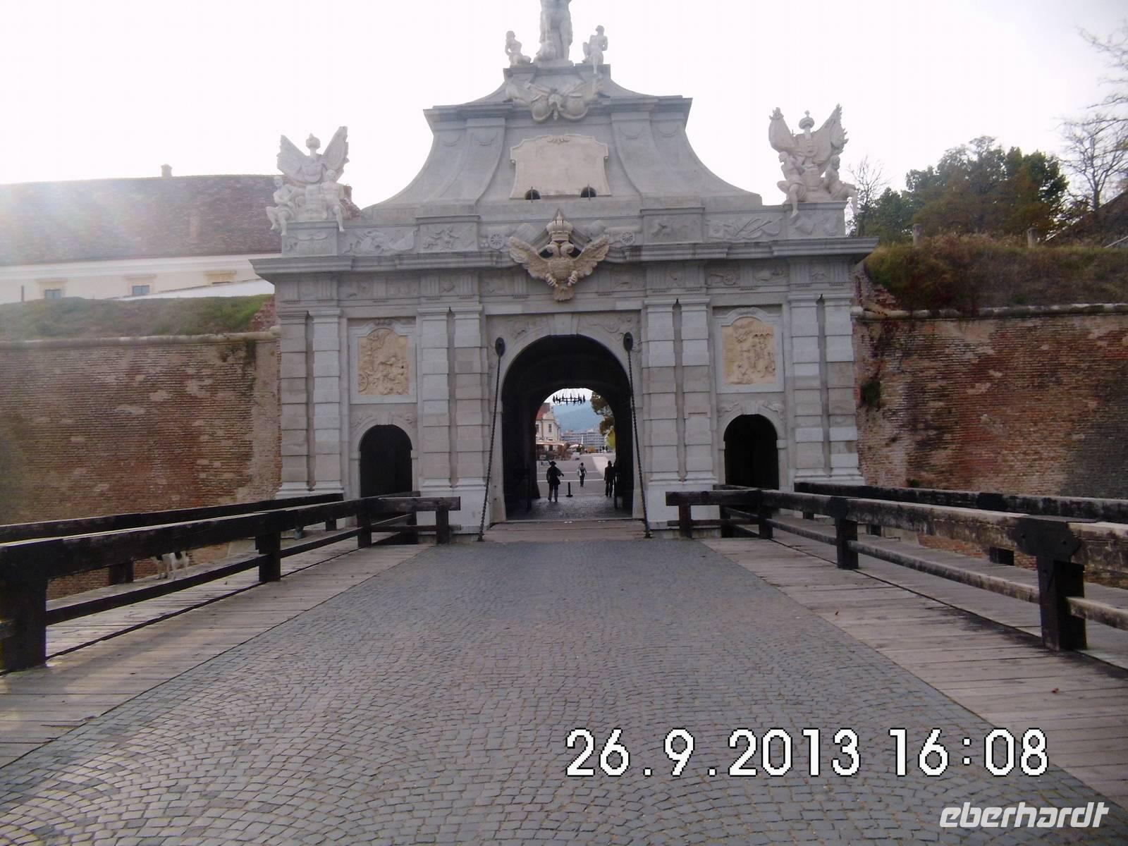 Am späten Nachmittag steht dann noch Alba Iulia auf dem Programm. Alba Iulia ist eine für Rumänien sehr alte Stadt mit einer 2000-jährigen Geschichte. Sie wird oft als Wiege Rumäniens bezeichnet, denn 1599 wurde die Stadt unter Mihai Viteazul Hauptstadt der erstmals vereinigten Fürstentümer Walachei, Moldau und Siebenbürgen und am 1.Dezember 1918 proklamierte hier die Nationalversammlung den Anschluss Siebenbürgens an Rumänien- dieser Tag ist bis heute Nationalfeiertag .Vier Tore, darunter zwei Triumphbögen, sicherten die sternförmige Festung und die darin gelegene Garnisonsstadt. Die Hauptachse wird von einigen Prachtbauten, der St.Michaels-Kathedrale und der Wiedervereinigungs-Kathedrale gesäumt. Wir verlassen die Festung durch die Poarta Principala im Osten und gönnen uns noch in dem wunderschön restauriertem, zur Gaststätte ausgebautem Gewölbe ein Bier bzw. Kaffee.