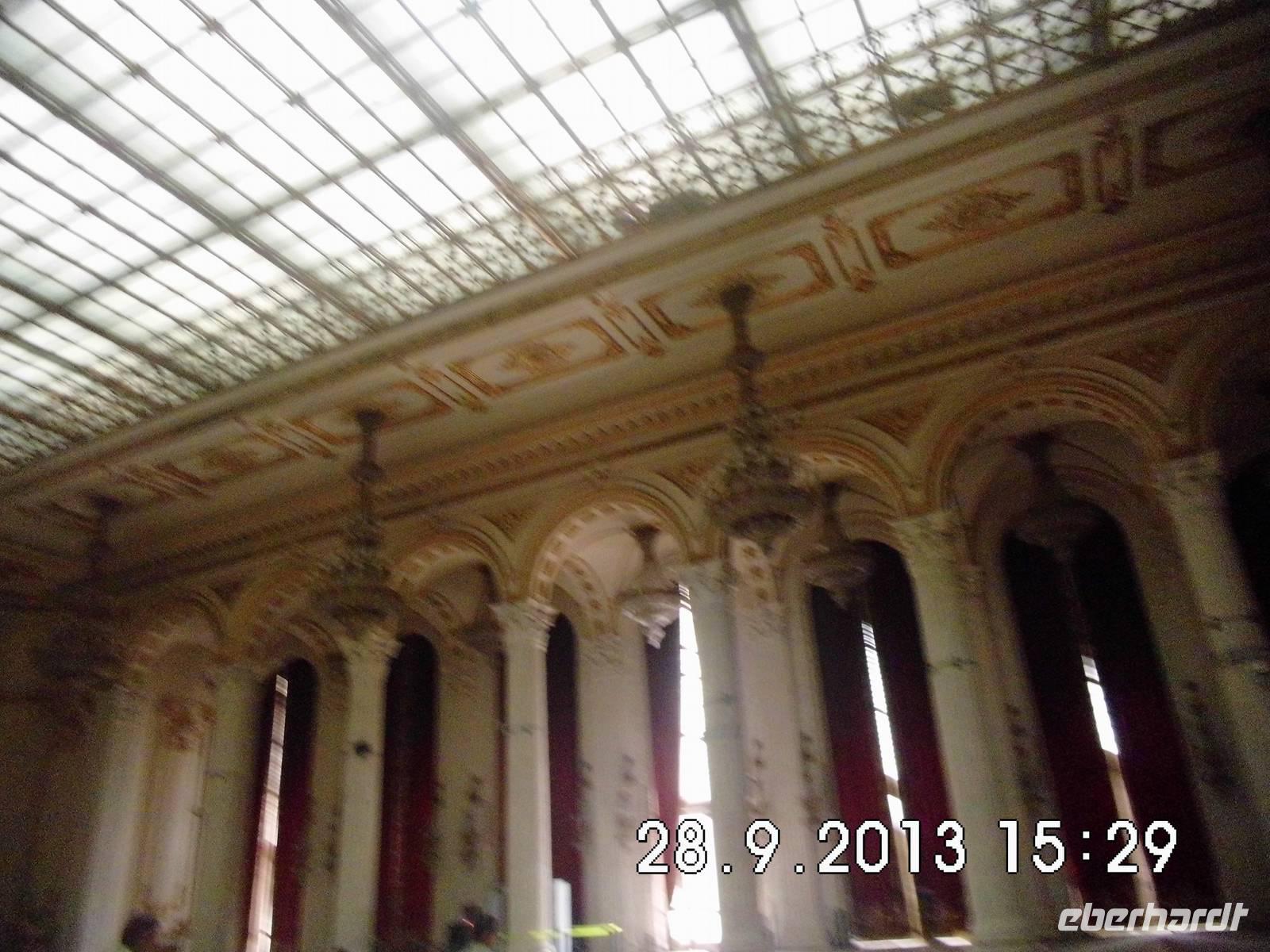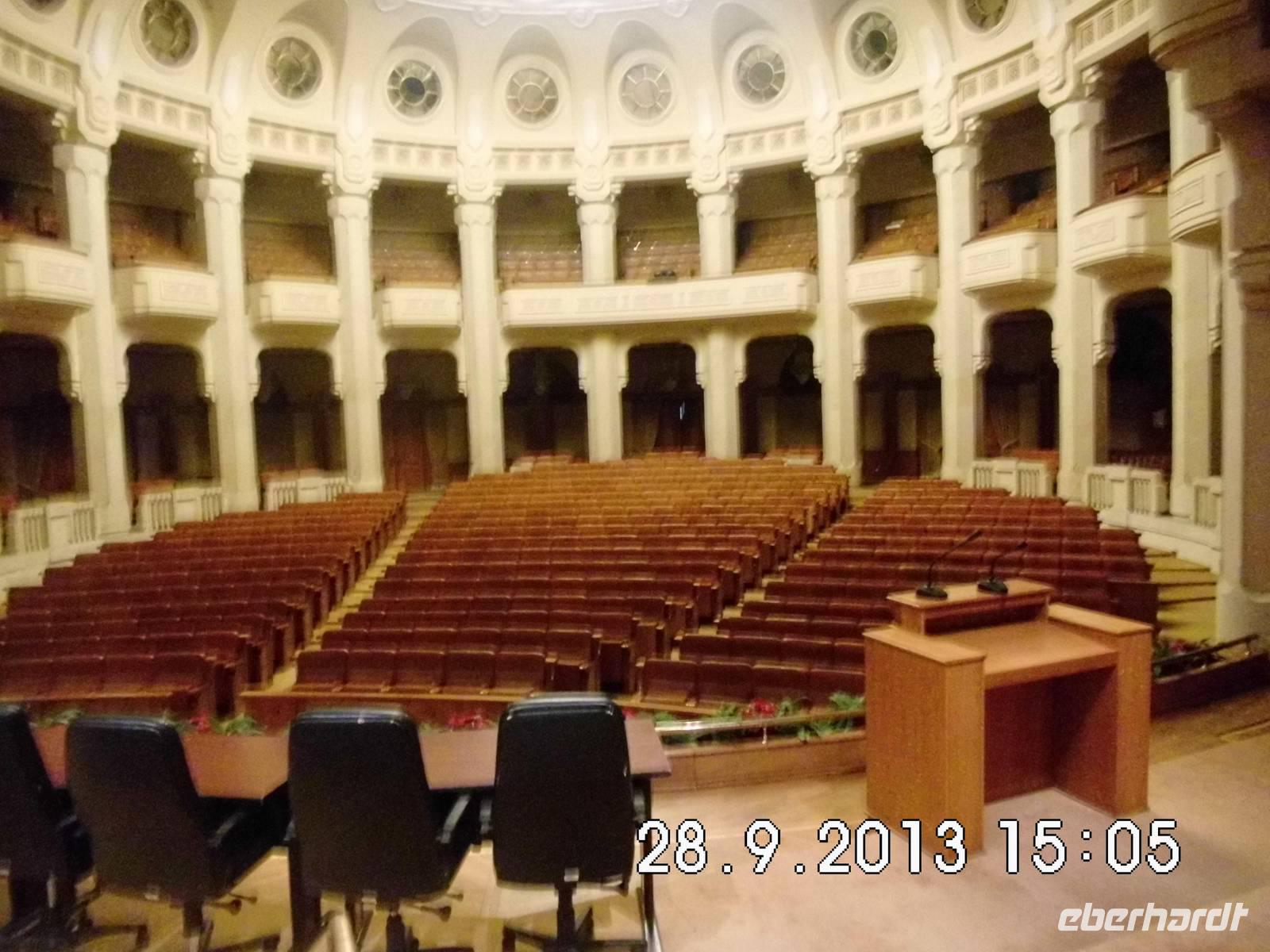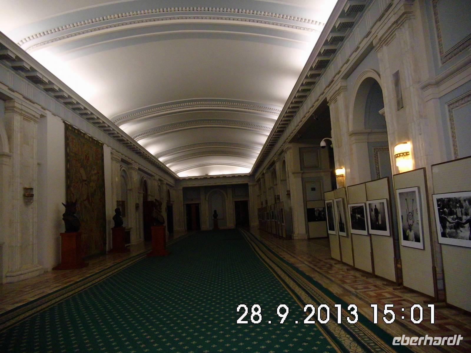 Am frühen Nachmittag kommen wir in Bukarest an und haben noch einen wichtigen Termin, die Besichtigung des Parlaments. Mit einer neuen funktionalen und majestätischen Stadt wollte Ceausescu sich selbst ein Denkmal setzen. So sollte durch die Anordnung der Gebäude aus der Luft sein Name lesbar sein. Fertiggestellt wurden der gigantische Koloss des Parlamentspalastes und der „Boulevard des Sieges des Sozialismus", doch bevor der Diktator endgültig in seinen Palast einziehen konnte, wurde er gestürzt. Wir haben in einer Stunde Besichtigung vielleicht nur 5 % der Räume gesehen - Dimensionen und Materialien der Superlative.
