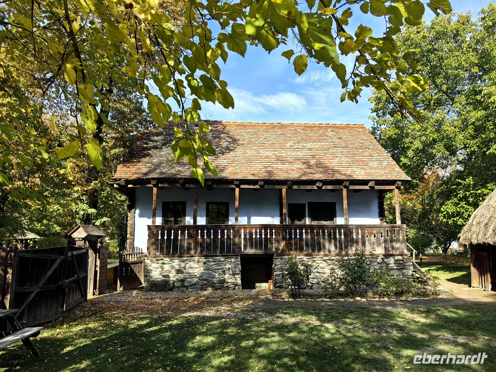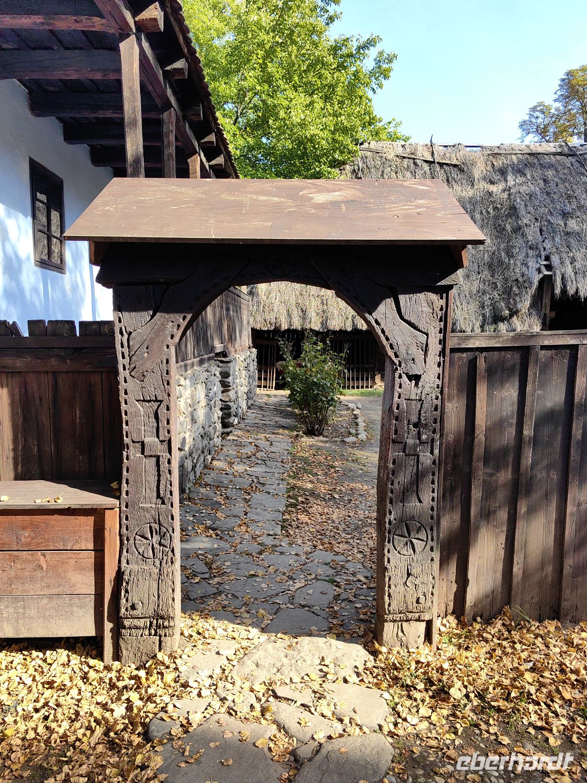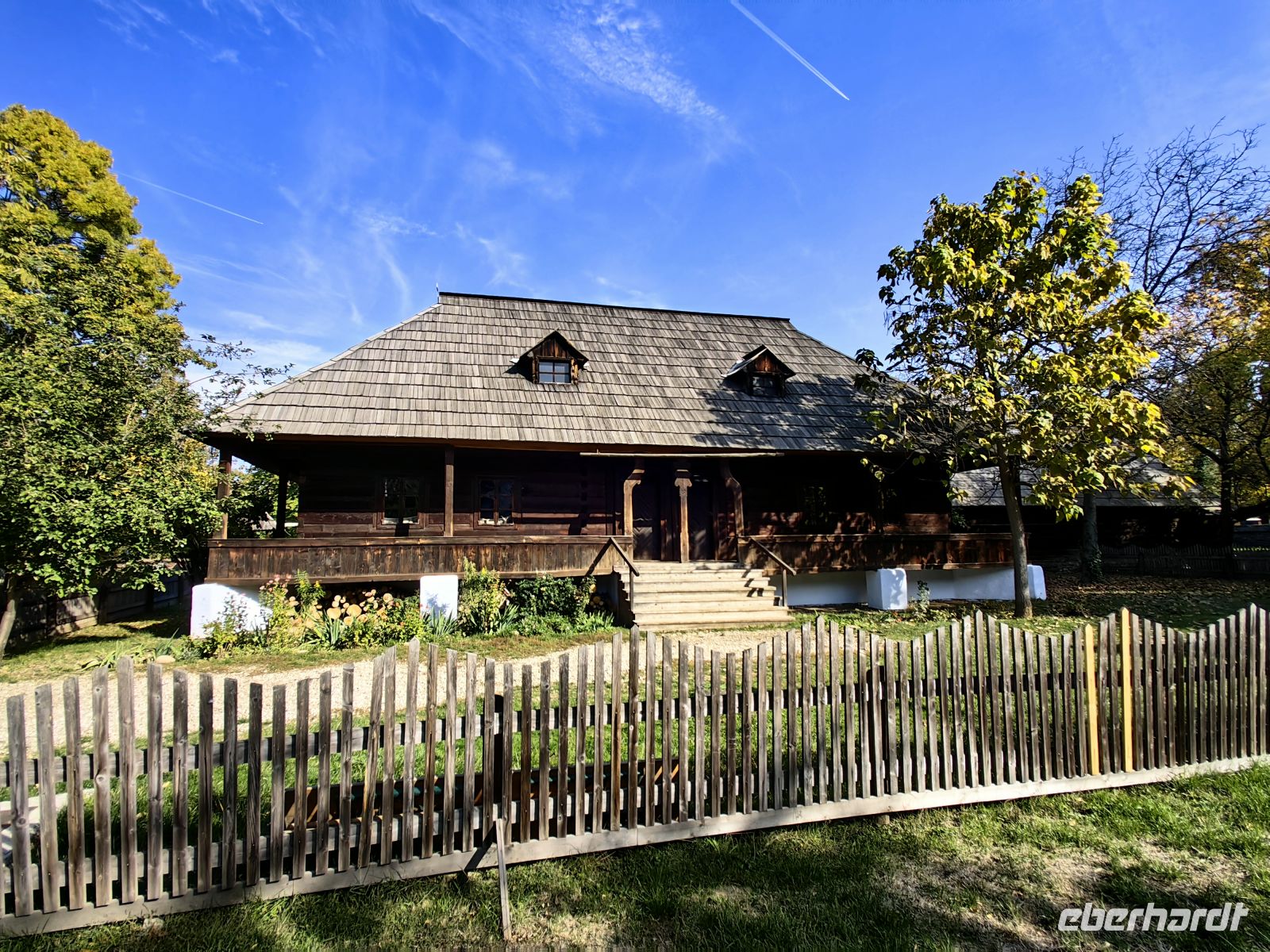 Die Hauptstadt Rumäniens erwartet uns mit goldenem Herbstlicht und bevor wir im Hotel einchecken, statten wir dem Dorfmuseum Dimitrie Gusti einen Besuch ab. Mitten in der Stadt gelegen, hat man hier alte Bauernhäuser, Kirchen, Windmühlen und Ställe aus allen Gegenden Rumäniens gesammelt und wieder aufgebaut, um einen Eindruck zu vermitteln, wie das ländliche Leben in Rumänien um die Jahrhundertwende war. Die Häuser sind entweder mit Stroh oder Ried gedeckt, alles ist hübsch bepflanzt und da nicht viel los ist, können wir in aller Ruhe durch das Museum spazieren.