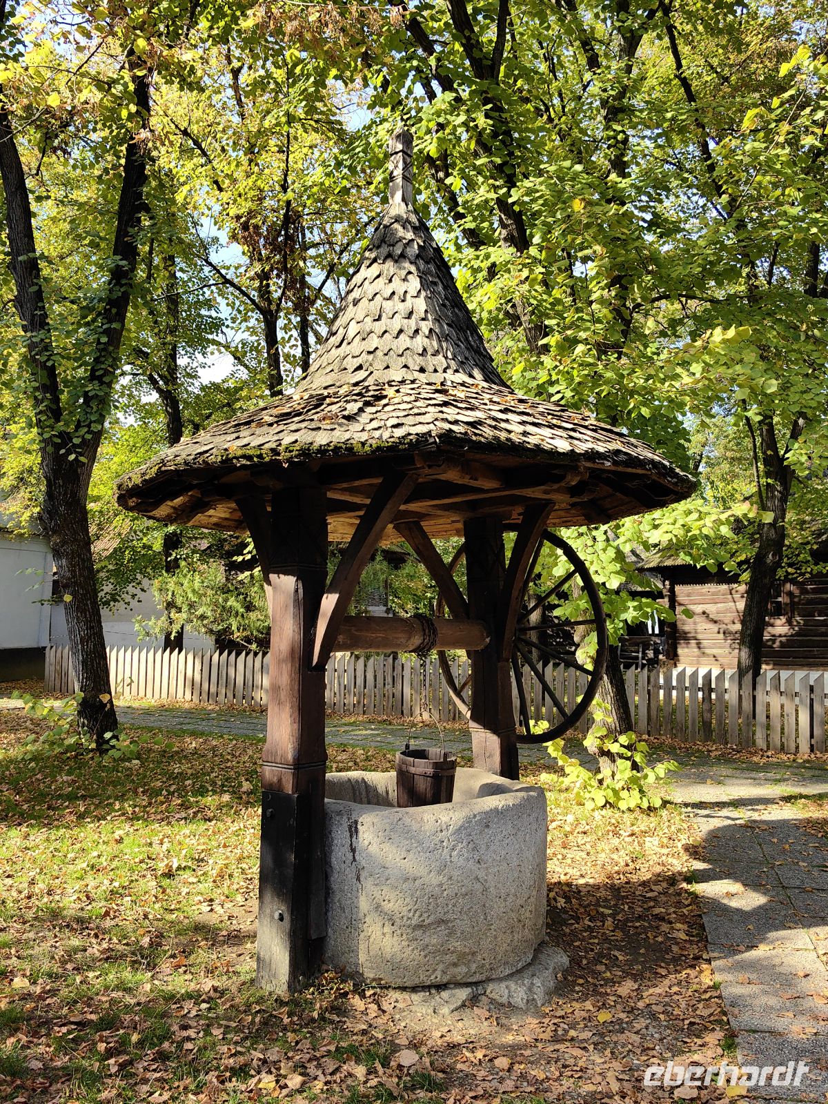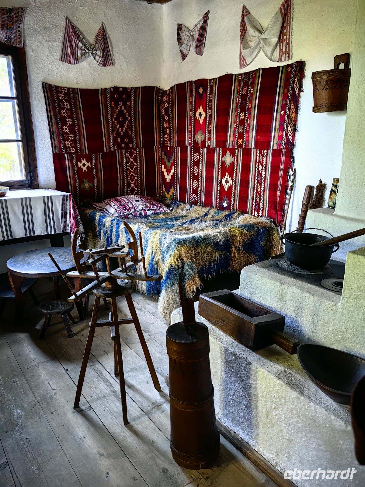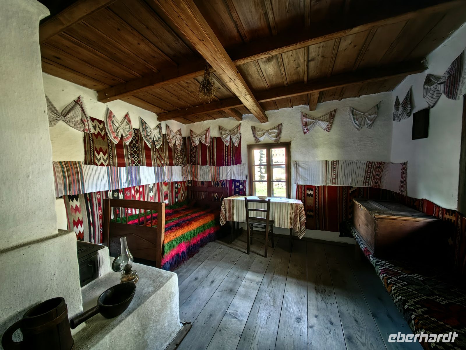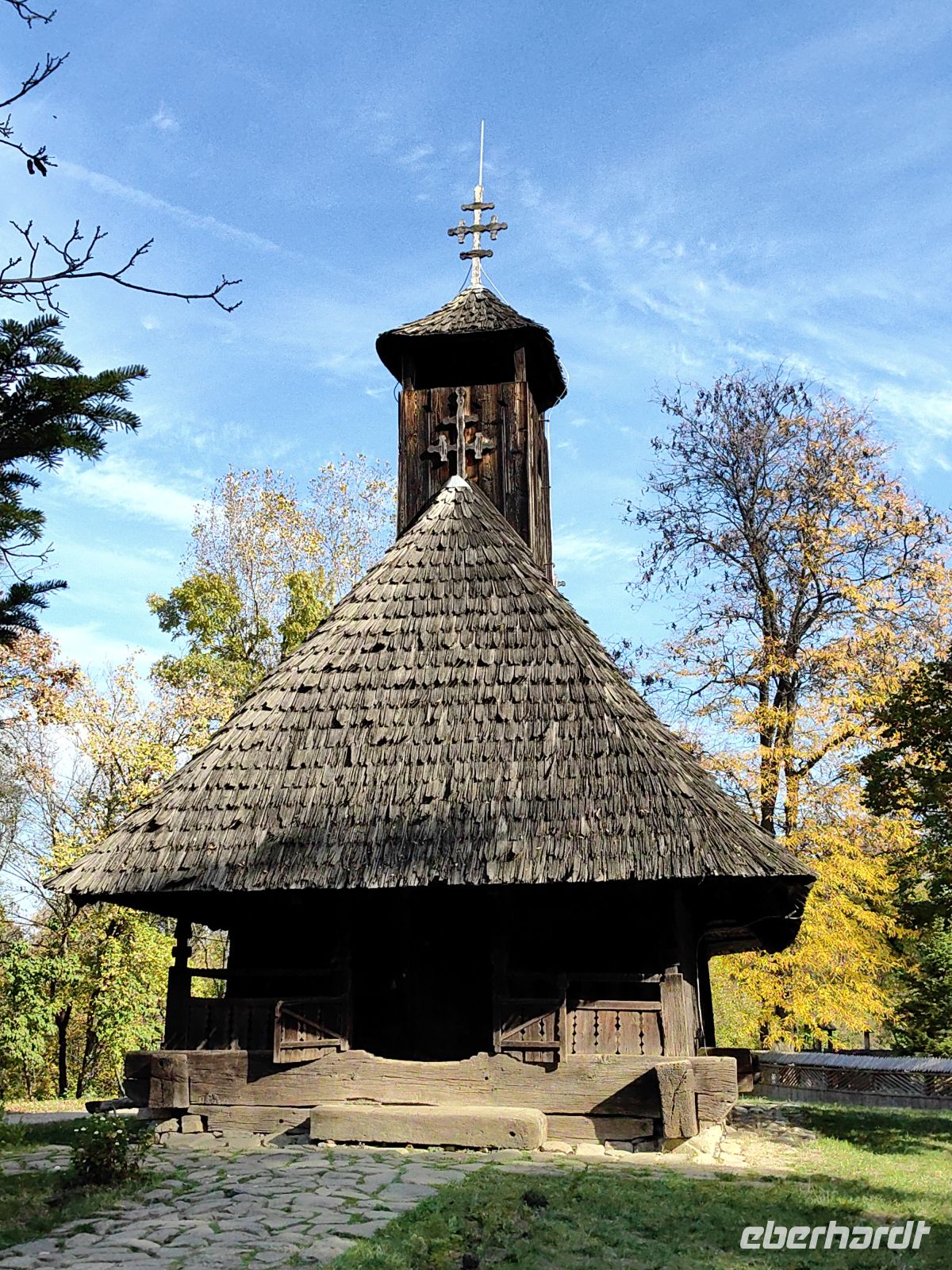 Die Hauptstadt Rumäniens erwartet uns mit goldenem Herbstlicht und bevor wir im Hotel einchecken, statten wir dem Dorfmuseum Dimitrie Gusti einen Besuch ab. Mitten in der Stadt gelegen, hat man hier alte Bauernhäuser, Kirchen, Windmühlen und Ställe aus allen Gegenden Rumäniens gesammelt und wieder aufgebaut, um einen Eindruck zu vermitteln, wie das ländliche Leben in Rumänien um die Jahrhundertwende war. Die Häuser sind entweder mit Stroh oder Ried gedeckt, alles ist hübsch bepflanzt und da nicht viel los ist, können wir in aller Ruhe durch das Museum spazieren.