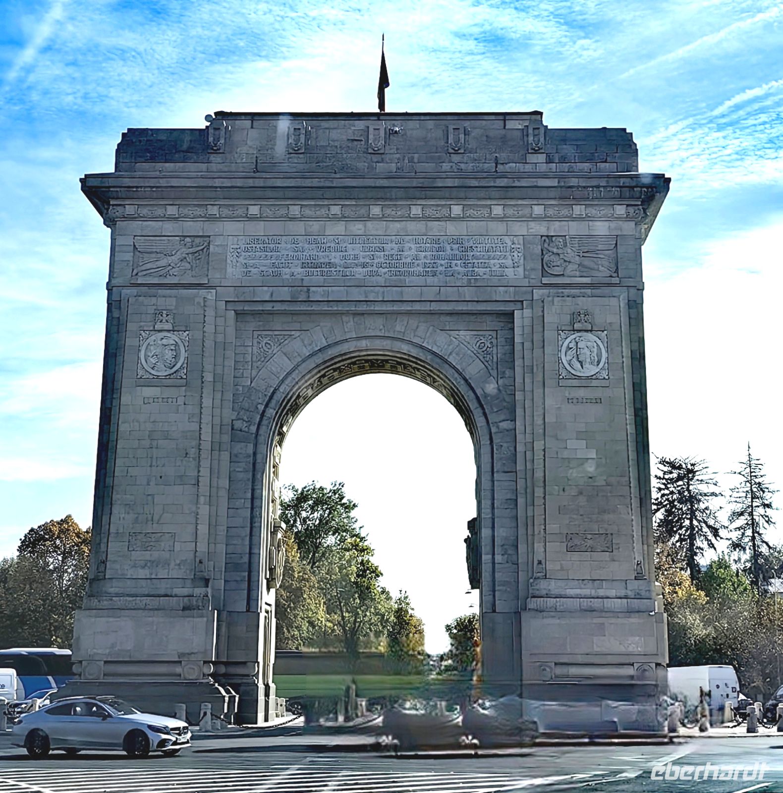 Wir fahren um den Triumphbogen herum, der zu Ehren des Sieges im Ersten Weltkrieg errichtet wurde.
