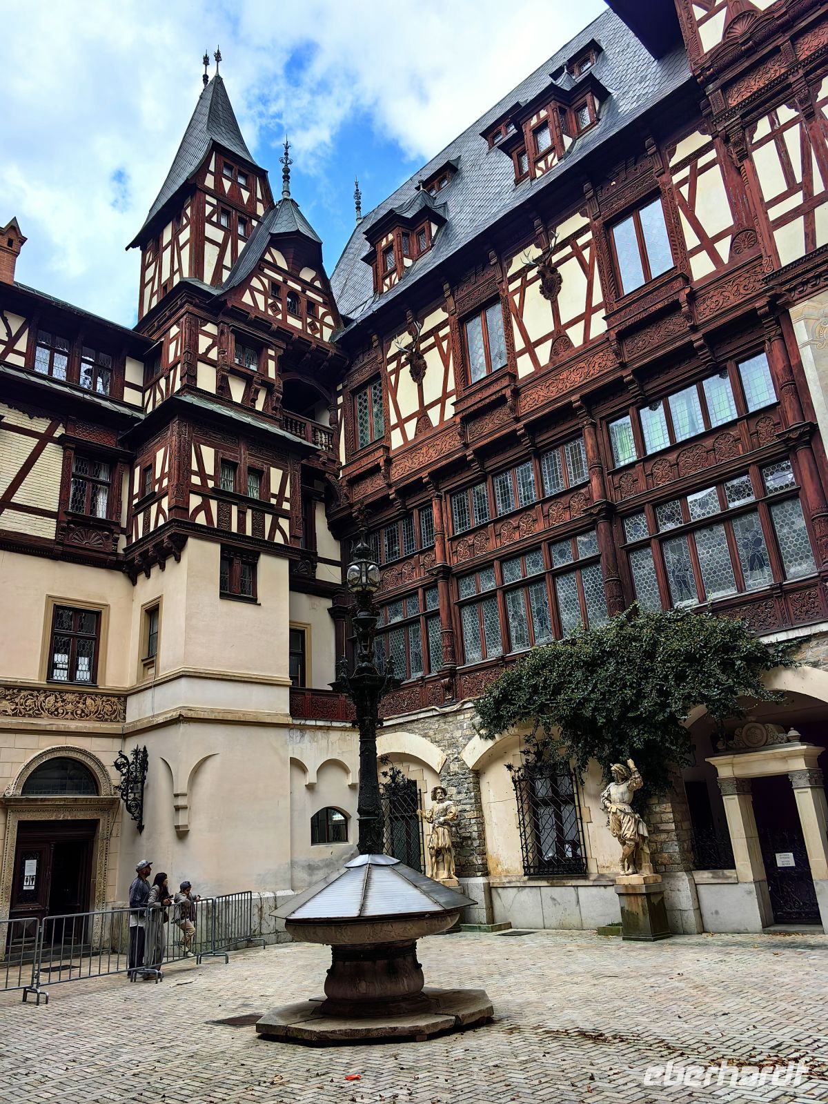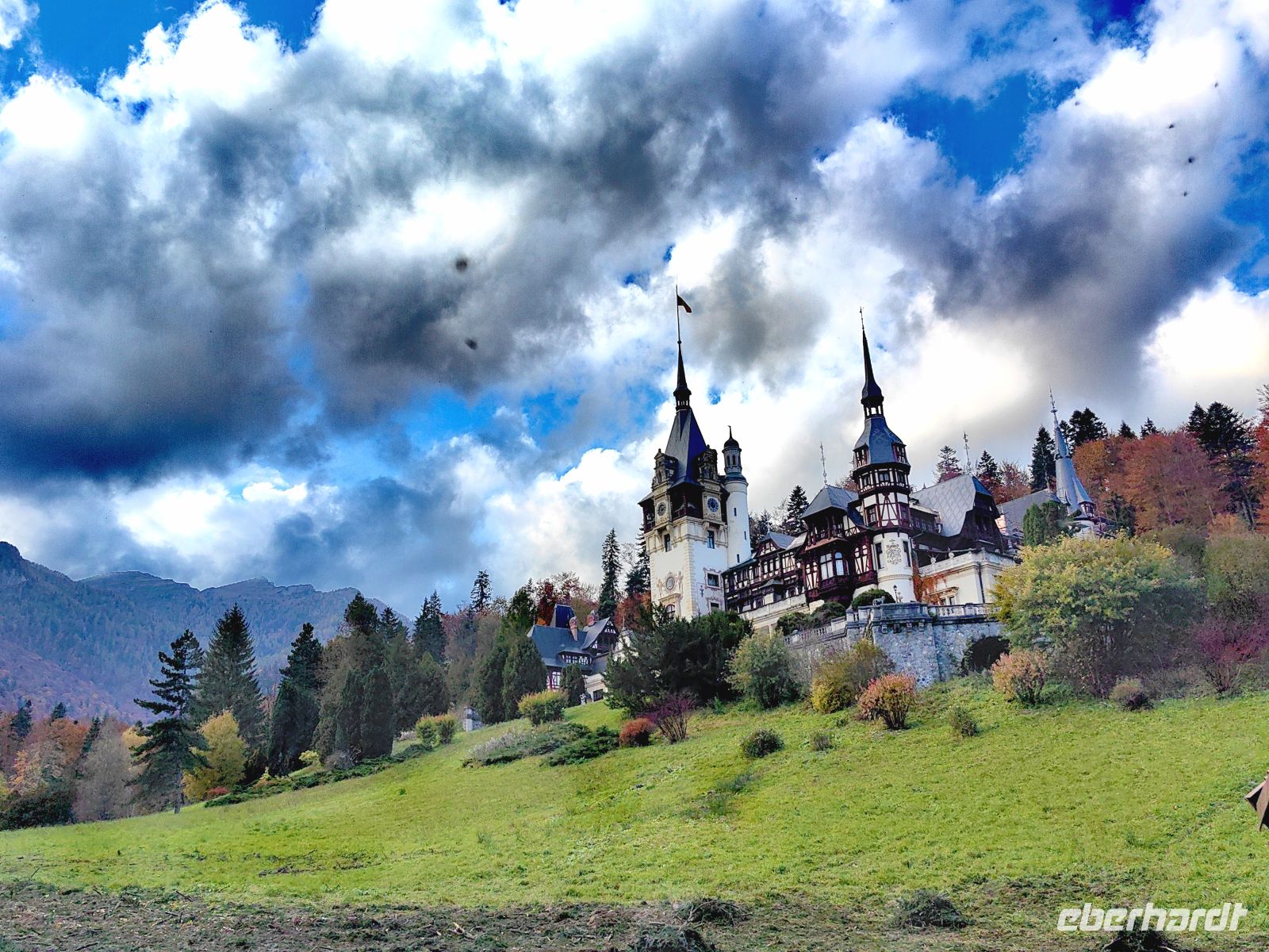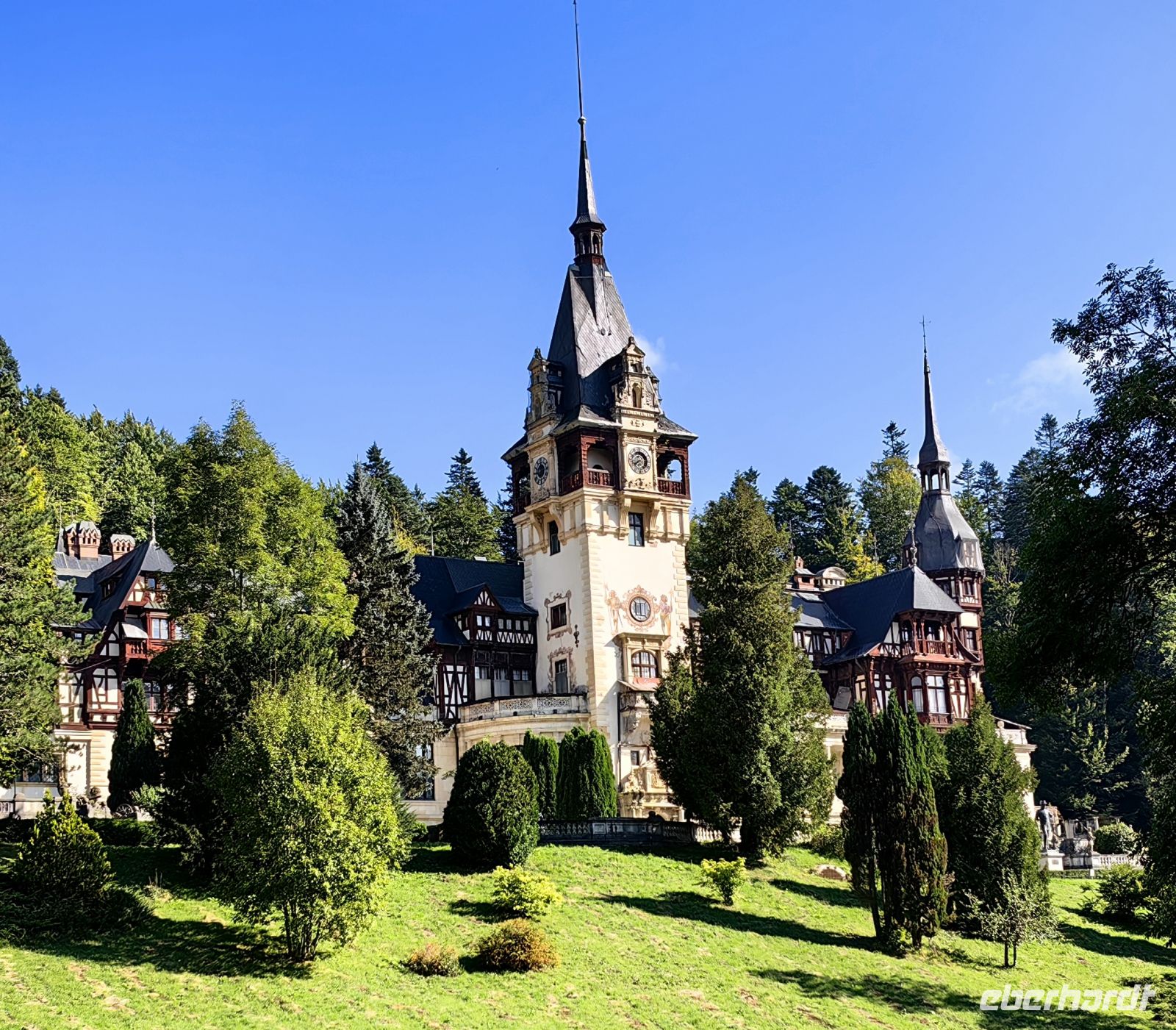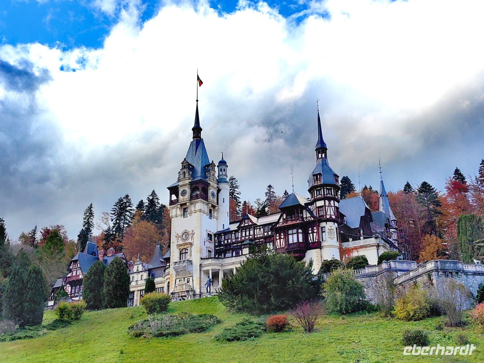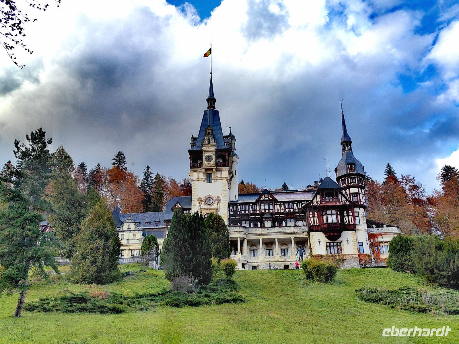 Unser heutiges Ziel ist das berühmte Schloß Peles in der Nähe der Kleinstadt Sinaia. Dieser Besuchermagnet wurde zwischen 1873 und 1883 unter der Schirmherrschaft von König Carol I. erbaut, dem ersten König Rumäniens. Nach der Entstehung dieses prunkvollen Schlosses wurden in der Umgebung die ersten Villen errichtet und sogar eine Eisenbahnstrecke gebaut, der Halt in Sinaia gehörte zur Route des Orient-Express. Der König hatte bis 1914 hier in den Bergen seine Sommerresidenz.