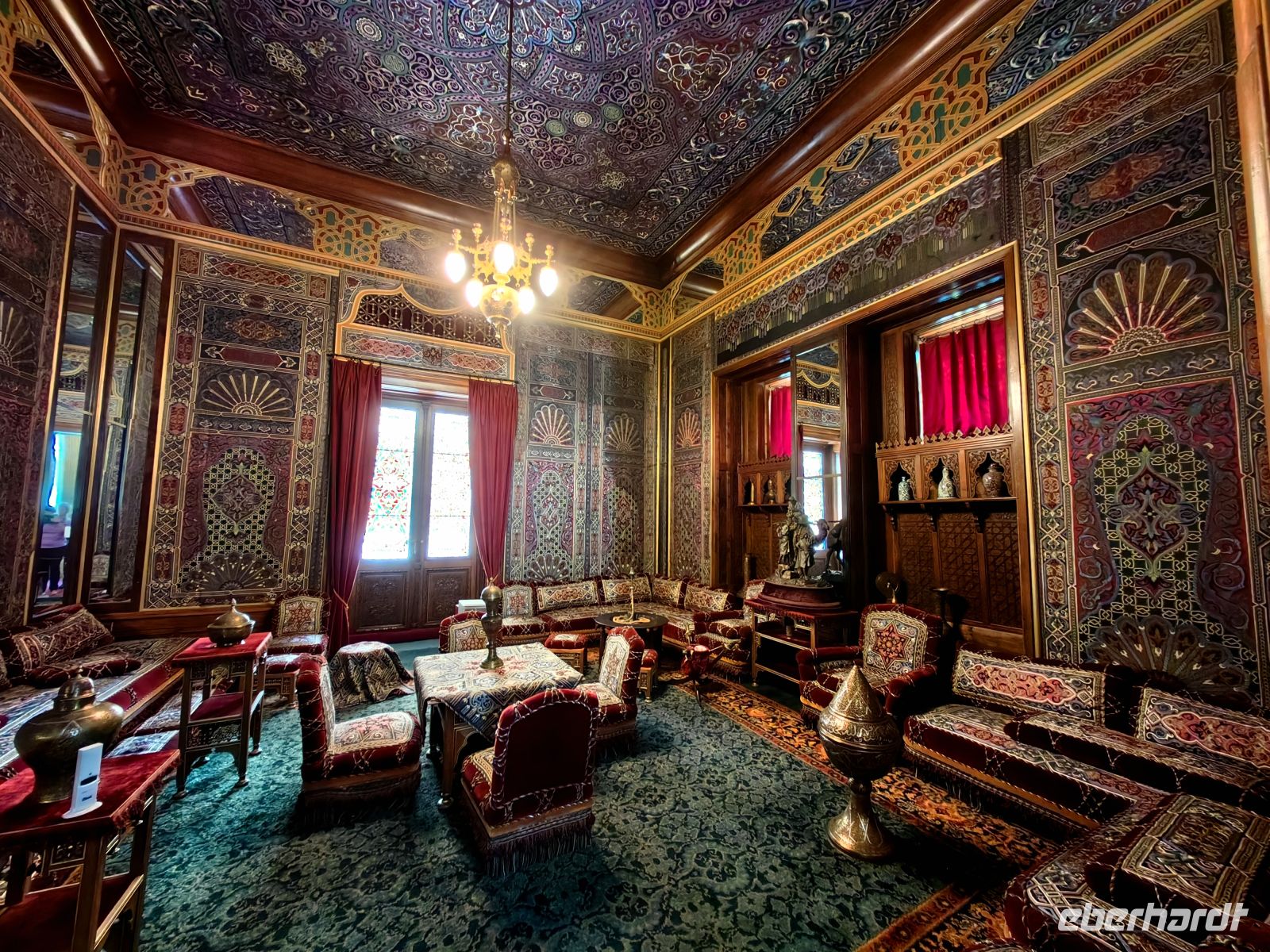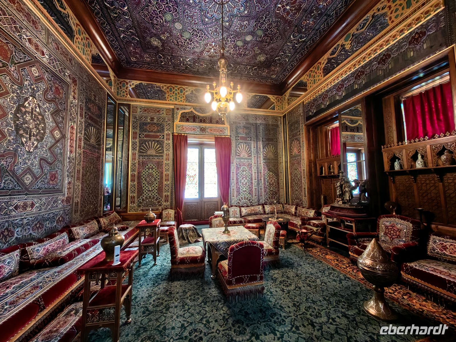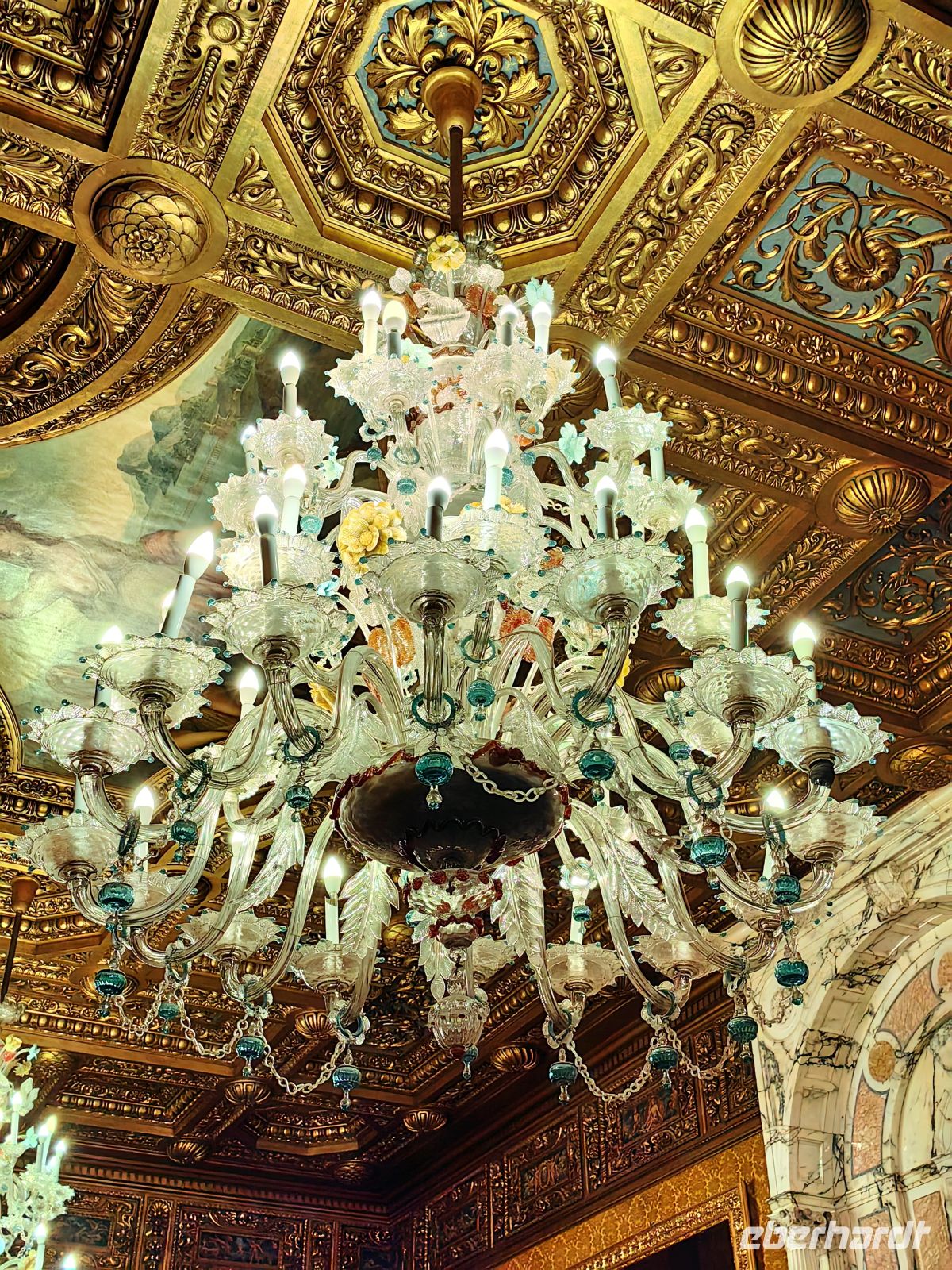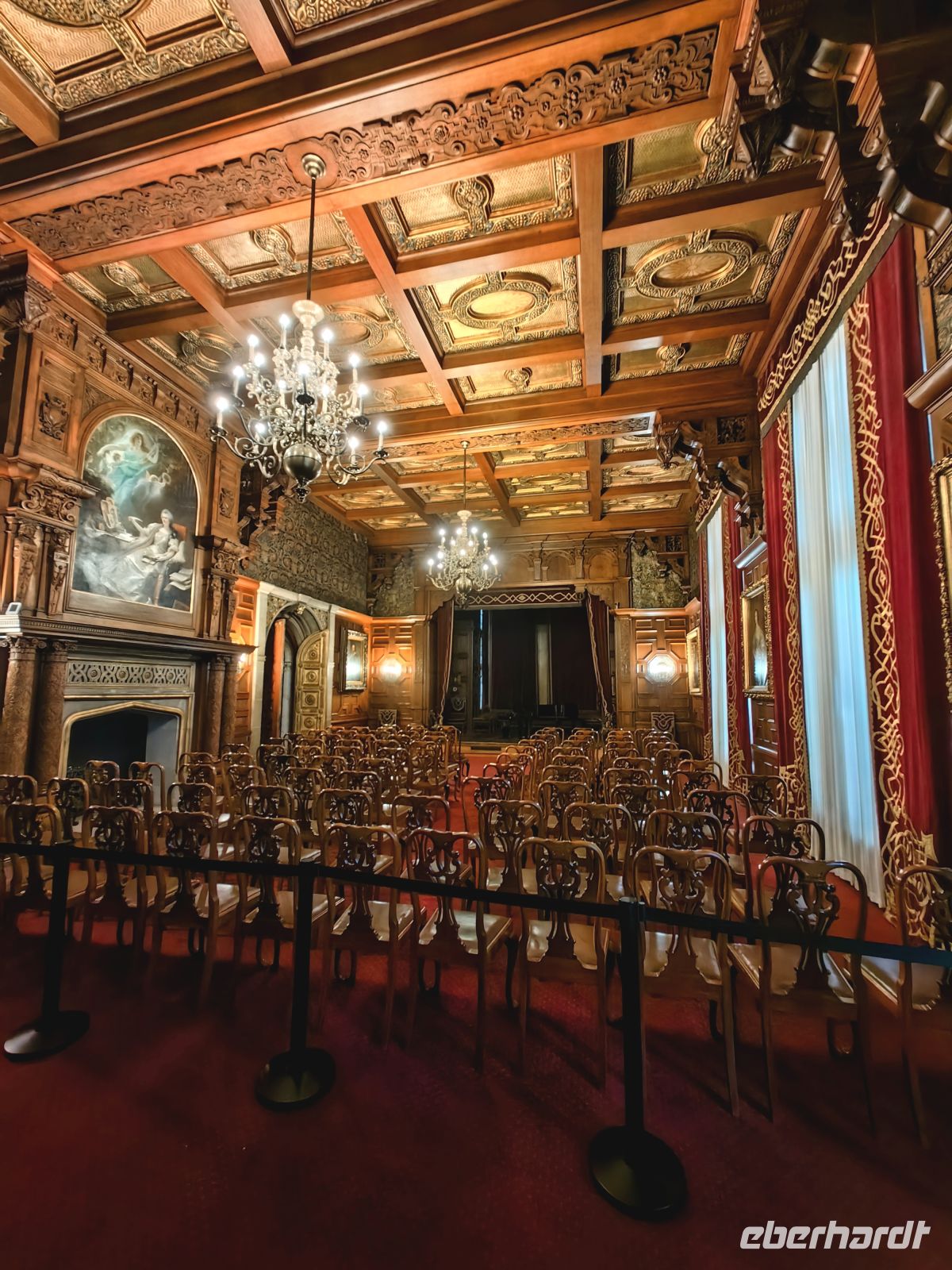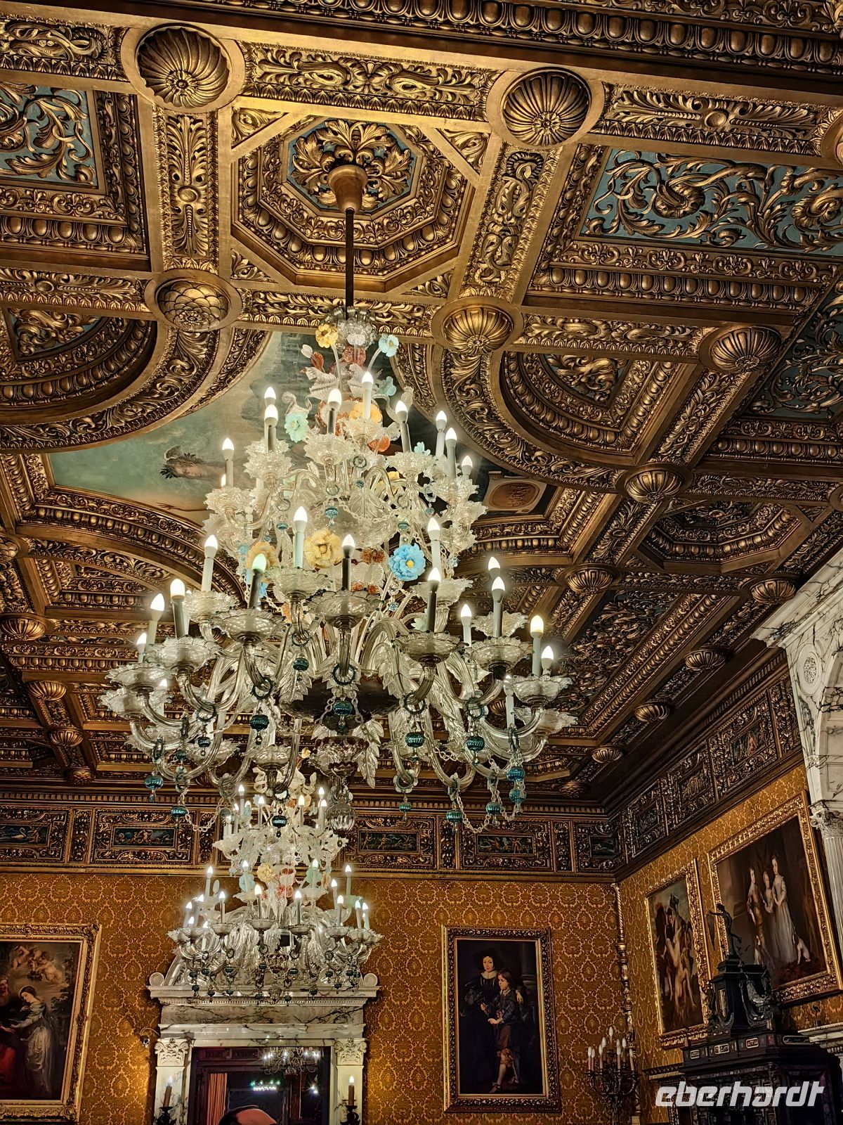 Wir besichtigen die Räume der ersten Etage im Schloß und sind begeistert von der prunkvollen Ausstattung, den vielen Schnitzereien, den üppig verzierten Decken und den Bankettsälen mit ihrer opulenten Ausstattung.