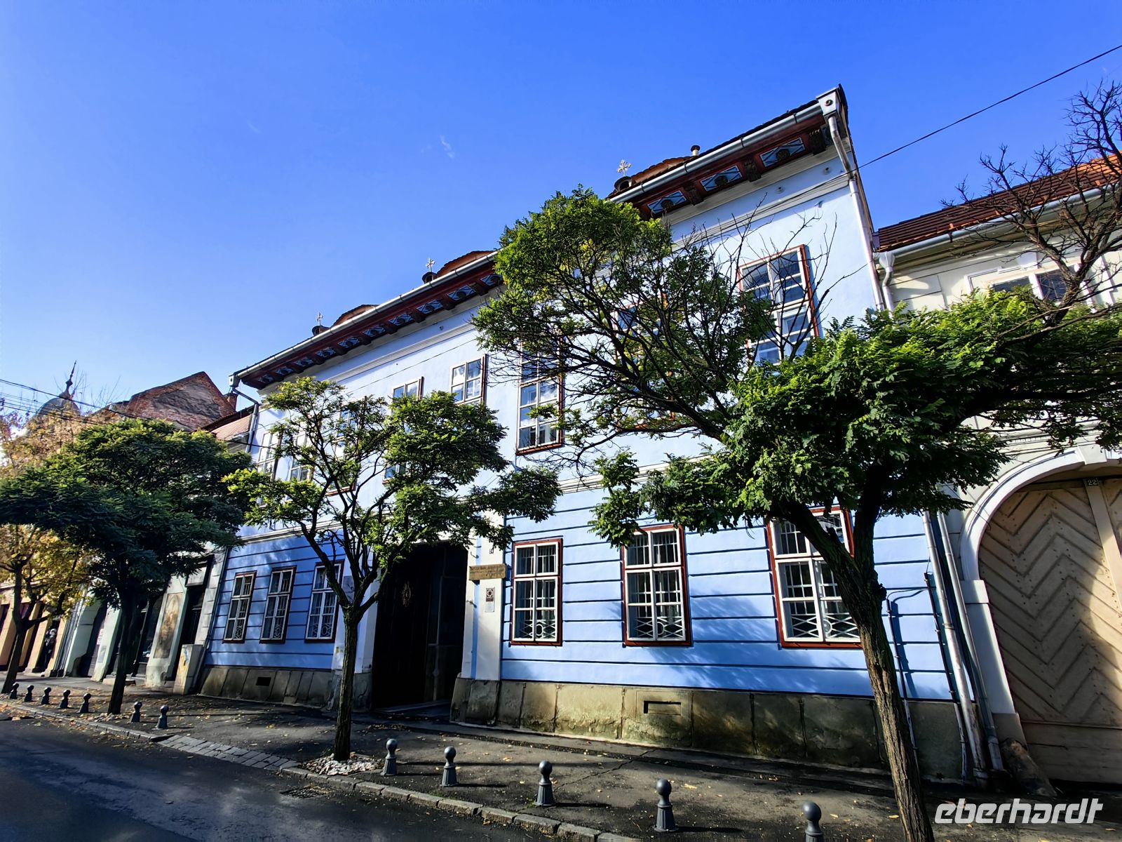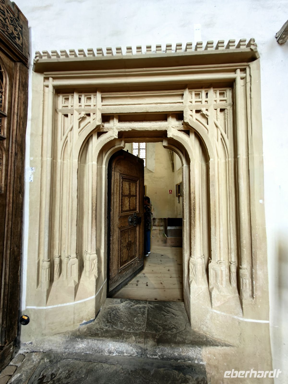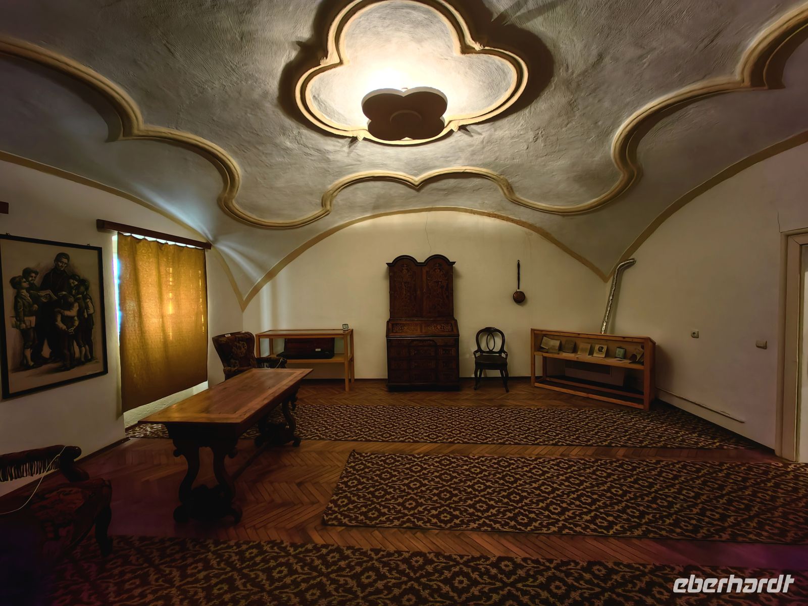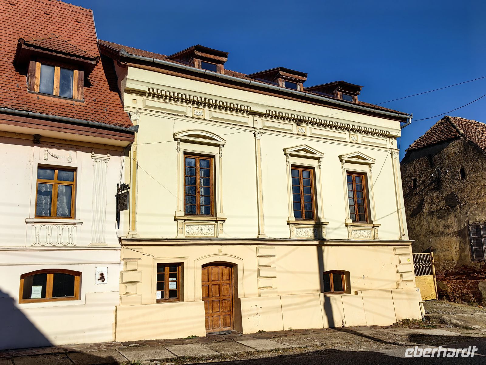 Nun wird es anstrengend. Wir erklimmen die 176 Stufen der sogenannten "gedeckten Schülertreppe", die zum Gipfel des Schulberg-Hügels führt, wo sich das Josef Haltrich Lyzeum befindet, in dem seit Anfang des 17. Jahrhunderts Deutsch unterrichtet wird. Die Schüler und Lehrer dieses Gymnasiums müssen alle sportlich sein, sie legen diesen Weg mehrmals täglich zurück!