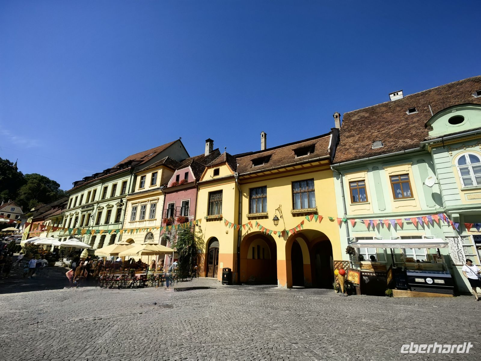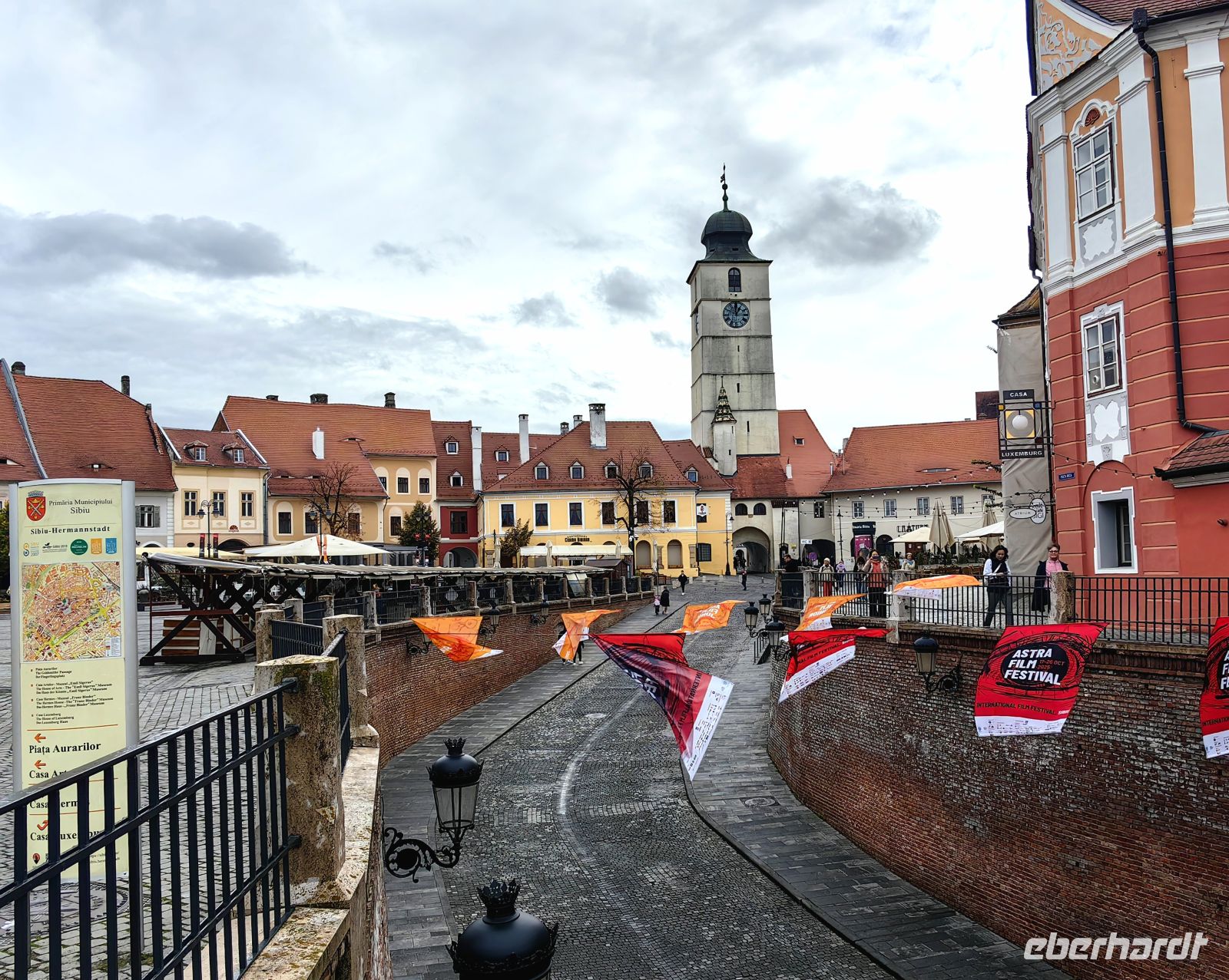 Heute sehen wir eine Stadt mit einer Vielfalt an kulturellen Angeboten, 2007 war sie Kulturhauptstadt Europas und auf dem Marktplatz herrscht reges Treiben. Wir schauen uns die Lügenbrücke an, besuchen die evangelische Stadtpfarrkirche und die dem Vorbild der Hagia Sophia in Istanbul nachempfundene orthodoxe Kirche. Der schöne Marktplatz ist umrundet von Cafés und Restaurants und wenn wir mehr Zeit hätten, würden wir noch einen Kaffee trinken, allerdings haben wir noch einige Verabredungen in Medias.
