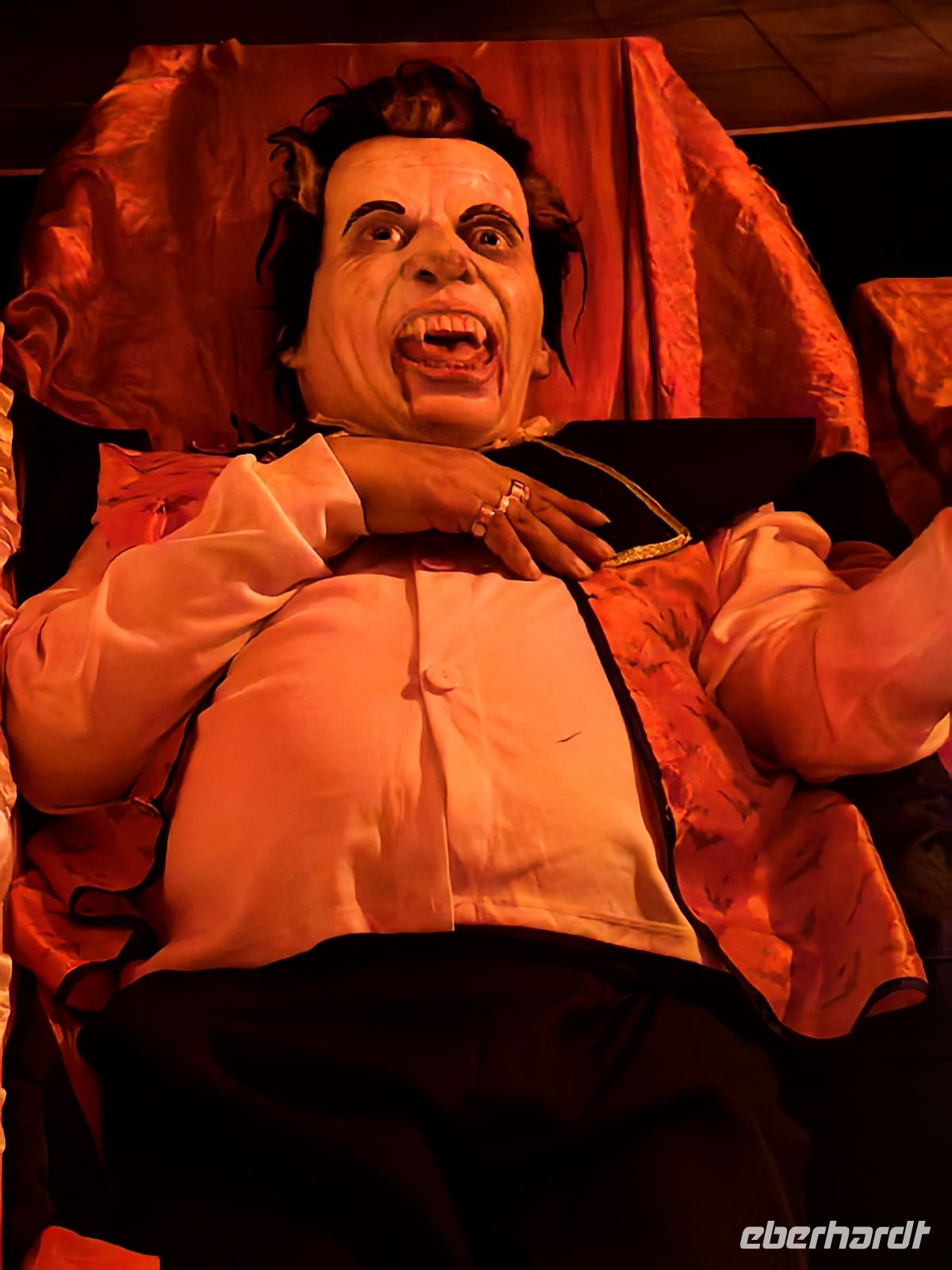 Gleich dahinter liegt das Geburtshaus des Fürsten der Walachei, Vlad III. Wir kennen diese Person nur aus Bram Stokers Roman "Dracula", bildete er doch das historische Vorbild für die Hauptfigur. Es ist ein kleines verwinkeltes Haus mit engen Aufgängen und einigen Waffen und Rüstungen aus dem Mittelalter. Wir passieren enge Flure, wo Spinnen und Gerippe auf uns herunter gelassen werden und die ganz Hartgesottenen können einem - sehr lebendigen - Dracula im Sarg die Hand halten und ein Foto schießen. Hollywood läßt grüßen.