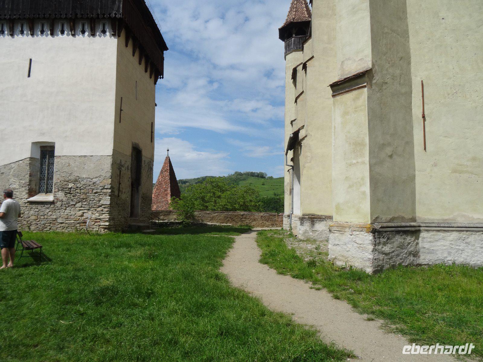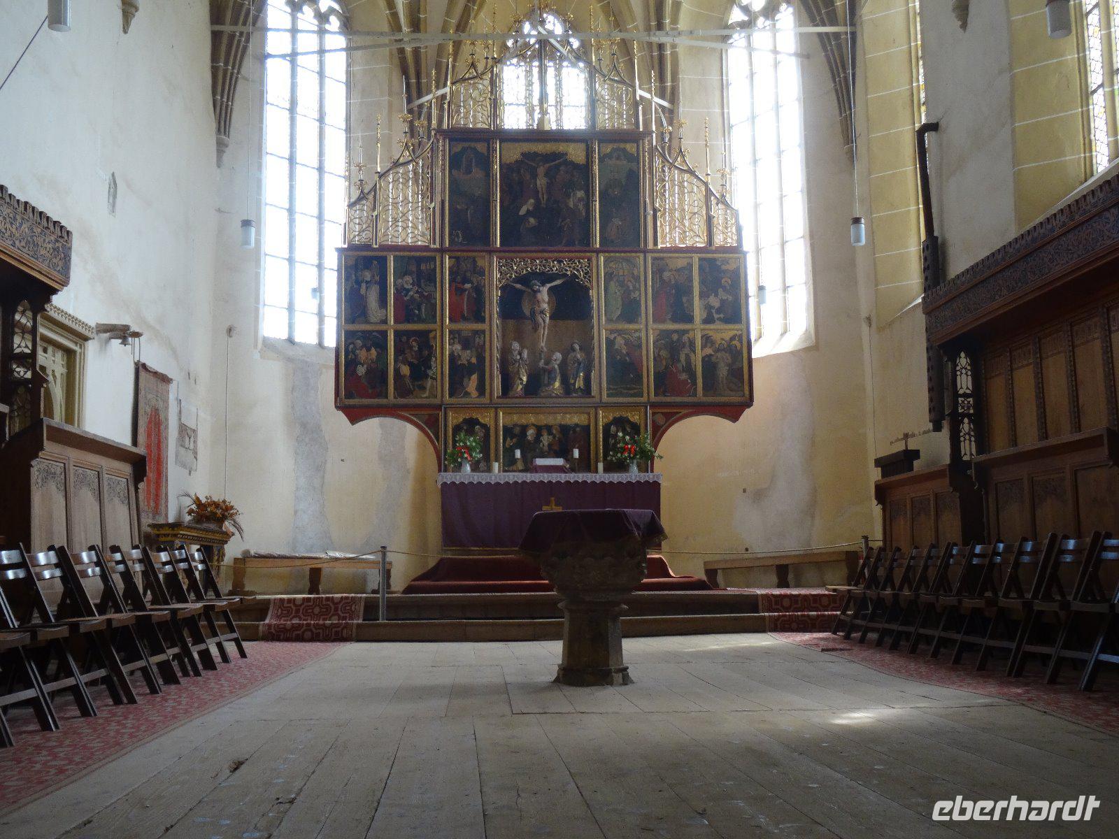 Nun setzen wir unsere Fahrt fort und gelangen nach Biertan. Die Kirchenburg befindet sich im Ort auf einem kleinen Hügel. Sie stammt aus dem 16. Jahrhundert und ist mit einem dreifachen Ring gut gesichert. Die Kirche ist sehr gut erhalten, ein Flügelaltar mit einer Kreuzigung weist mit seinem Traubenschmuck auf ein wichtiges Produkt der Region hin.