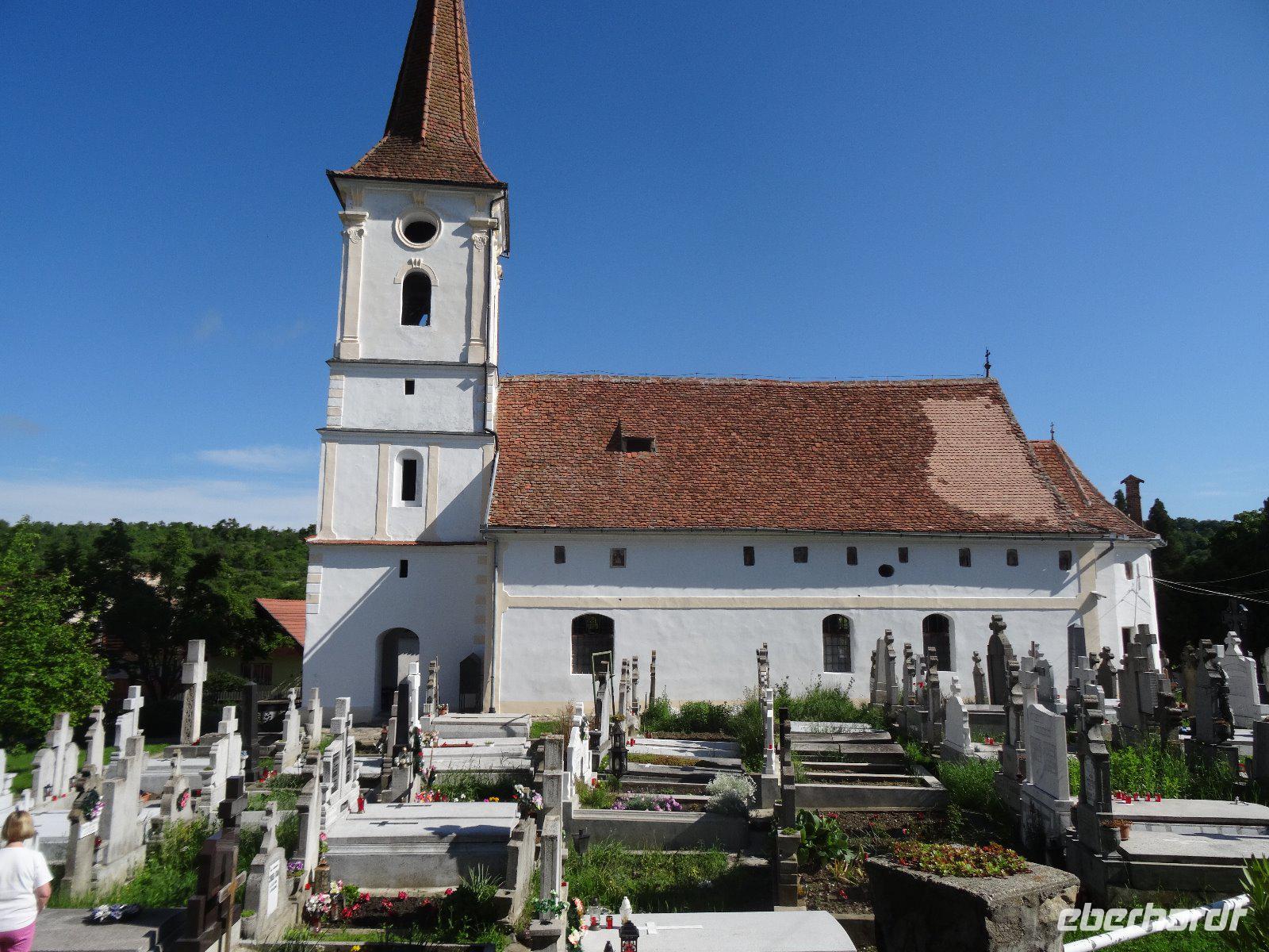 1345 wurde die Kirche im gotischen Stil auf den Fundamenten des Vorgängerbaus errichtet. Die Kirche besitzt eine Krypta aus dem 13. Jahrhundert und es fallen mehrere schön geschnitzte Altäre auf, sie wurden zu ihrem Schutz von anderen Kirchen hierher gebracht. Heute gibt es nur noch eine kleine Gemeinde der Siebenbürger Sachsen, sehr viele sind ausgewandert.