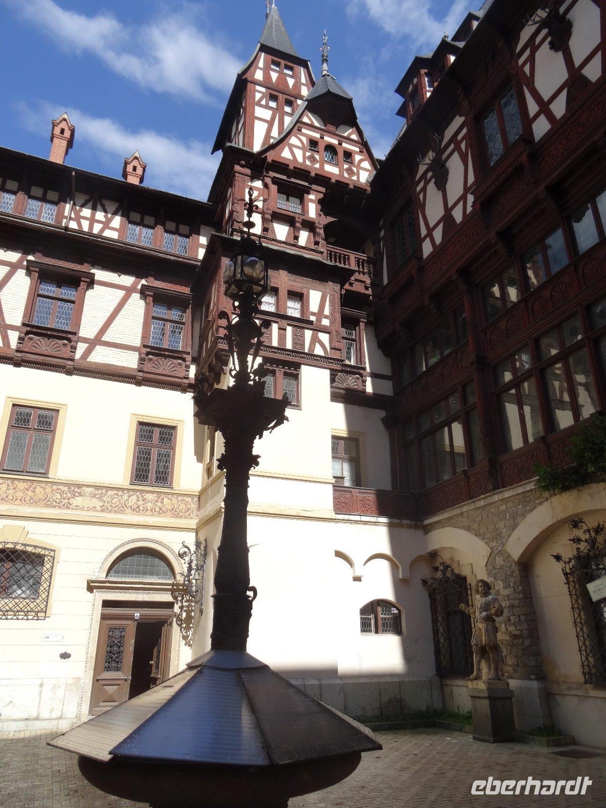 Hocherfreut, dass wir eine zweite Nacht im Hotel bleiben und deshalb heute mit leichtem Gepäck reisen können, starten wir 8:00 Uhr zum Besuch des Schlosses Peles. Die Strategie geht auf und wir sind unter den ersten Besuchern bevor der große Ansturm einsetzt. Die Fahrt führt durch das wunderschöne Prahova-Tal und wir erreichen das am Fuße der Bucegi-Berge gelegene Peles.Man läuft durch einen schönen Park zum Schloss. Die Königin Elisabeth von Rumänien weilte hier sehr gern. Enworfen und gebaut hat das Schloss der Wiener Architekt Wilhelm von Doderer 1872-1883. Es ist ein romantischer Stein-und Fachwerkbau mit 160 Räumen , ausgestattet in verschiedenen Stilrichtungen. Das Schloss hatte auch schon Zentralheizung, ein Staubsaugersystem und ein schickes kleines Theater. Nach der Besichtigung erholen wir uns im hübschen englischen Schlosspark und danach geht es auf Vampirtour.