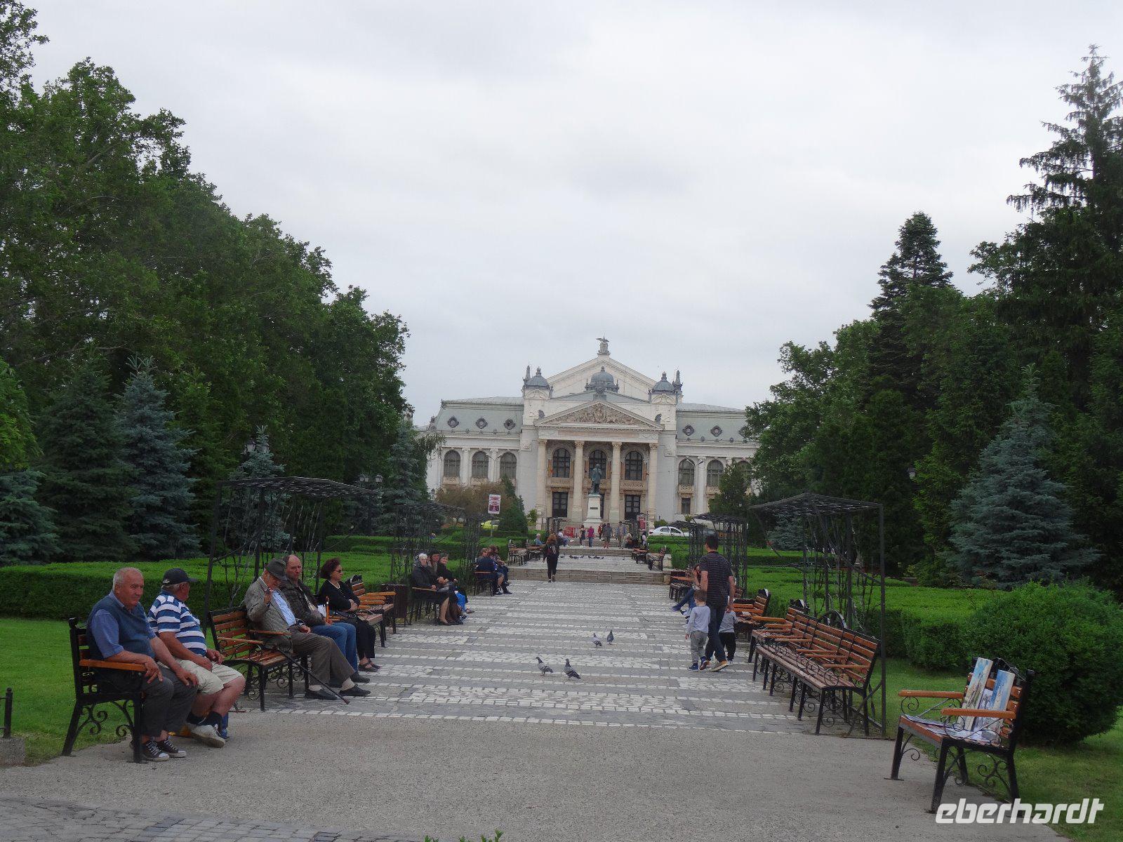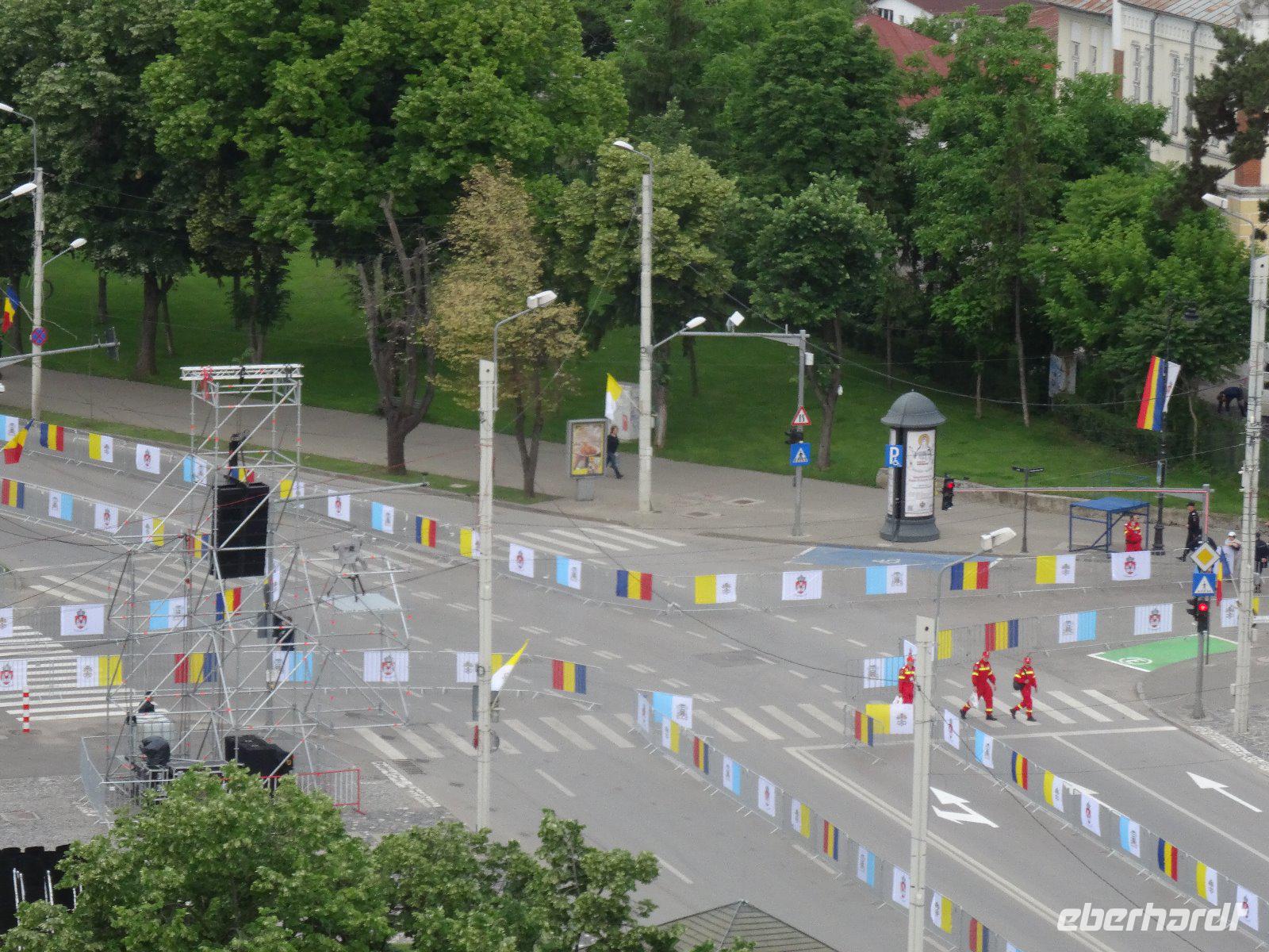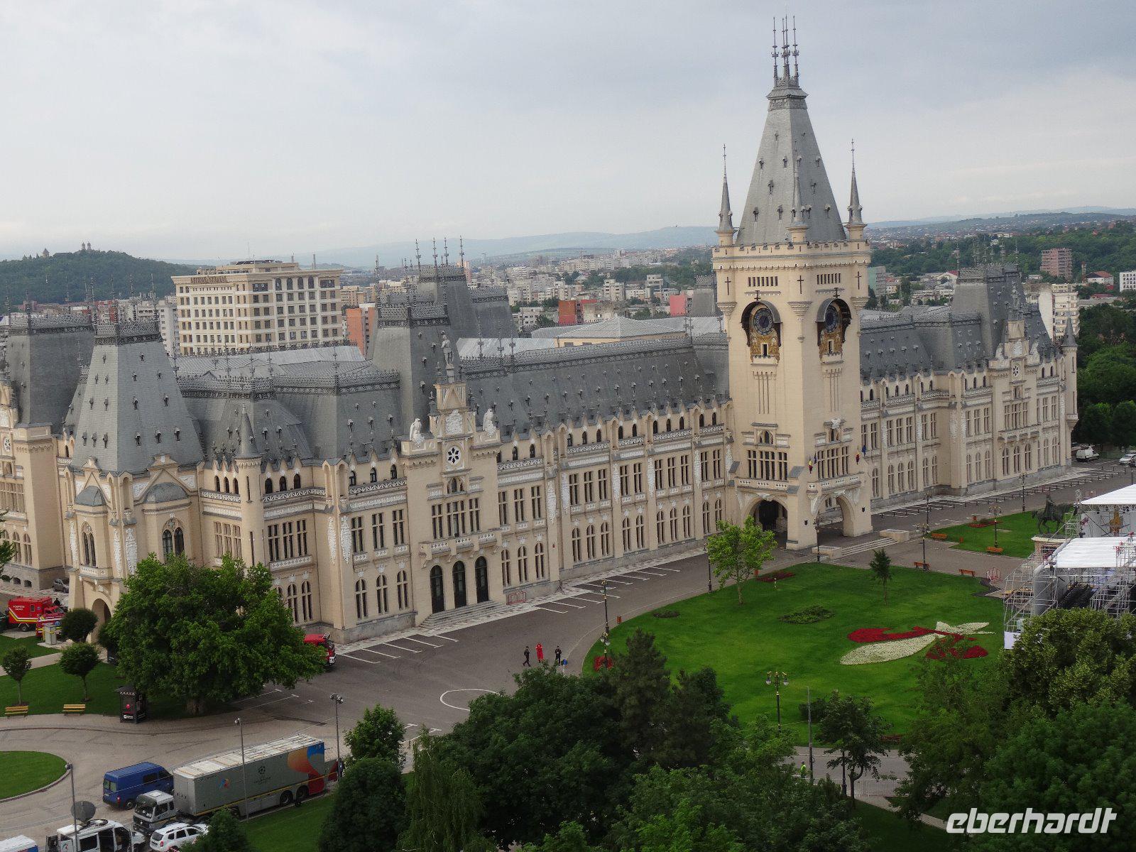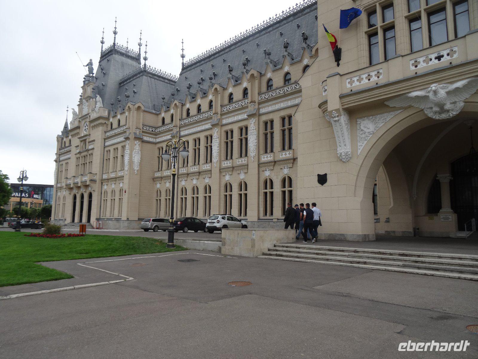 Eine kleine Kirche unweit unseres Hotels steht noch auf dem Plan: Sankt Nikolaus. Hier ist gerade Taufe und so sehen wir auch sie nur von außen. Sie war die Krönungskirche der Moldauer Fürsten und stammt aus dem 16. Jahrhundert. Bereits vom Hotel aus konnten wir das imposante Gebäude des Kulturpalastes sehen. Er wurde 1907 erbaut und beherbegt verschiedene Museen der Stadt. Vor dem Palast schaut uns Stefan der Große huldvoll von seinem Pferd herunter an, heute etwas verbaut durch die Tribünen für den Papstbesuch.