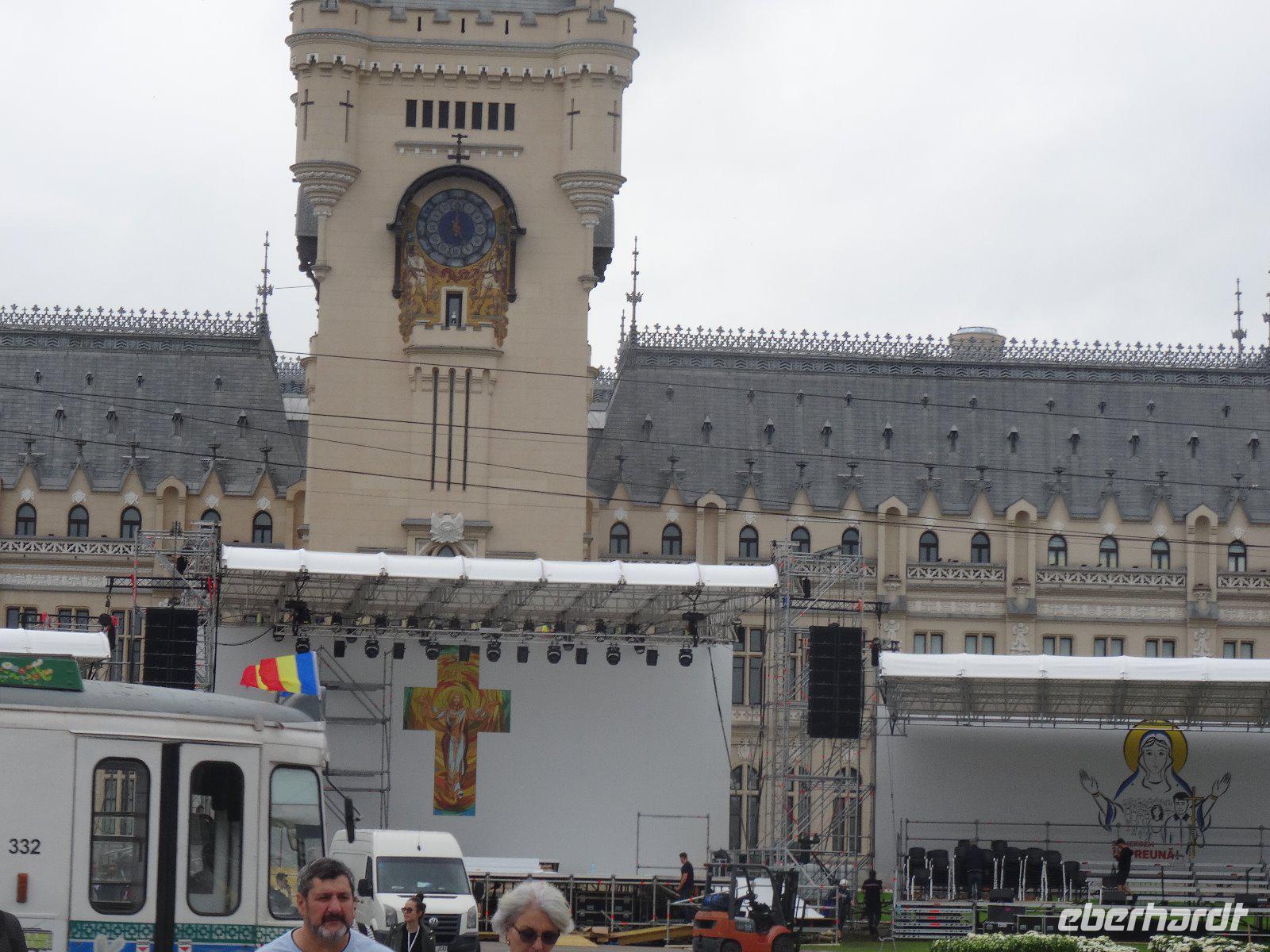 Dieser Tag wird ein Fahrtag, ca. 300 km sind zu bewältigen. Aber vorher gratulieren wir noch unserem Geburtstagskind mit leckeren Törtchen und Geburtstagskerzen und dann geht es los. Mit einigen Zwischenstopps errreichen wir das Hotel Moldova im Zentrum der alten Universitätsstadt Iasi. Hier herrscht rege Betriebsamkeit und viel Polizei: morgen wird der Papst erwartet.Tribünen und Absperrungen werden errichtet, morgen werden wir gut daran tun, rechtzeitig aufzubrechen. Jetzt aber schauen wir uns diese Stadt erst einmal an. Bis 1941 lebten in der Stadt viele Juden und es gab mehr als 100 Synagogen.Jetzt ist davon nicht mehr viel zu sehen, nur eine einzige Synagoge hat den Krieg überdauert.