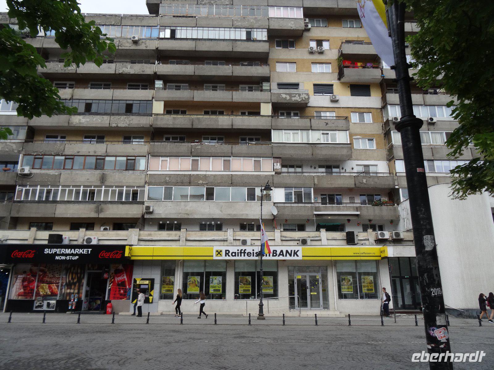 Die Kirche der drei Hierarchen, errichtet 1639, sehen wir nur von außen, da gerade Gottesdienst ist. Die drei Heiligen, nach denen die Kirche genannt ist, sind Basilius der Gro0e, Gregor der Theologe und Johannes Chrysostomos. Auffällig ist der reiche Außenschmuck der Kirche - zahlreiche Steinornamente, Säulchen und Türme sind da zu sehen.Wir kommen zum Dosoftei-Haus aus dem 17. jahrhundert. Es ist das älteste Privatgebäude und beherbergte eine Druckerei. Das Denkmal des Metropoliten Dosoftei vor dem Haus erinnert an die Einführung des Rumänischen in die Kirchenliturgie.