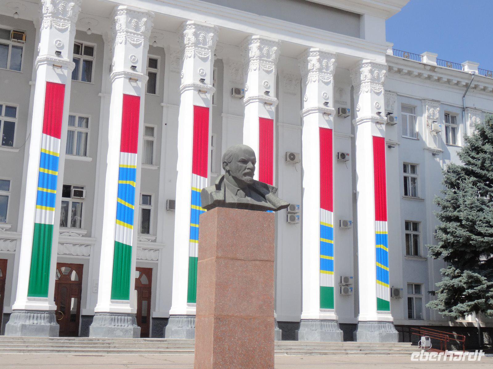 Zur Zeit ist alles ruhig und Tiraspol macht einen aufgeräumten und sauberen Eindruck, das Stadtzentrum ist mit Leninstatue und Sowjetstil der Gebäude wie eine Zeitreise in die Vergangenheit. Nach der Stadtbesichtigung haben wir Hunger und kehren spontan in das Restaurant Kumanjok ein. Es ist nett im Bauernstil eingerichtet und wir essen und trinken sehr gut. So gestärkt treten wir die Rückreise über die Grenze zu unserem Hotel an und bummeln am Abend noch durch ein nahegelegenes Einkaufszentrum, essen und trinken etwas.