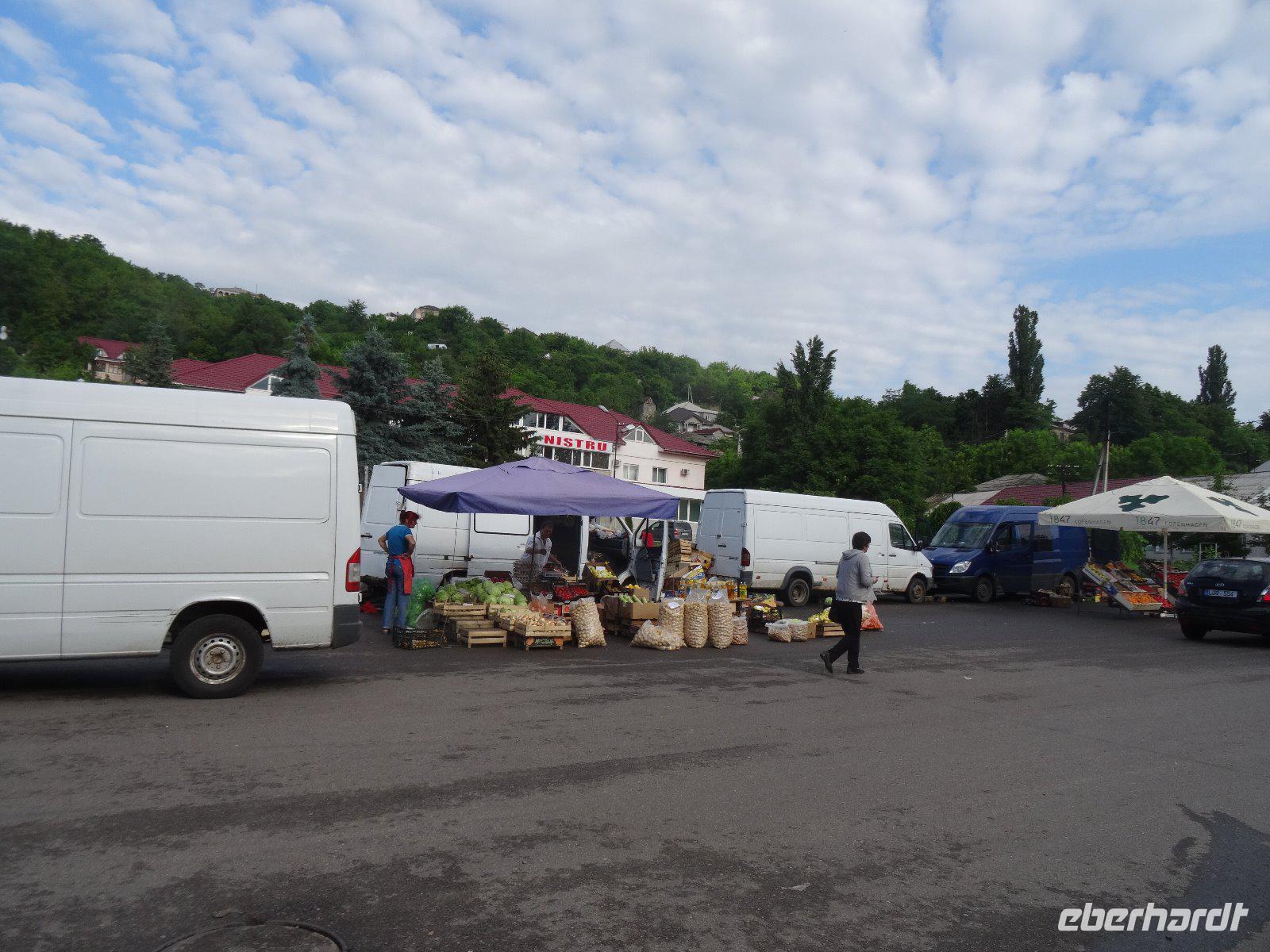 Das Programm beginnen wir in Chisnau mit einem Besuch des nahegelegenen Bauernmarktes. Hier kann man buchstäblich alles kaufen, nicht nur Lebensmittel sondern auch Industriegüter, Kleidung usw. Wir laufen über den Markt und kosten hier und da ein wenig, die Verkäufer sind freundlich, lassen sich auch gern fotografieren. Froh, dass wir niemanden verloren haben im Marktgewimmel, besteigen wir den Bus und fahren zunächst zur Festung Bendery (Tighina), noch auf der westlichen Seite des Dnestr gelegen. Unser Grenzübergang verläuft ohne Probleme, wir bekommen eine Art Einreiseschein mit der interessanten Bezeichnung null für die Nationalität.