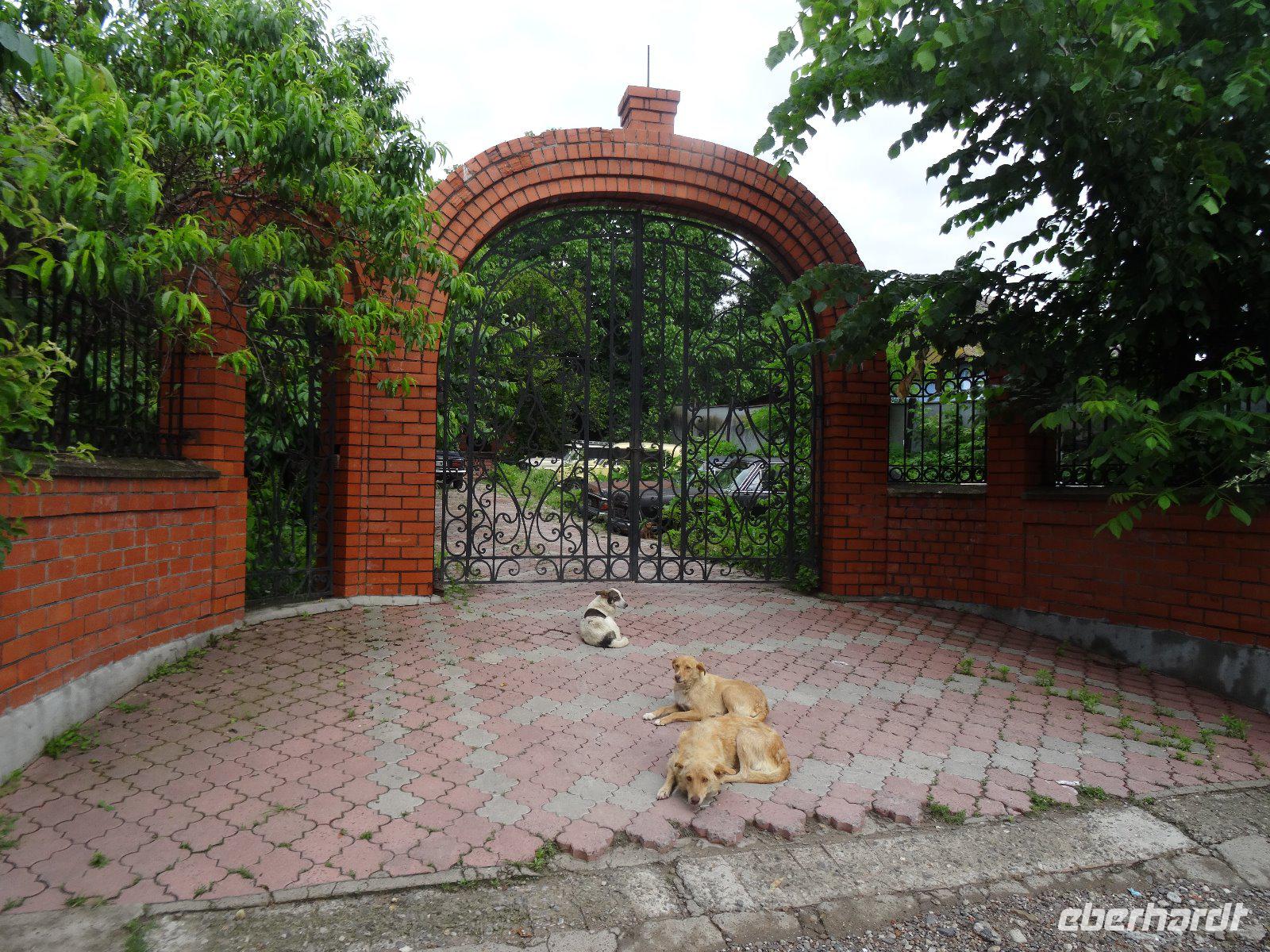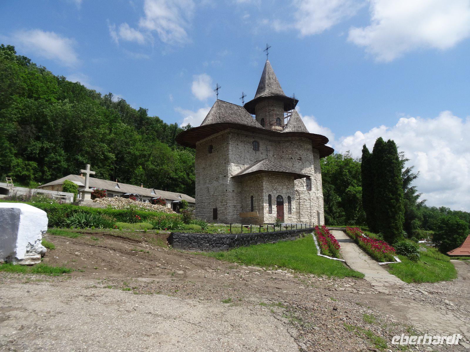 Es regnet wieder etwas, der Weg zum Denkmal für den Struvebogen ist unpassierbar, so lassen wir dies weg und fahren weiter in das Dorf Pokrovka. Dies ist zunächst Ausgangspunkt für eine kleine Waldwanderung zum Kloster Rudi. Die Nonnen betreuen eine wunderschöne Anlage um einen Brunnen mit heilkräftigem Wasser herum. Die Kirche ist leider in Renovierung, so können wir nur die Außenanlagen sehen. Die Nonnen leben streng abgeschieden von der Welt und widmen sich dem Gebet und der Arbeit. Wir aber wandern zurück zum Dorf, in dem eine Gemeinde der Altgläubigen beheimatet ist. Wir erfahren etwas von ihrer Lebensweise und sehen ihre Kirche von außen. Die Gemiende betreibt auch ein Restaurant und wir essen dort hausgemachte Nudeln mit Huhn und essen Blinis und trinken Tee als Nachtisch. Für das letzte moldawische Geld kaufen wir noch Wein und dann geht es Richtung Grenze. Der Grenzübergang dauert etwas länger und der Regen wird heftiger, die Straßen sind zum Teil überspült. Wir verabschieden uns von Walentina und setzen die Fahrt Richtung Gura Humorului fort. Dort kommen wir am späten Abend an und werden von Irena freudig begrüßt.
