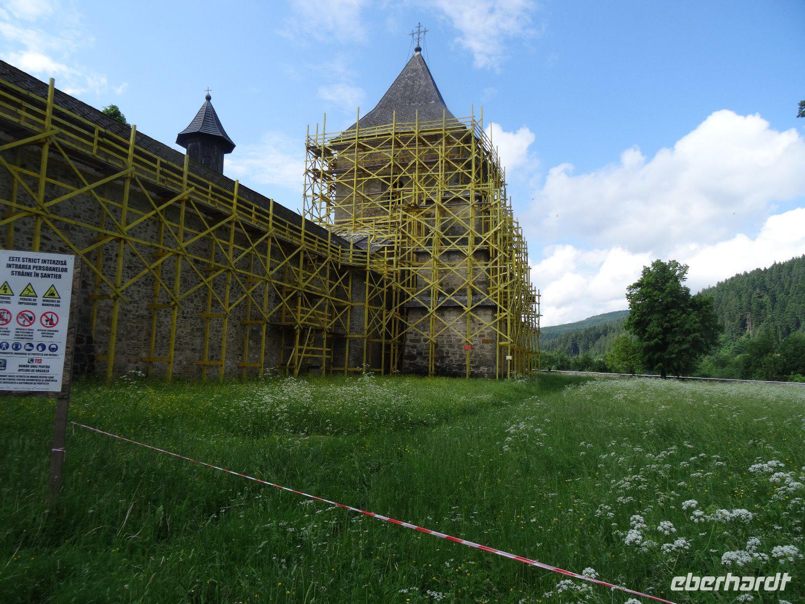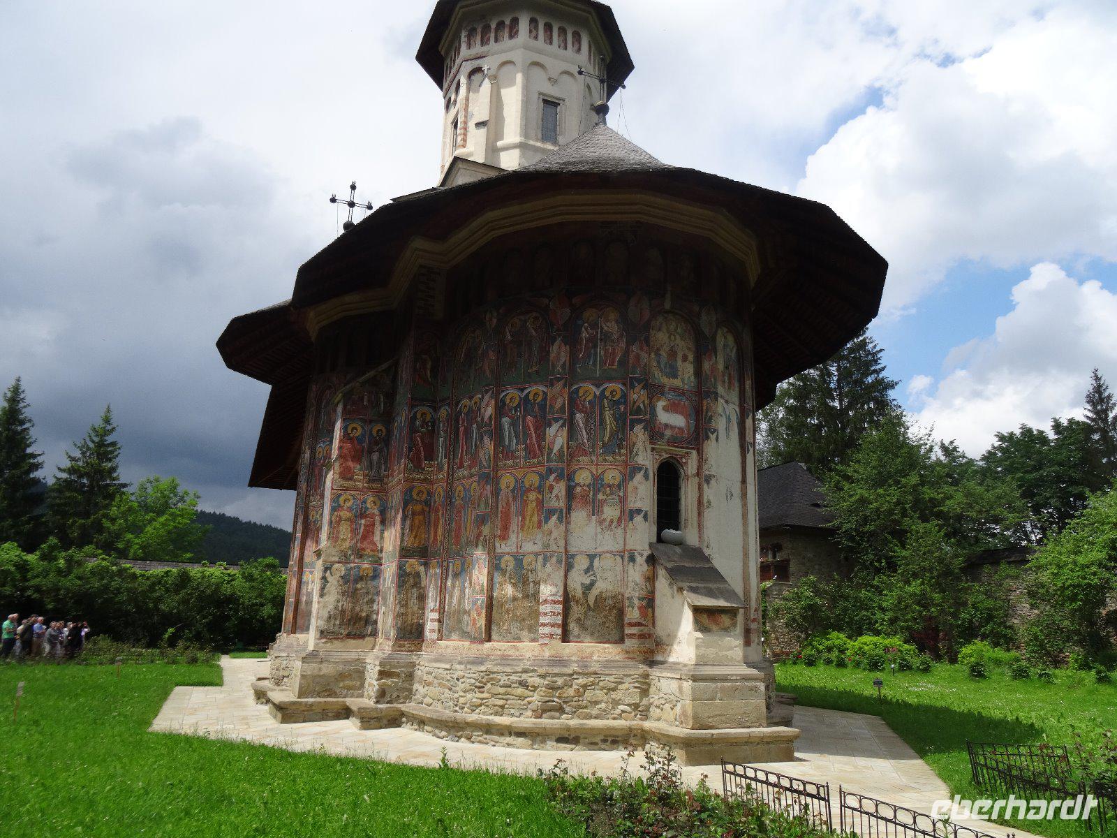 Wir verabschieden uns von der schönen Bergkulisse des Ortes und fahren zuerst nach Sucevita. Leider ist die Anlage zum Teil eingerüstet, aber man gewinnt dennoch einen Eindruck von der Wehrhaftigkeit des Klosters und von der Schönheit der bemalten Kirche. Das Kloster wurde 1582 gegründet.Die Kirche ist der Auferstehung des Herrn gewidmet und innen und außen reich bemalt. Es sind Darstellungen aus dem Leben der Heiligen, aber auch Szenen wie z. B. die "Tugendleiter" mit dem Kampf zwischen Gut und Böse. Der Stammbaum Jesse ist außen zu sehen und eine Bebilderung des "Allerheiligengebets".Beeindruckt verlassen wir dieses Kloster und fahren zum nächsten in Moldovita. Die Kirche stammt aus dem Jahre 1532 und ist Mariä Verkündigung gewidmet. Auch hier finden wir die Darstellung der Wurzel Jesse, der Leiden Christi und der Belagerung von Konstantinopel. Die Stifterfamilie ist mit individualistischen Gesichtszügen dargestellt und, für diese Zeit ungewöhnlich, eindeutig zuordenbar.