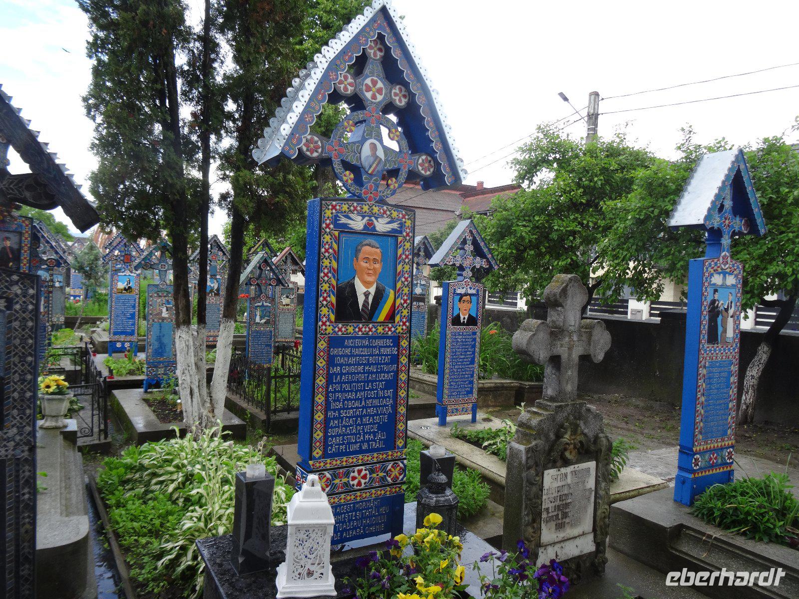 Nach diesem etwas traurigen Kapitel gibt es nun etwas Aufheiterung. Das Ziel ist zwar ein Friedhof, aber er heißt der Fröhliche Friedhof, weil seine geschnitzten Grabkreuze liebevoll, manchmal ironisch oder scherzhaft das Leben der Verstorbenen charakterisieren. Wir pilgern über den Friedhof und erfreuen uns an den hübschen und sehr einfallsreichen Bildern. Nun ist es Zeit für ein gutes Essen und wir fahren zur Pension Matei in Oncesti. Hier werden wir mit gutem Essen und Trinken verwöhnt und satt und zufrieden fahren wir nun zurück zum Ausgangspunkt unserer Reise, nach Cluj-Napoca.